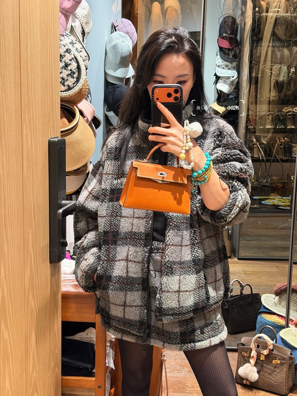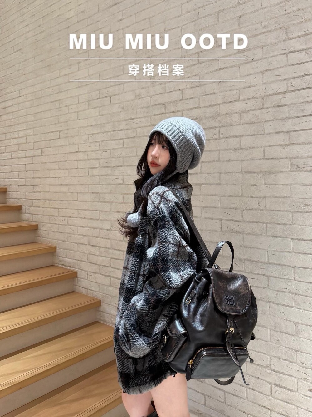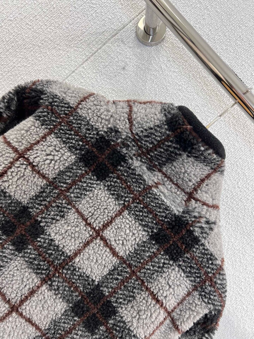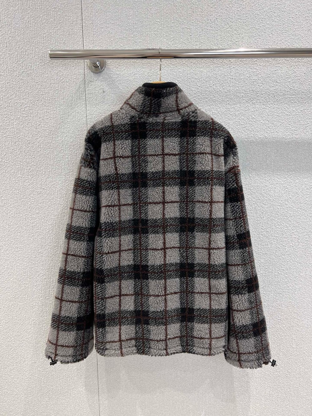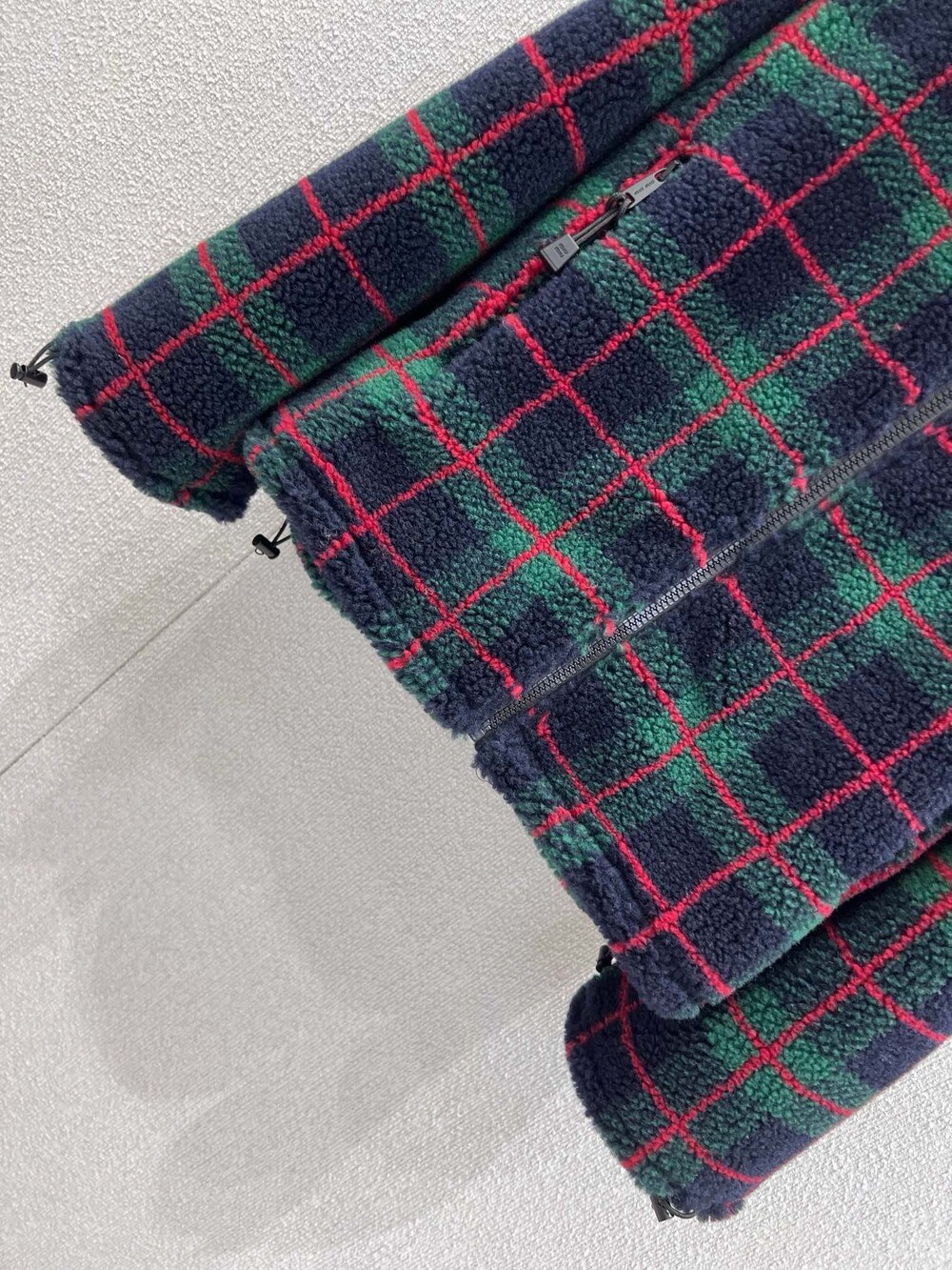 아이코닉한 플리스 재킷을 울 소재로 볼륨감과 부드러움을 더한 테디 버전으로 재해석했습니다. 클래식한 체크 패턴은 남성복에서 영감을 받아 스포티한 페미니티를 미우미우만의 감각으로 표현합니다.