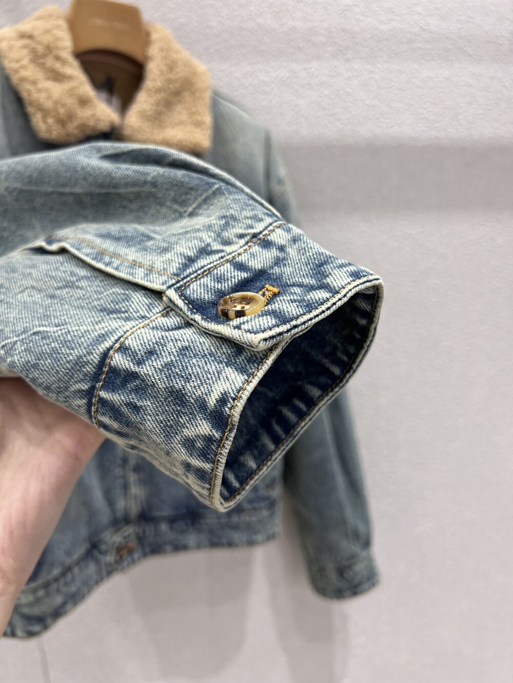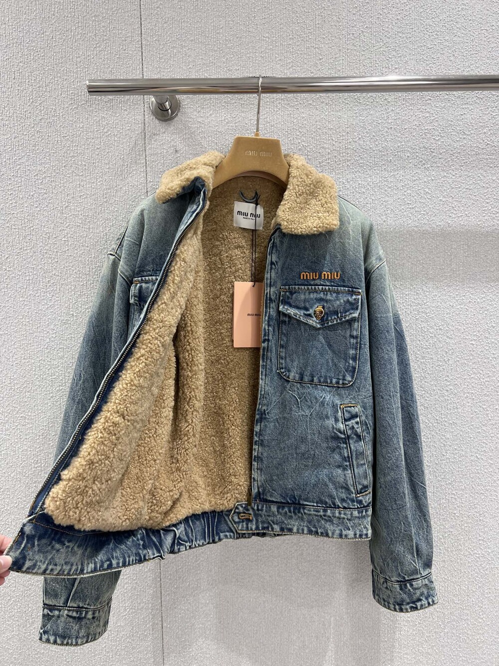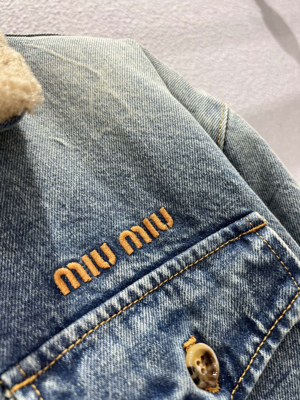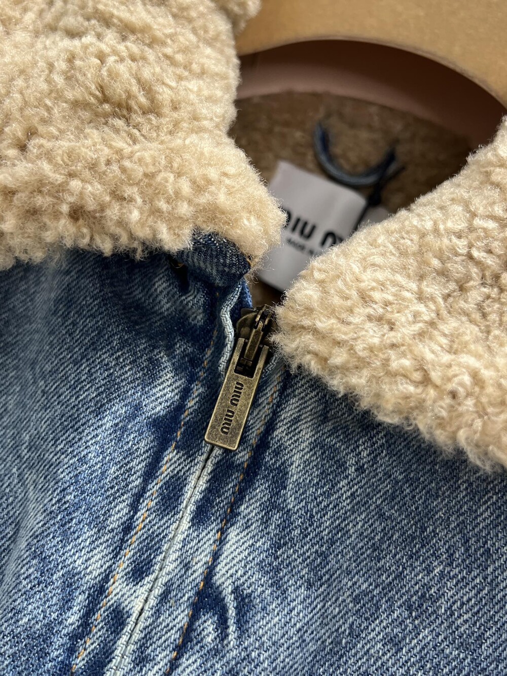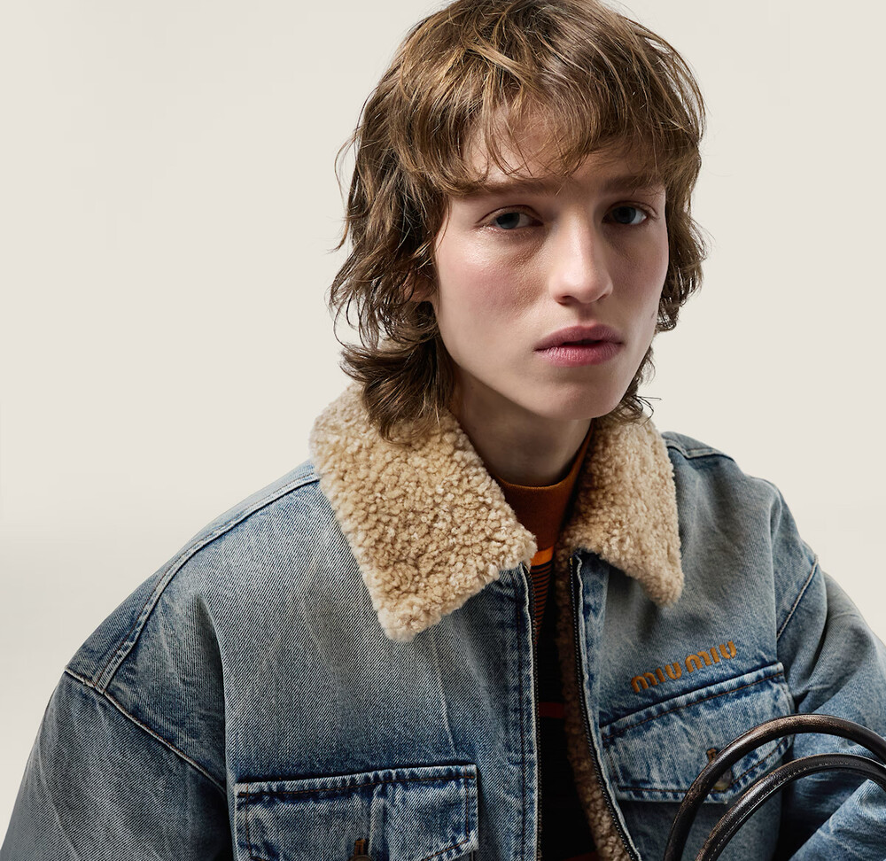 미우미우 데님 및 시어링 트러커 재킷