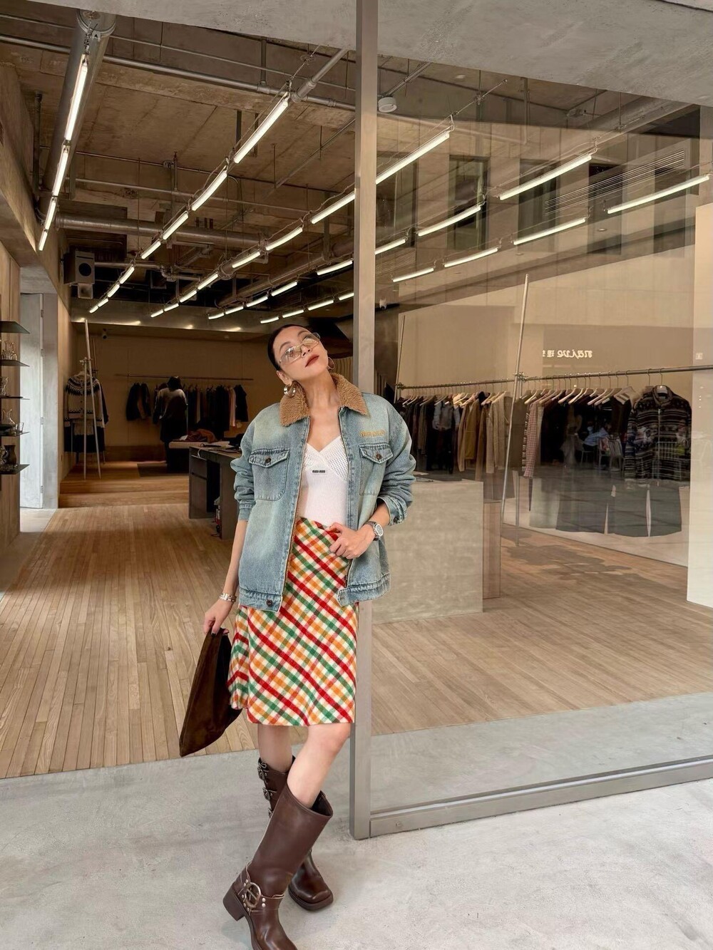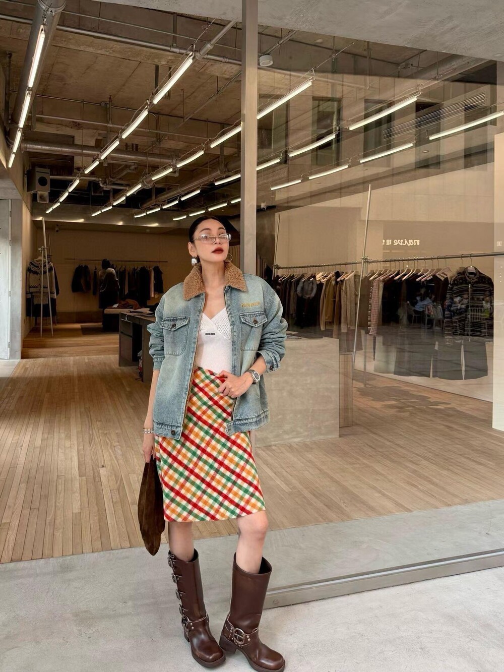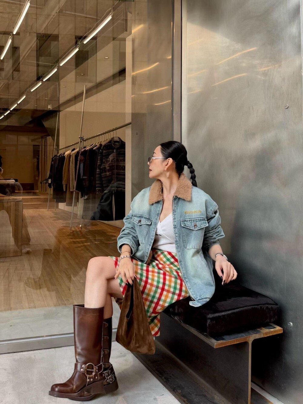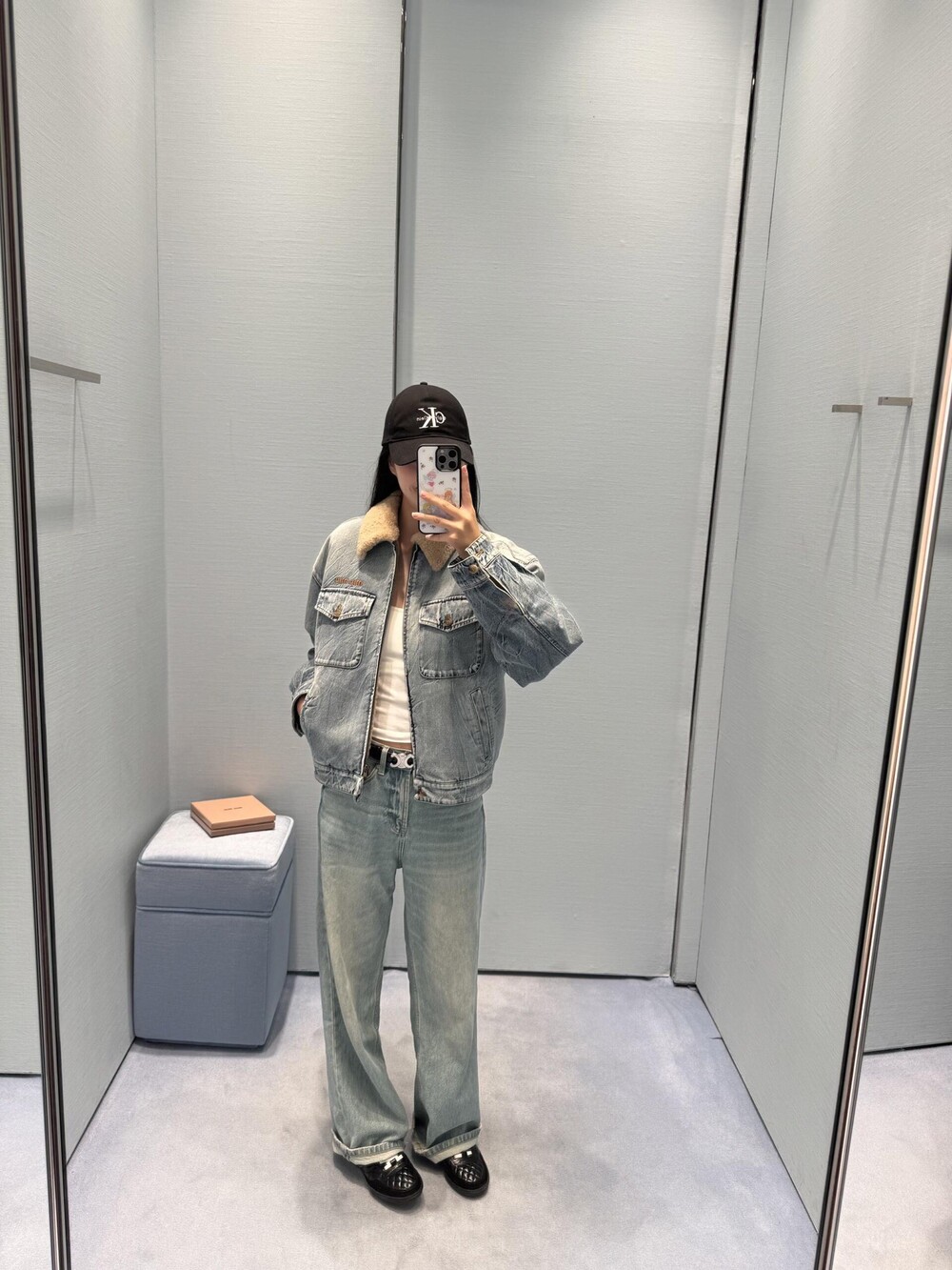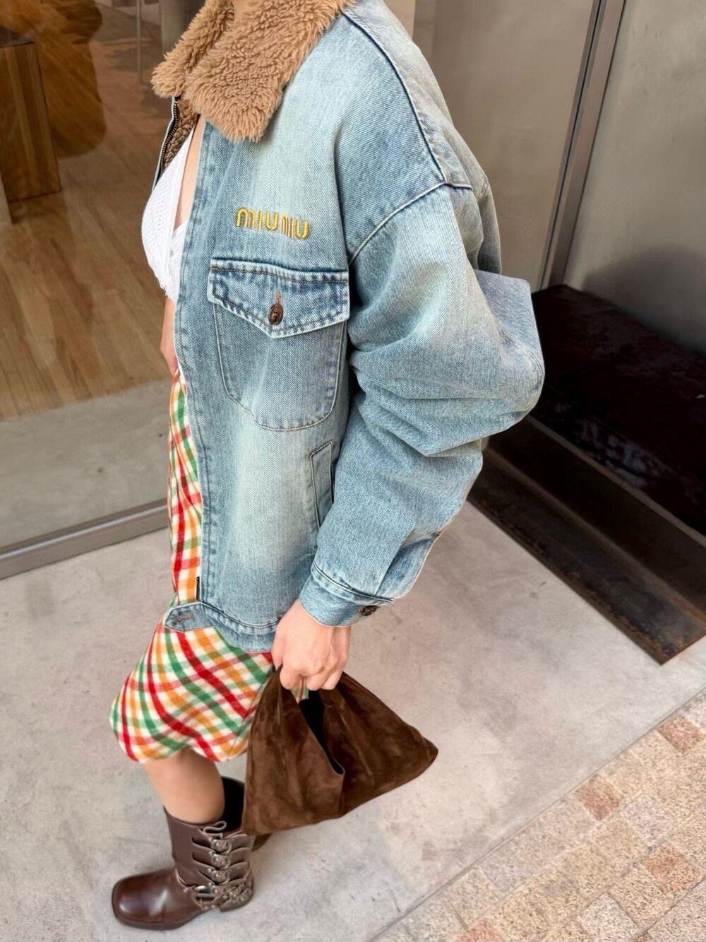 미우미우 데님 및 시어링 트러커 재킷