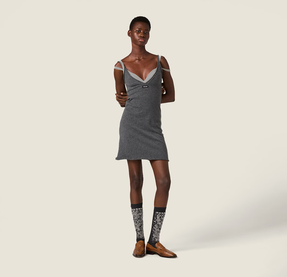 아카이브에서 영감을 받은 디자인이 매끄러운 라인의 캐시미어 드레스에 생명을 불어넣습니다. 약간 펠트 처리된 빈티지 룩에 롤드 엣지를 더해 장인 정신과 현대적인 미학을 강조합니다.