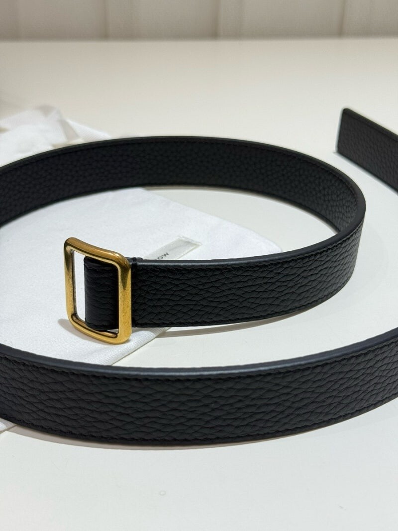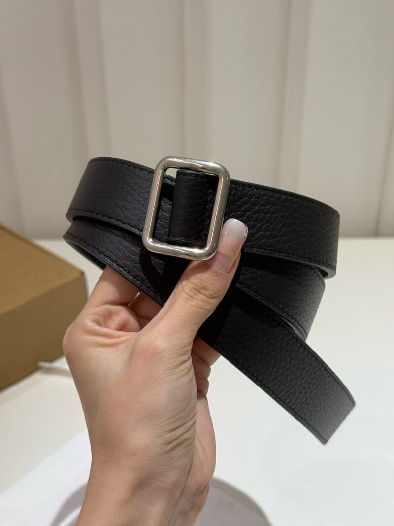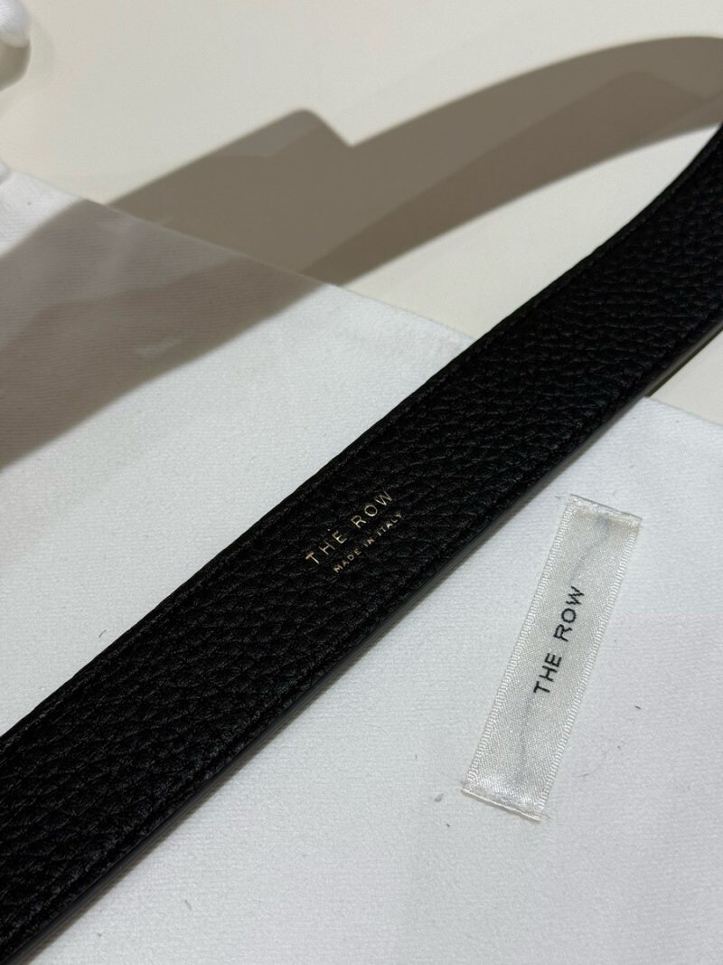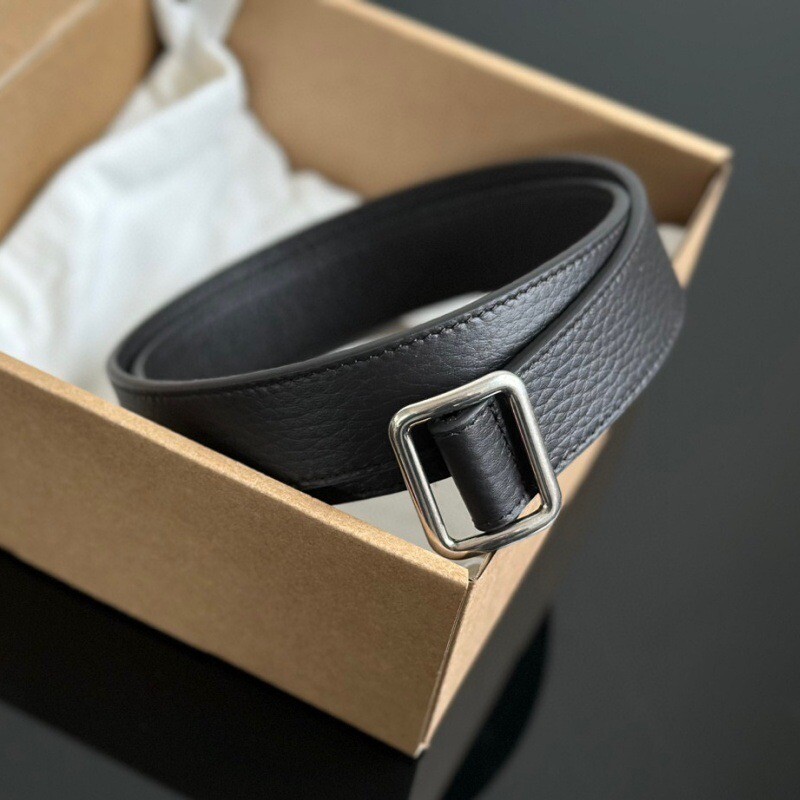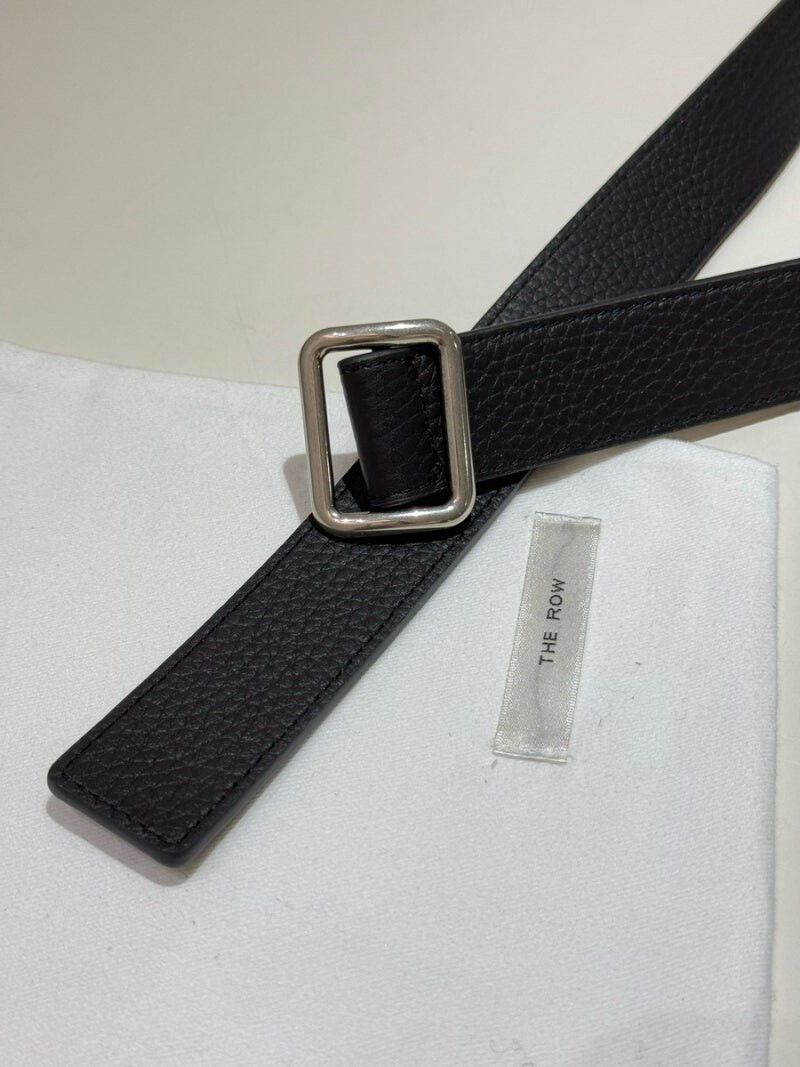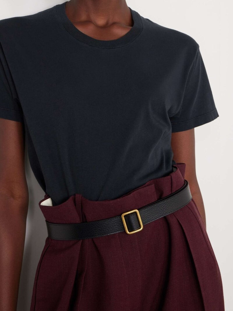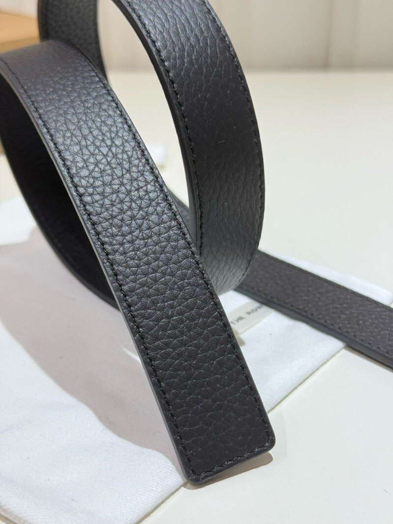 메탈 버클이 달린 베지터블 그레인 카프스킨 가죽 소재의 미니멀 벨트