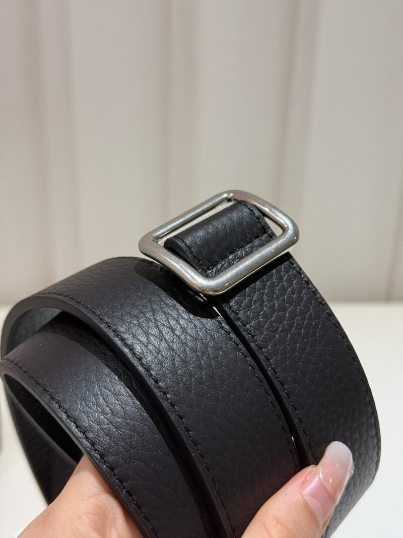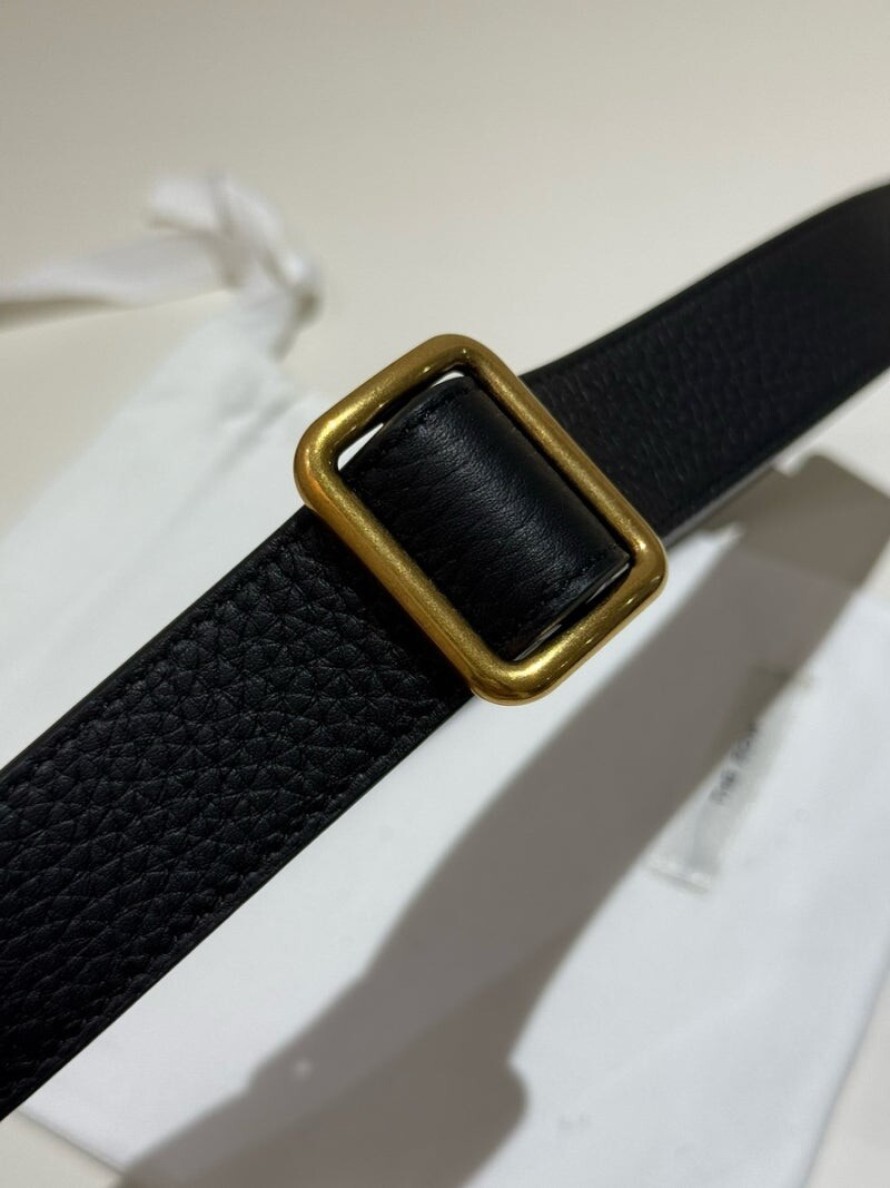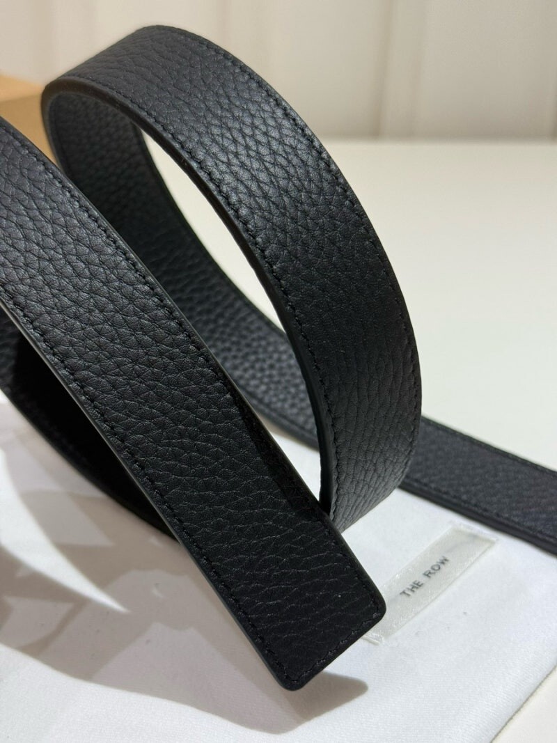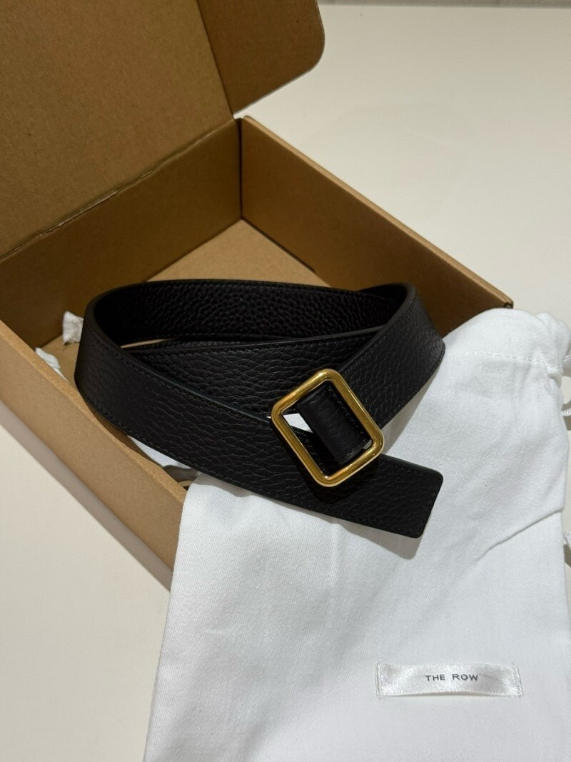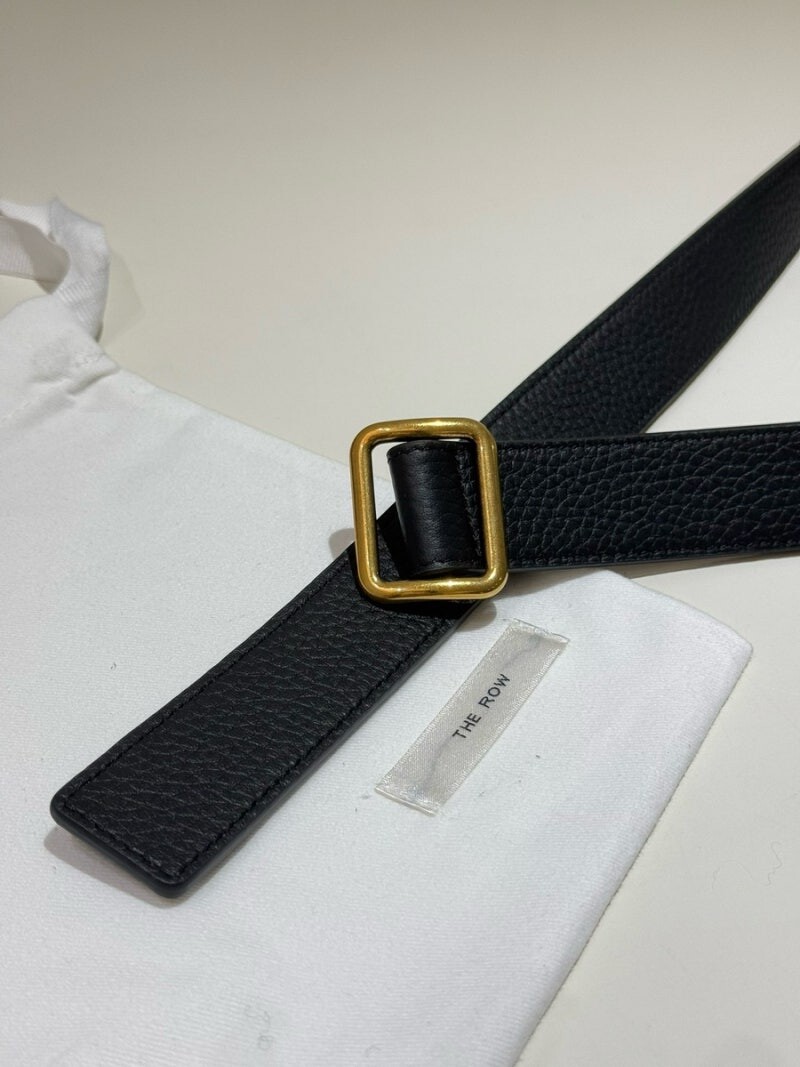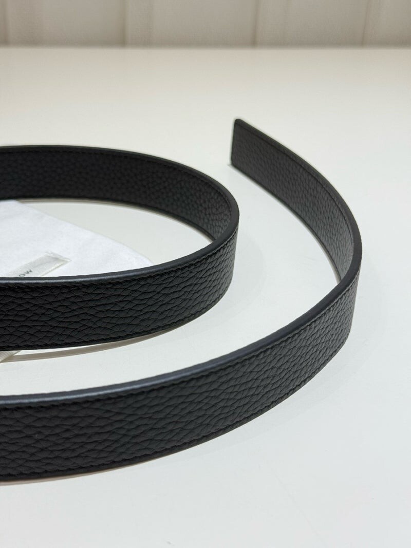 메탈 버클이 달린 베지터블 그레인 카프스킨 가죽 소재의 미니멀 벨트