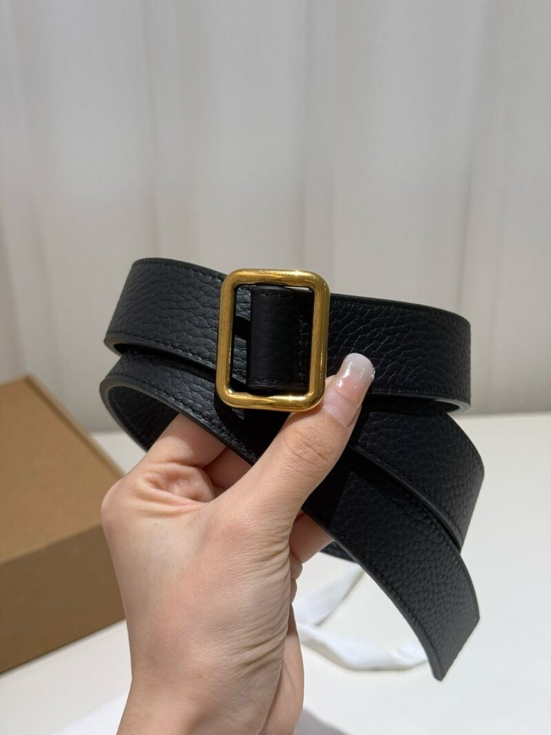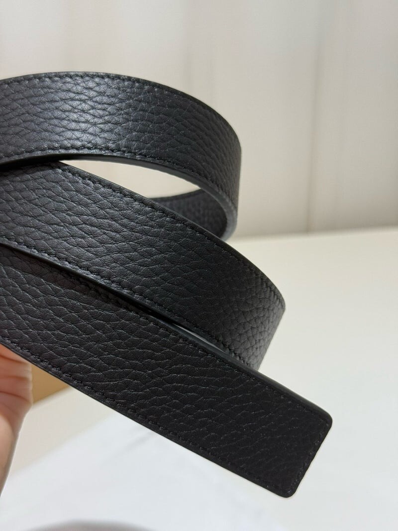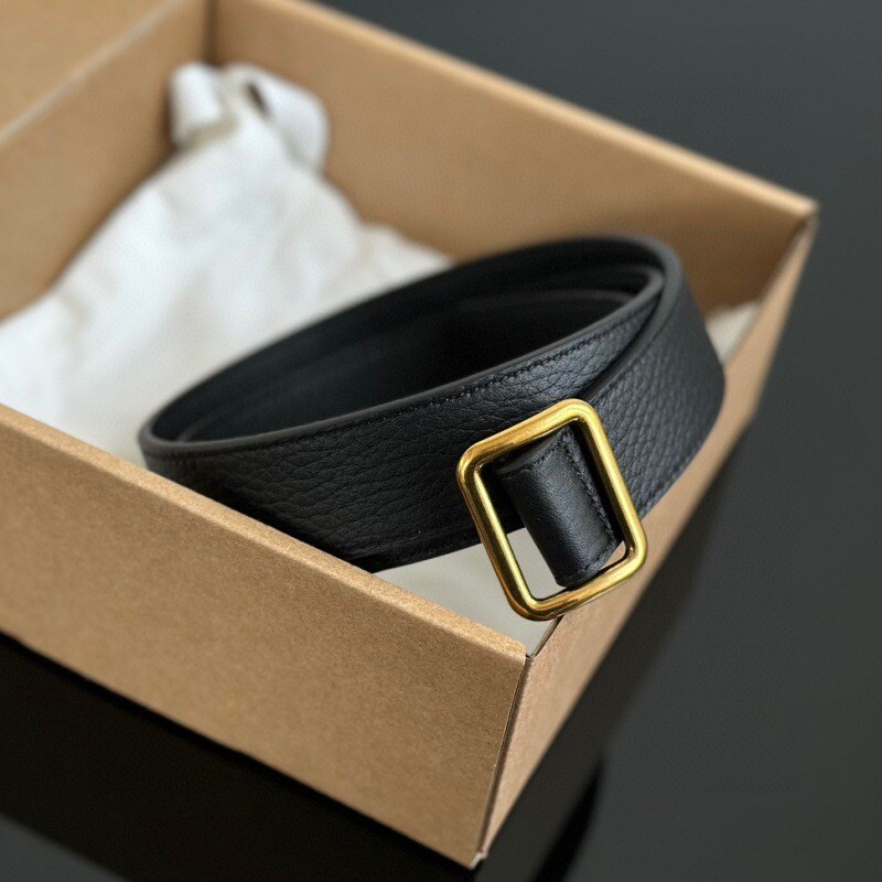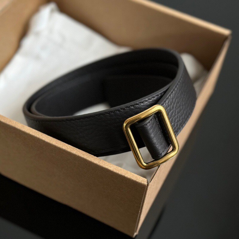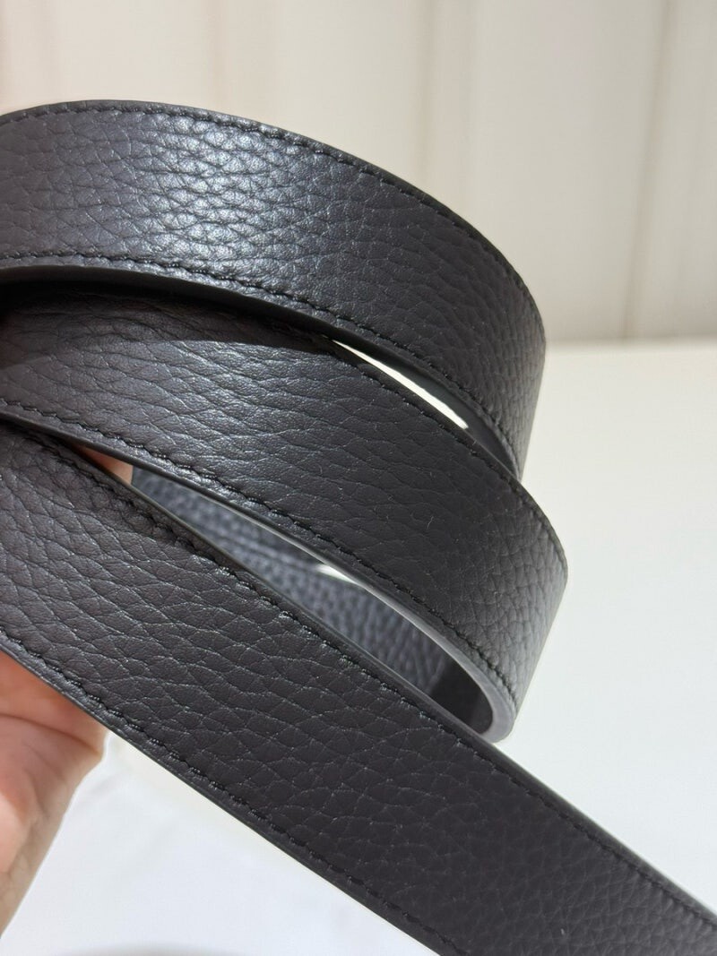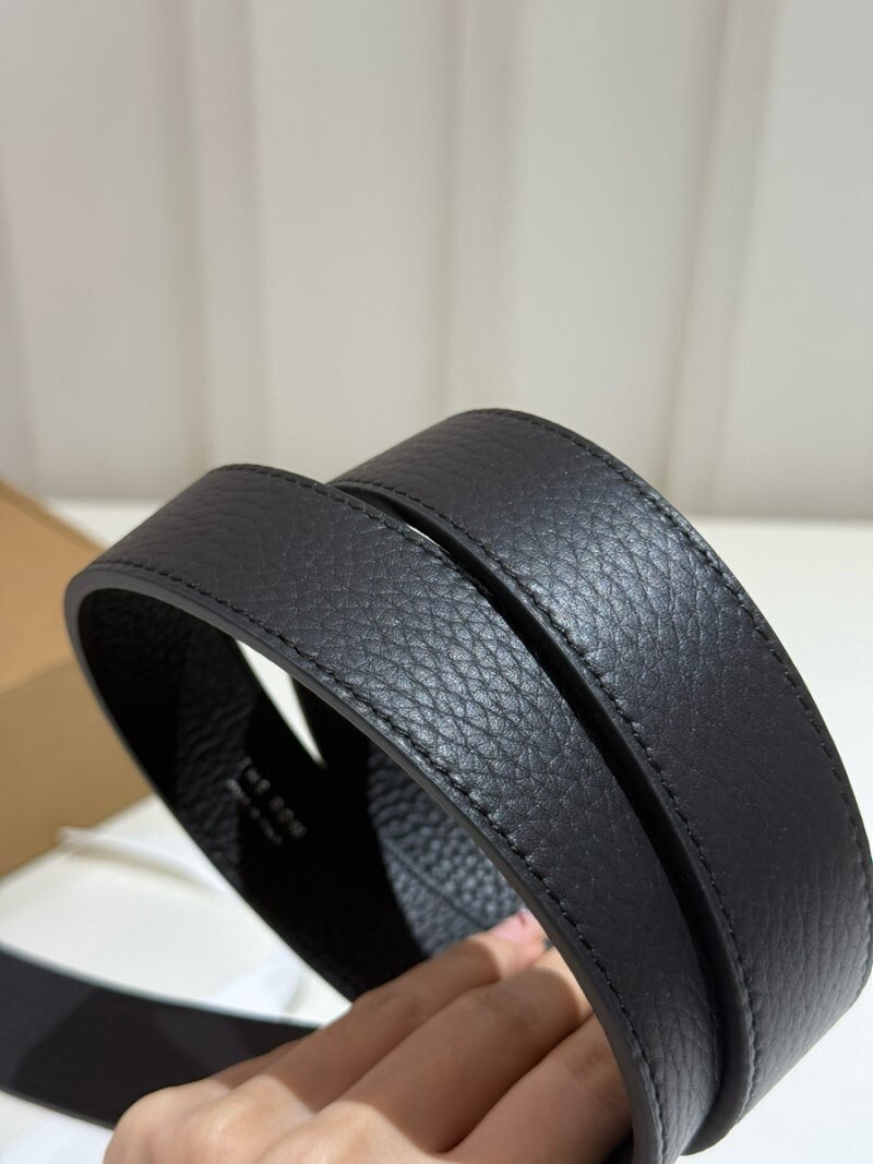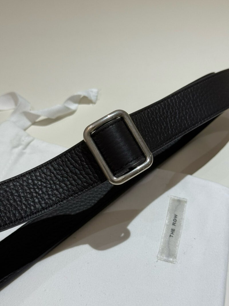 메탈 버클이 달린 베지터블 그레인 카프스킨 가죽 소재의 미니멀 벨트