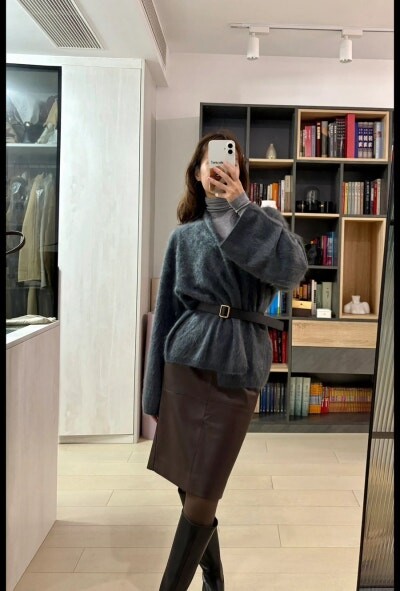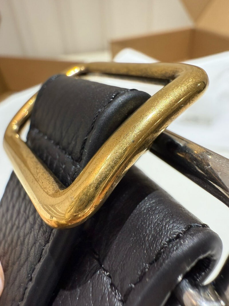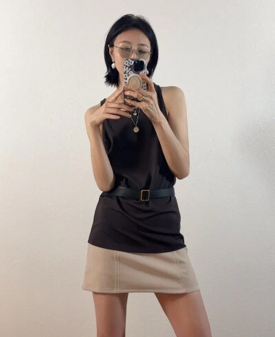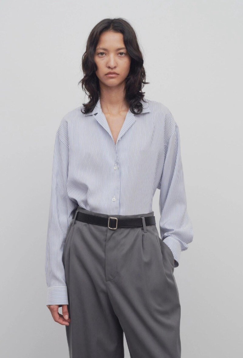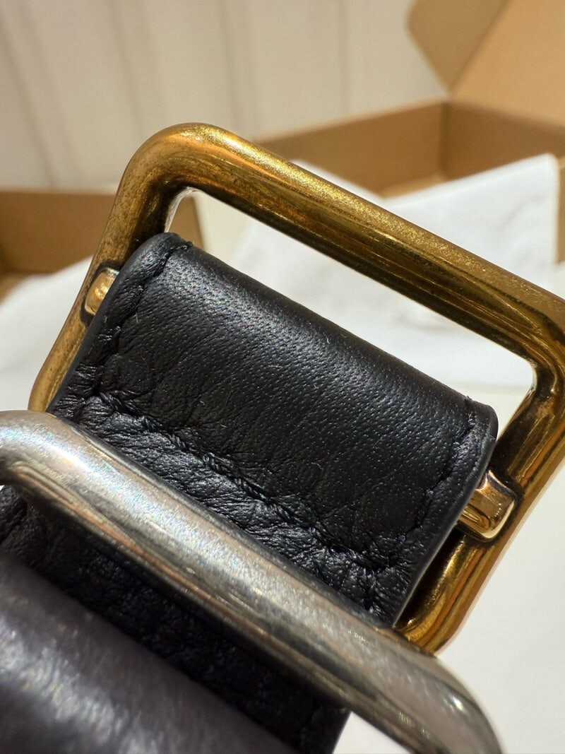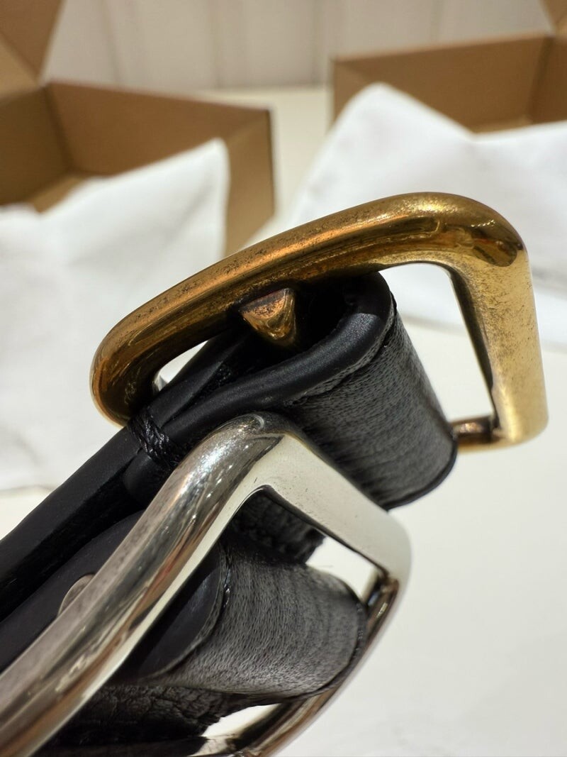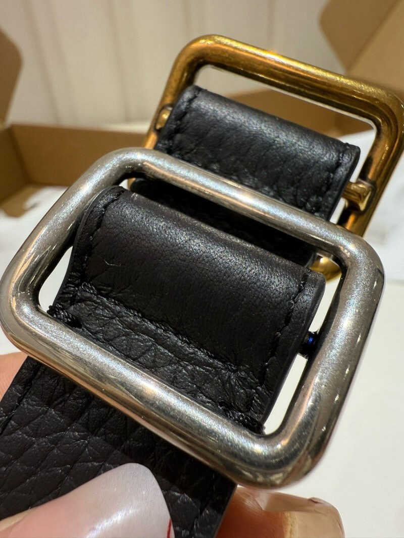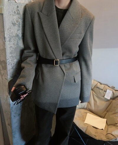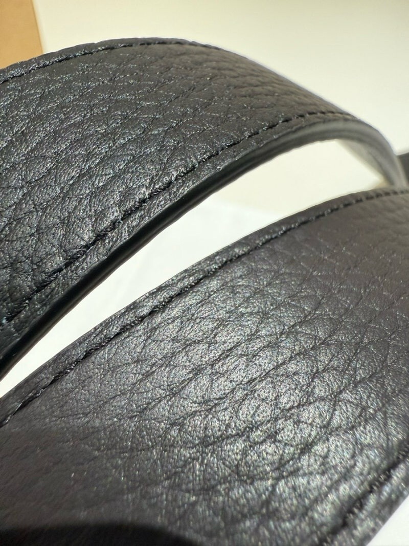 메탈 버클이 달린 베지터블 그레인 카프스킨 가죽 소재의 미니멀 벨트