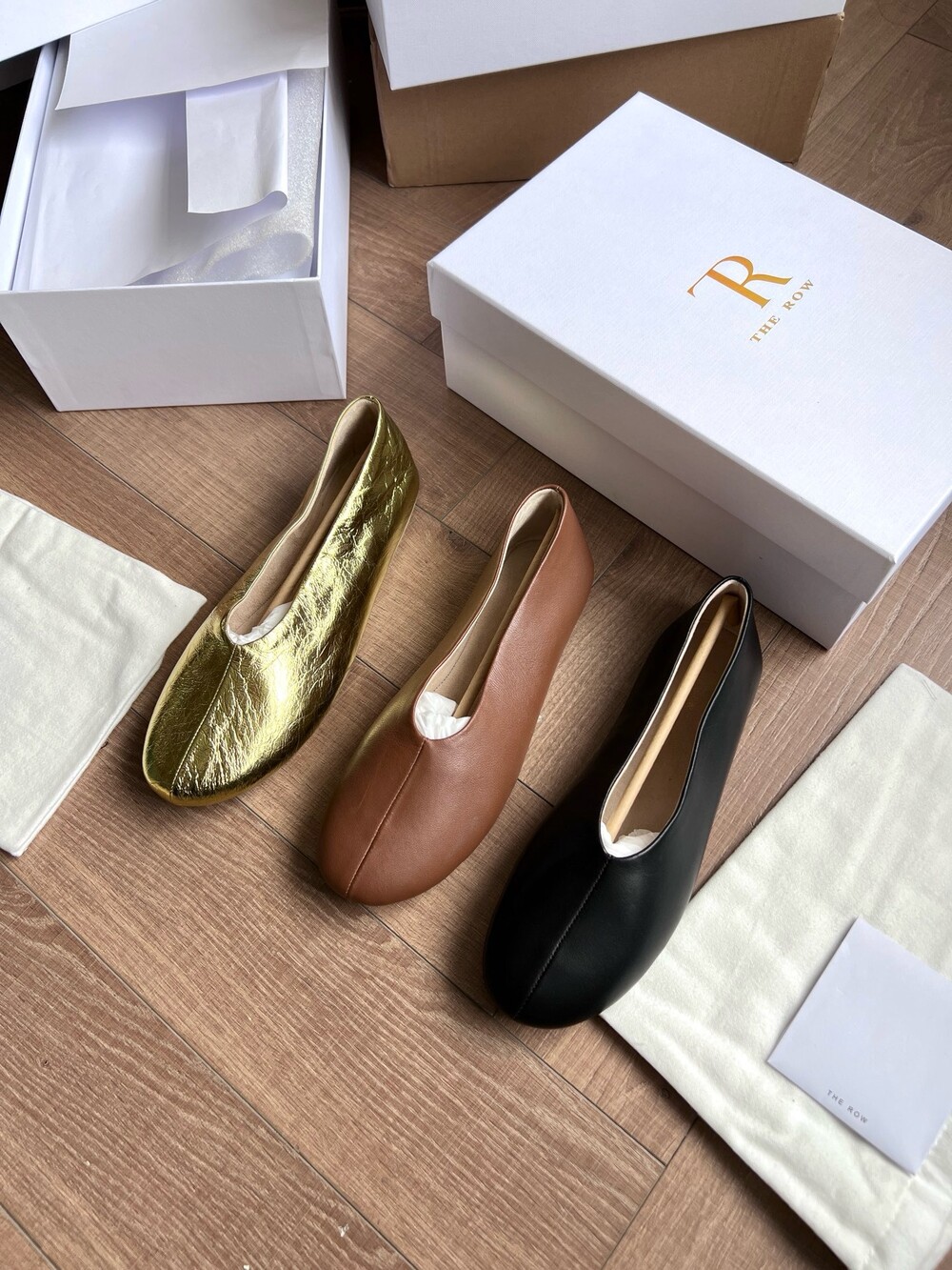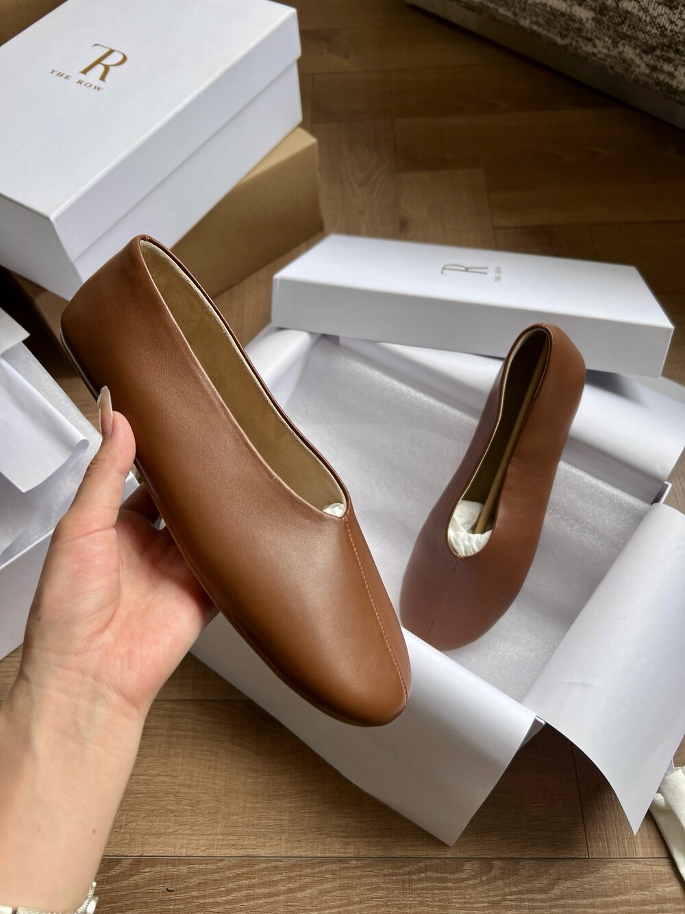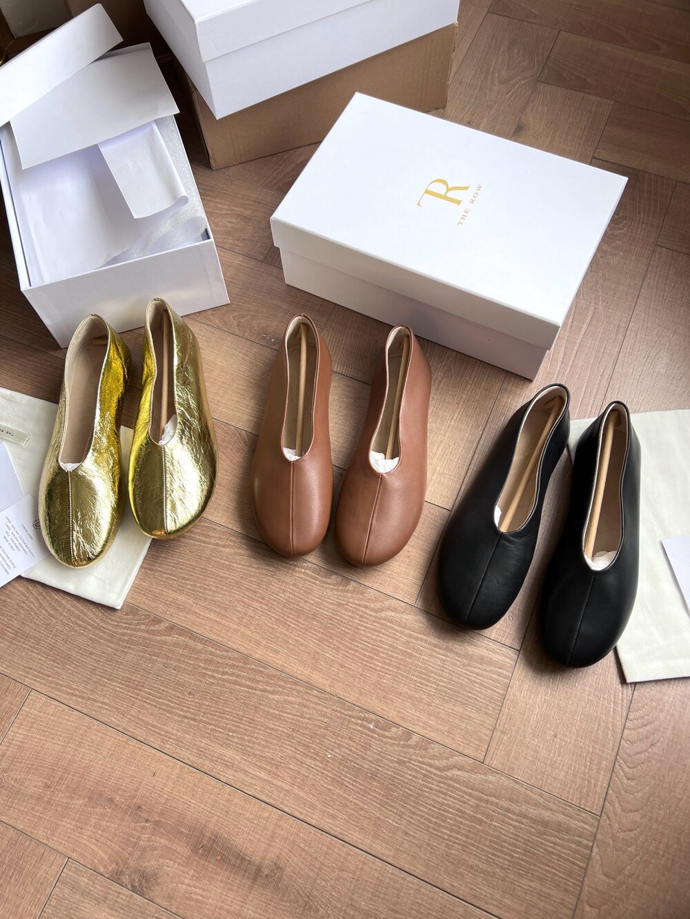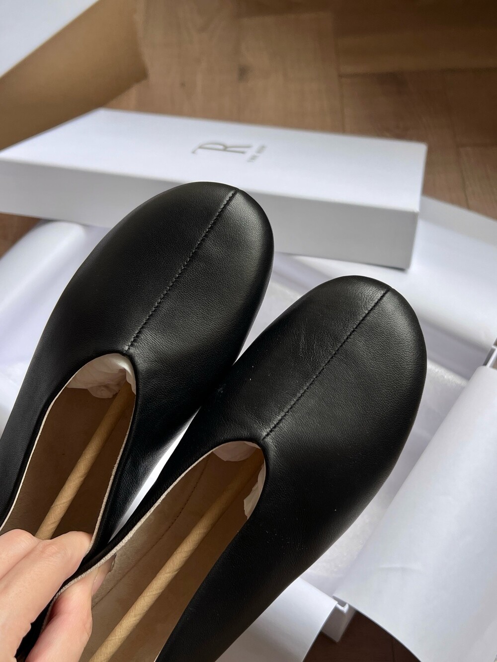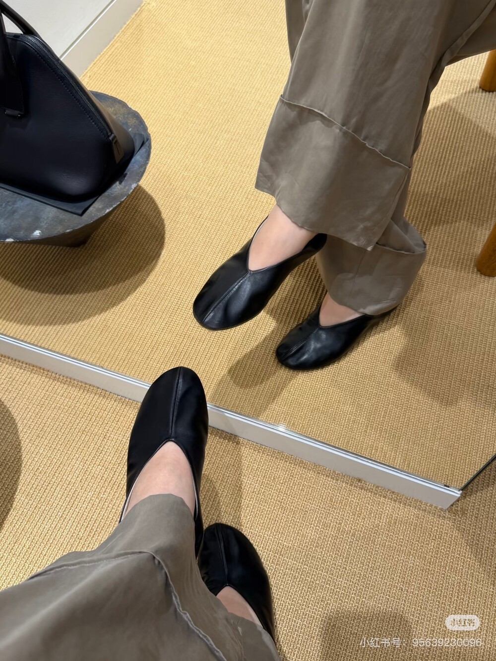 부드러운 나파 가죽 소재의 슬립온 슈즈로 타원형 토, 앞면 중앙 솔기와 유연한 고무 코팅 밑창이 특징입니다.