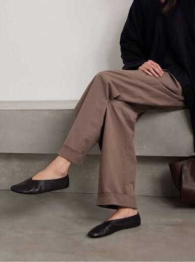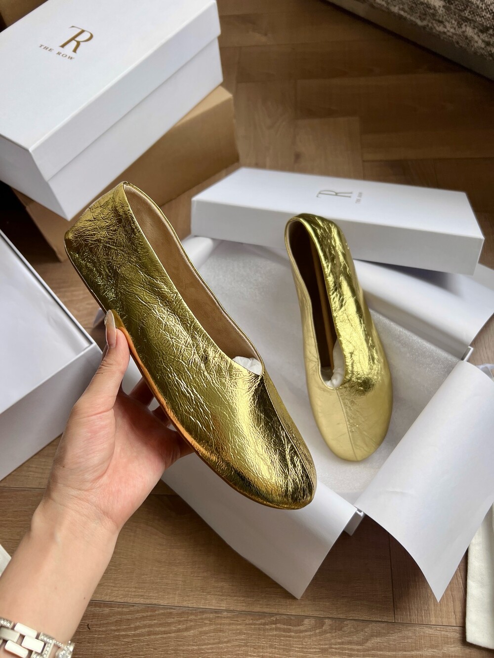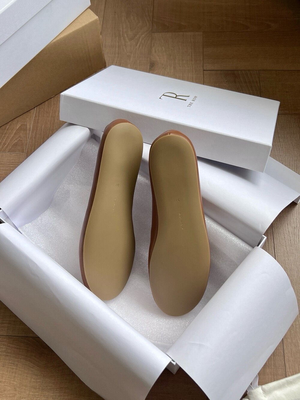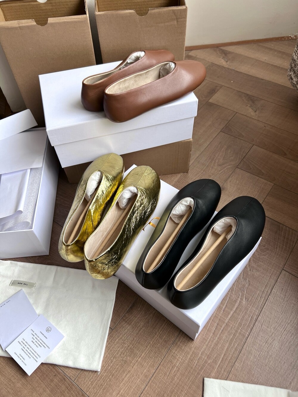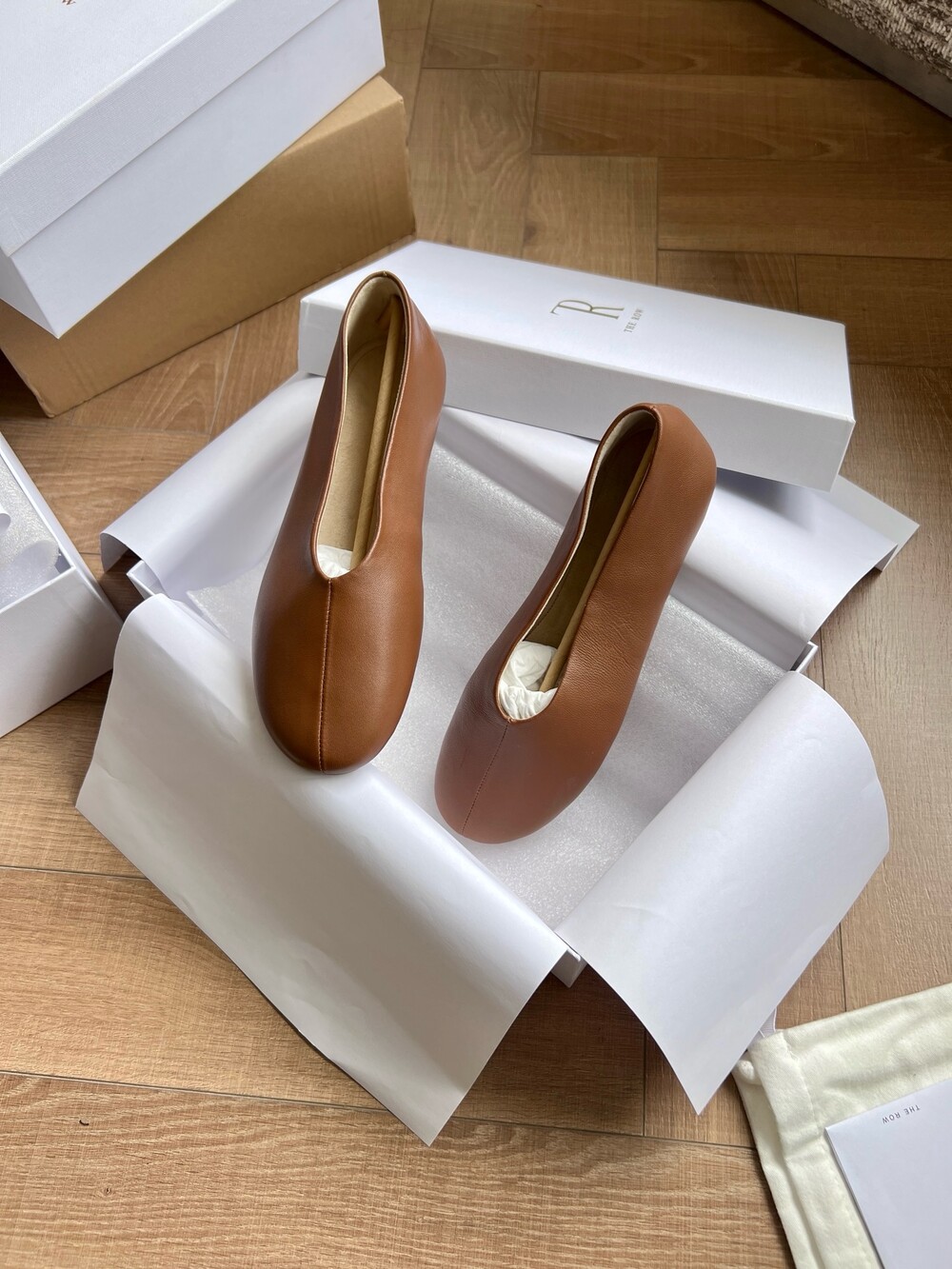 부드러운 나파 가죽 소재의 슬립온 슈즈로 타원형 토, 앞면 중앙 솔기와 유연한 고무 코팅 밑창이 특징입니다.
