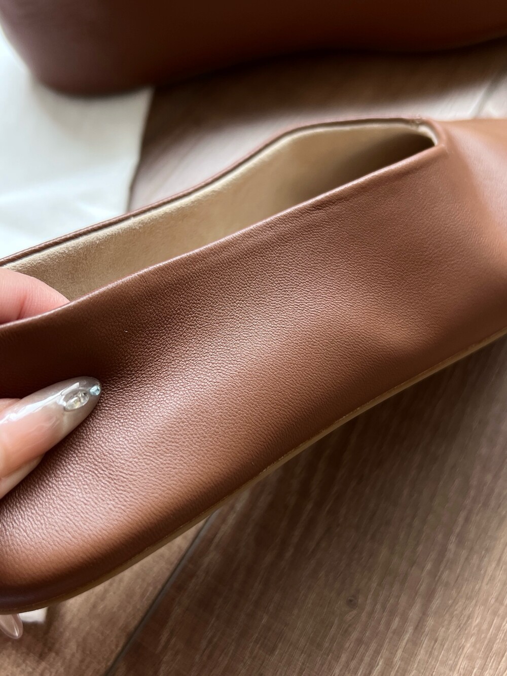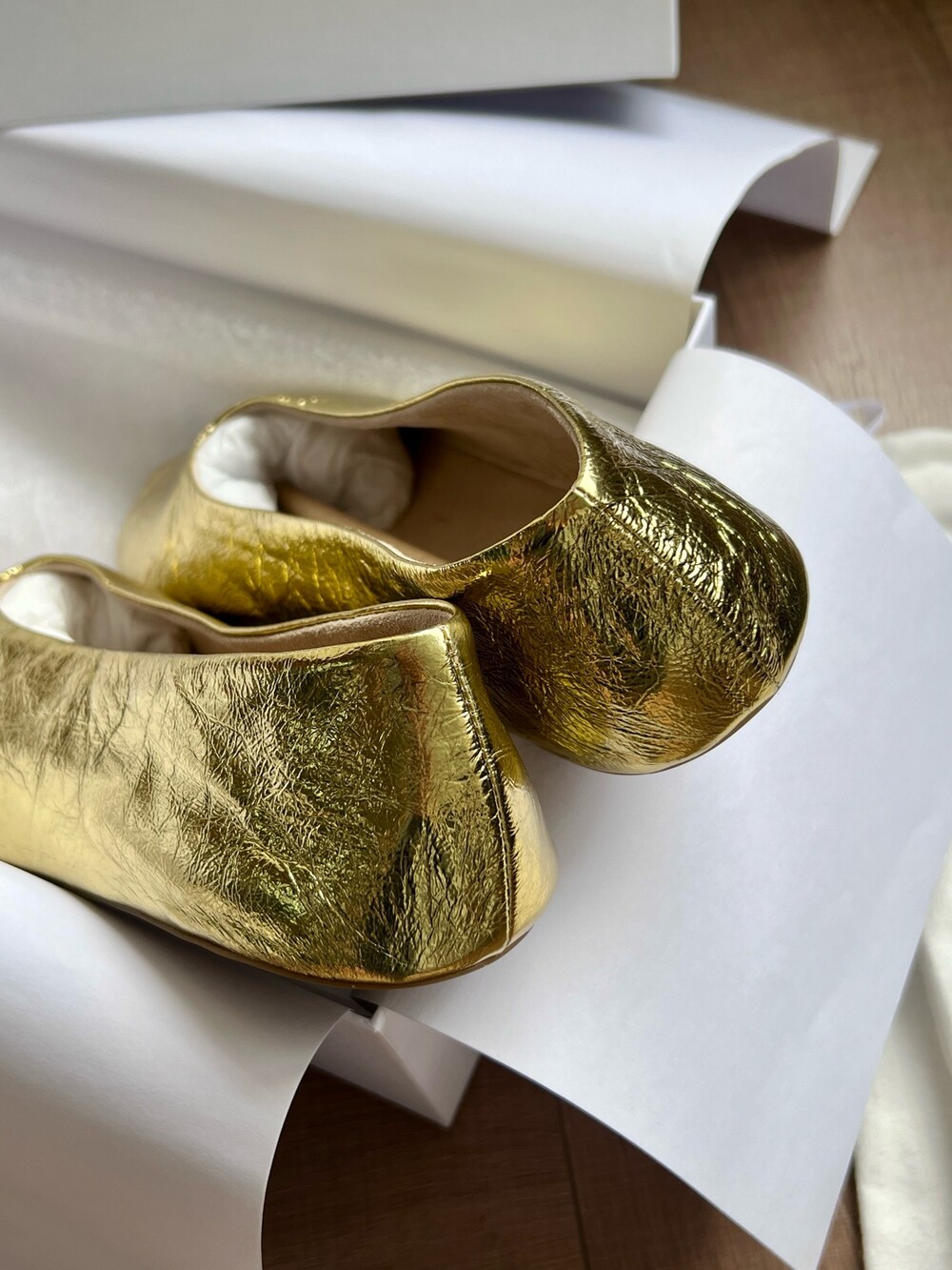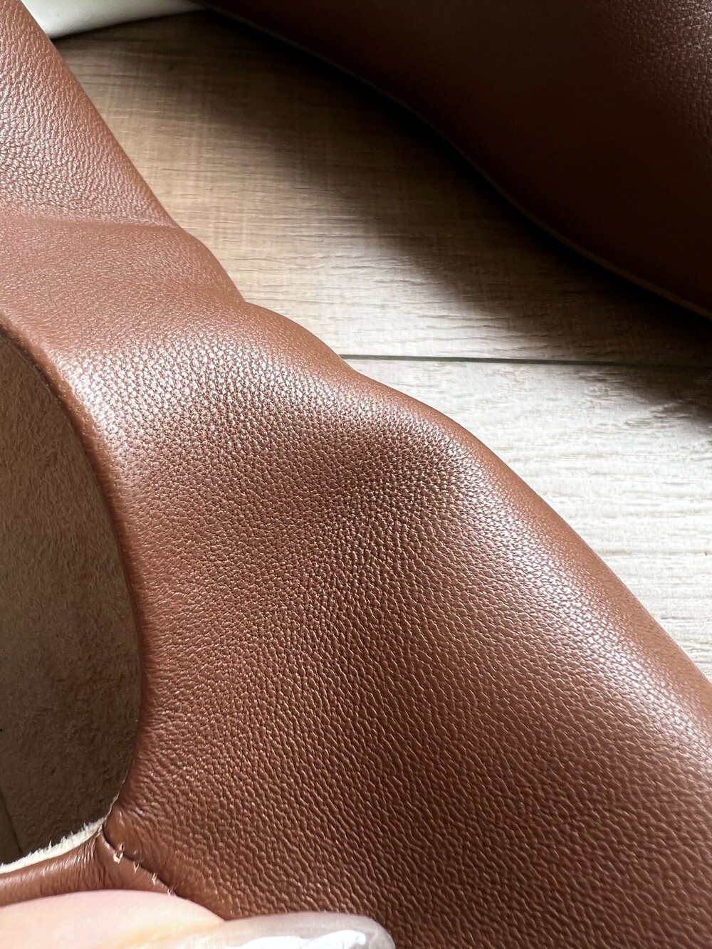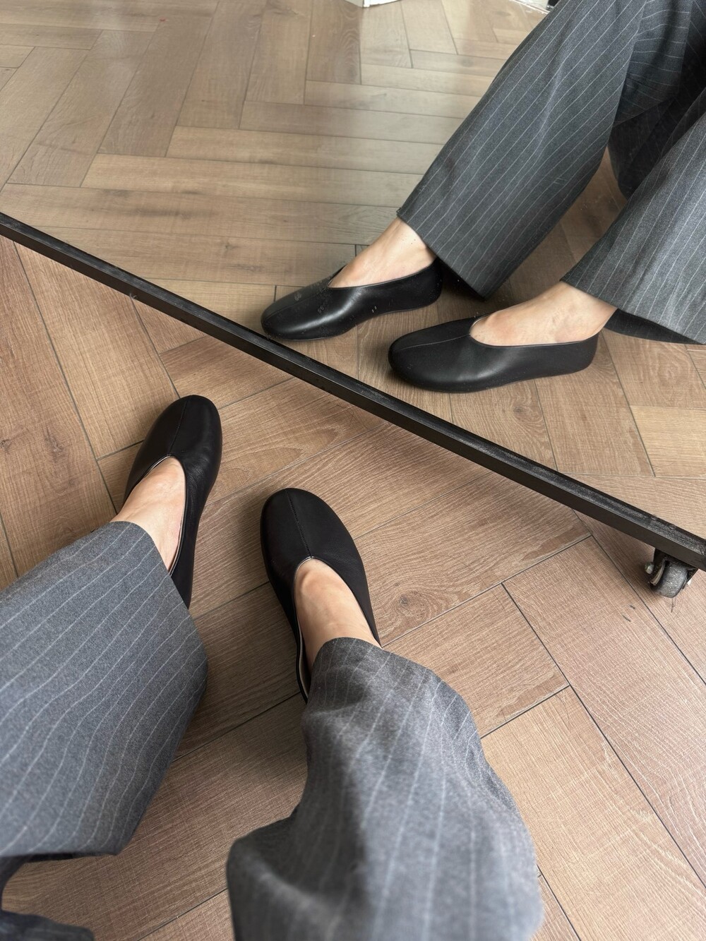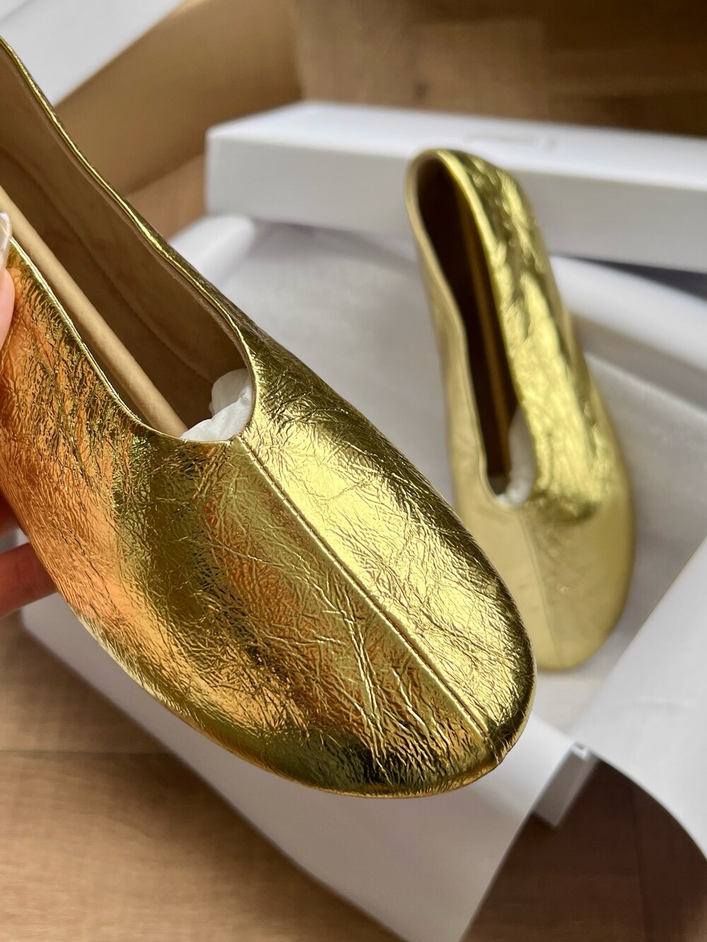 부드러운 나파 가죽 소재의 슬립온 슈즈로 타원형 토, 앞면 중앙 솔기와 유연한 고무 코팅 밑창이 특징입니다.