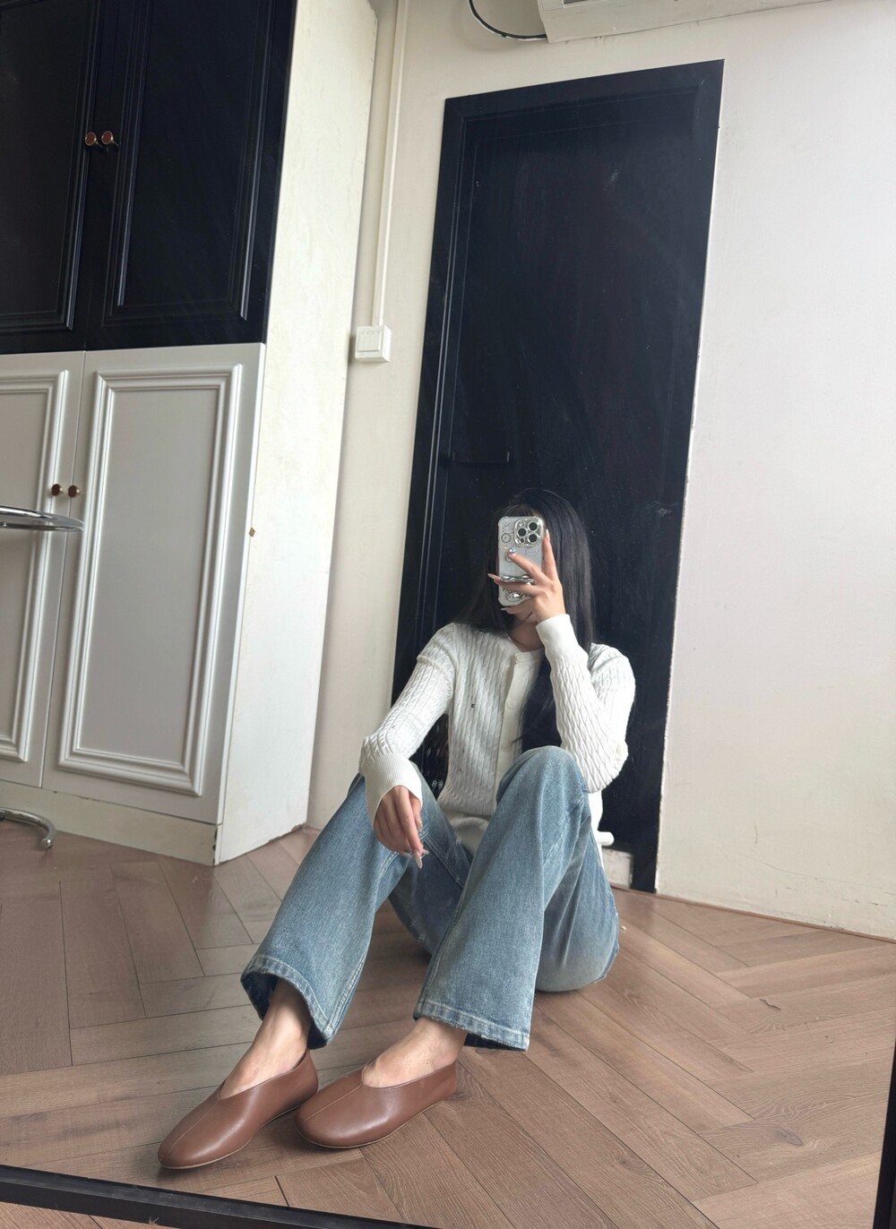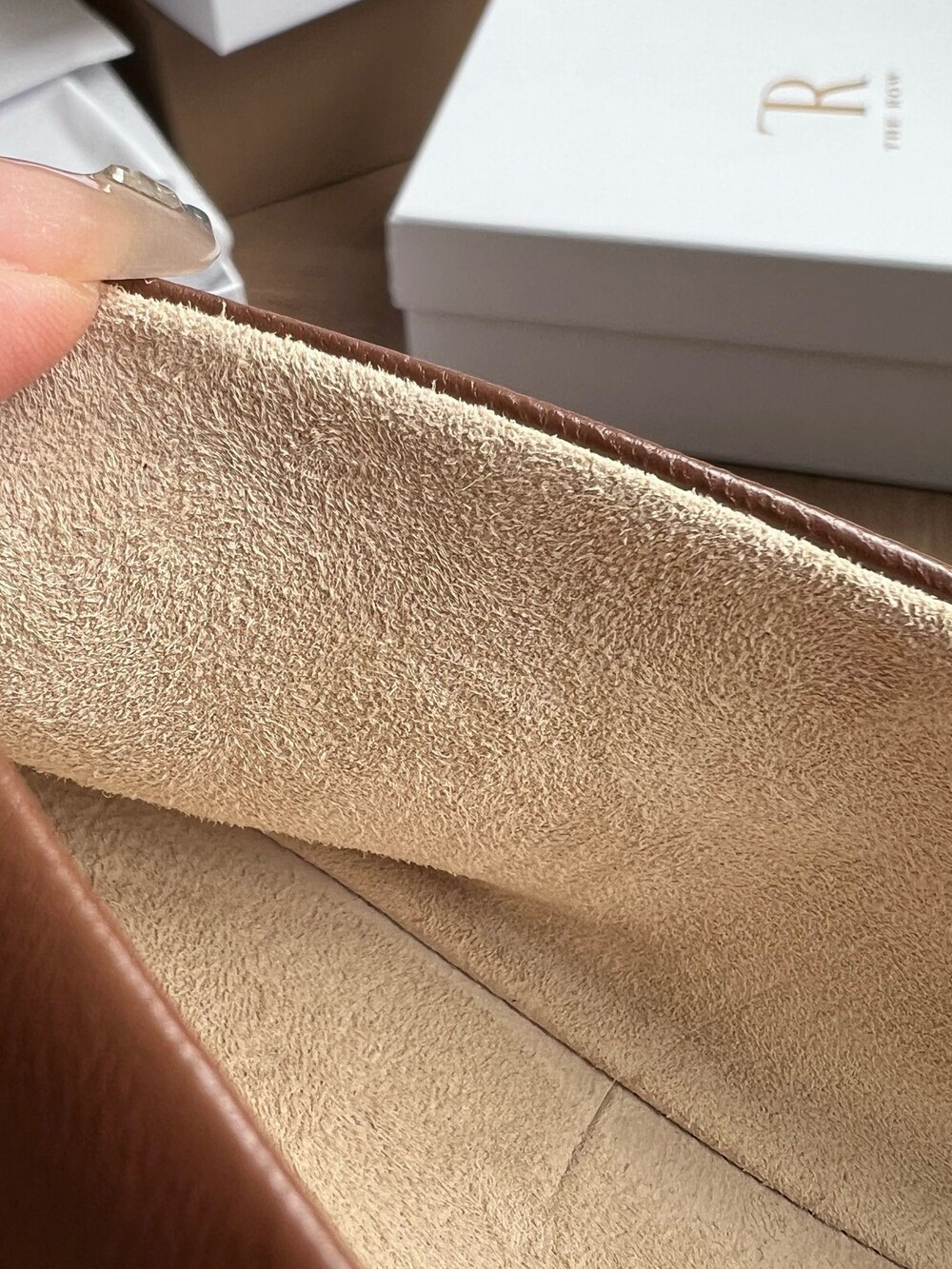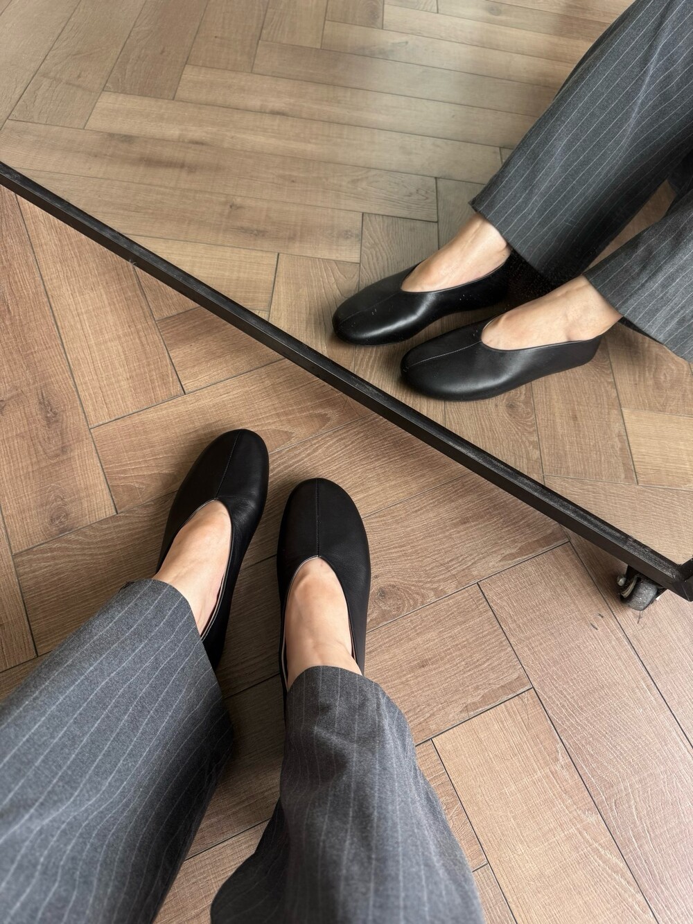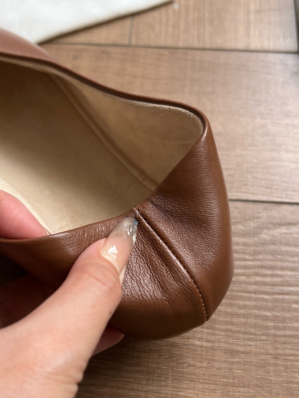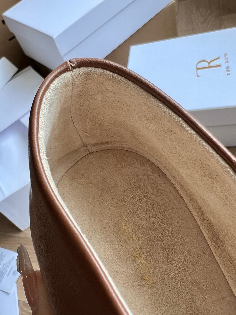 부드러운 나파 가죽 소재의 슬립온 슈즈로 타원형 토, 앞면 중앙 솔기와 유연한 고무 코팅 밑창이 특징입니다.