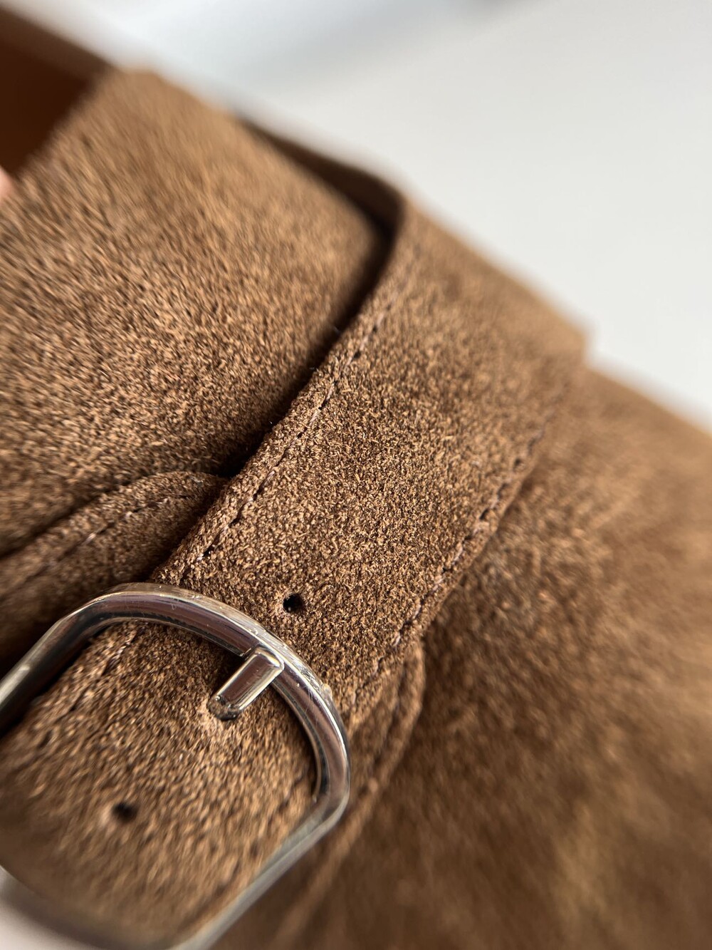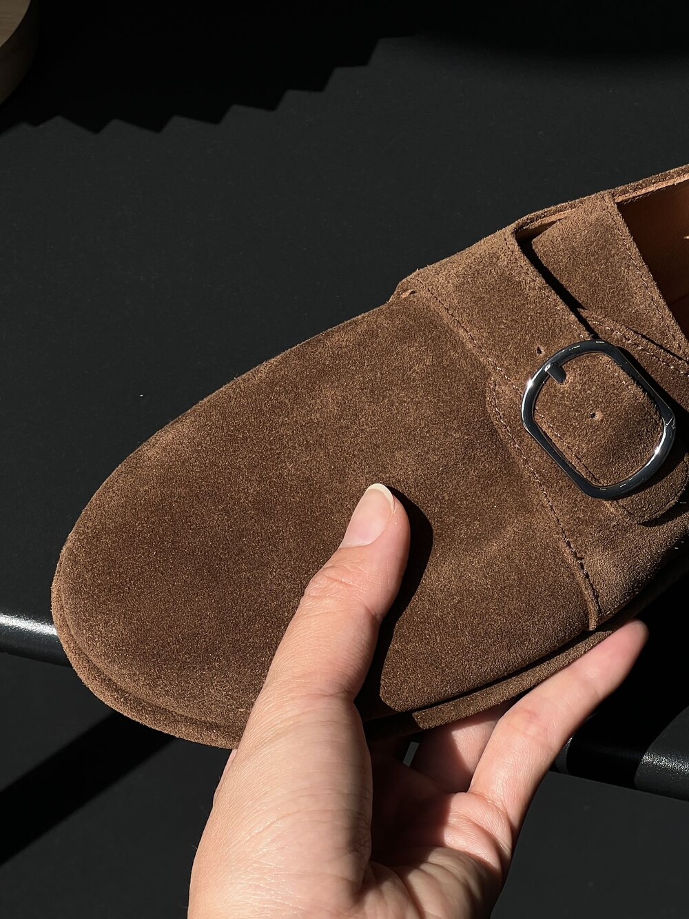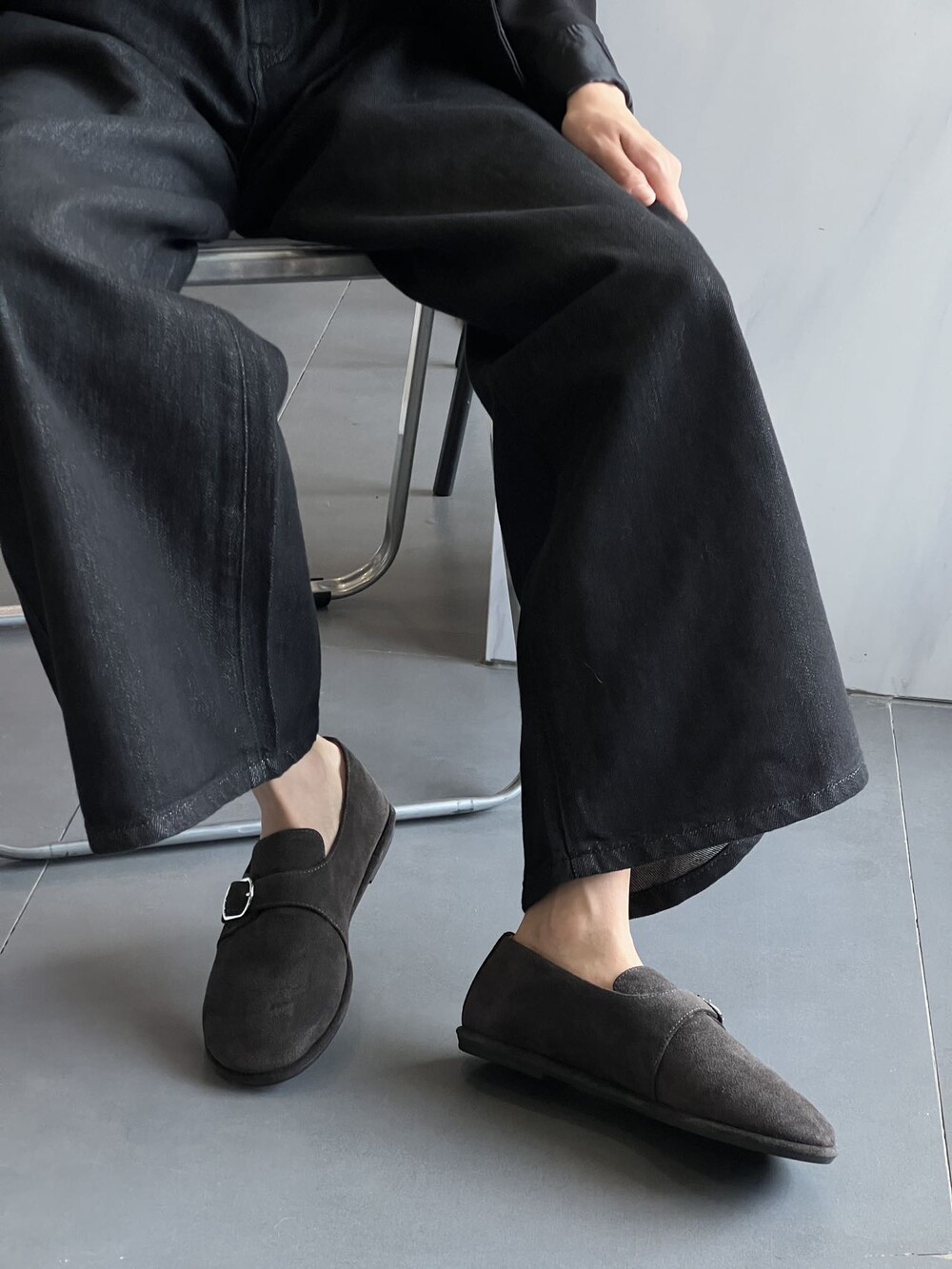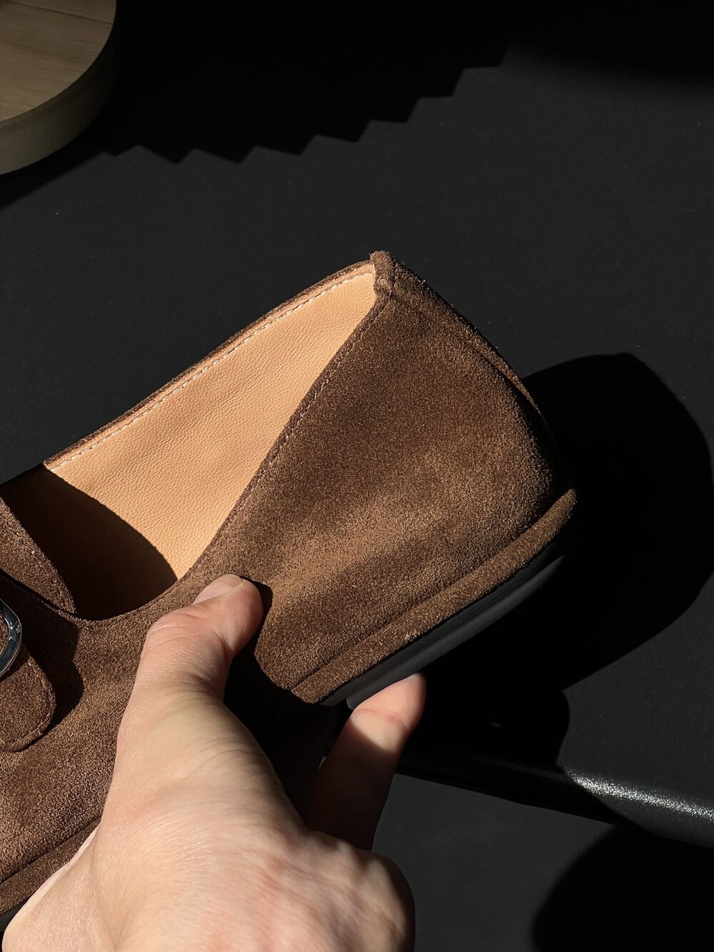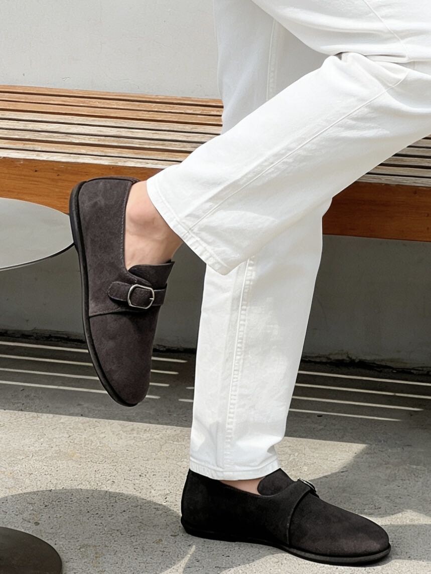 1. 프리미엄 수입 카우 스웨이드 (Cow Suede) 하이엔드 슈즈에만 사용되는 최고급 카우 스웨이드 소재를 사용했습니다. 부드러운 질감과 탄탄한 내구성을 동시에 잡았으며, 결을 따라 흐르는 고급스러운 윤기가 특징입니다. 빛의 각도에 따라 변하는 오묘한 색감은 오직 고퀄리티 스웨이드에서만 느껴보실 수 있습니다.
