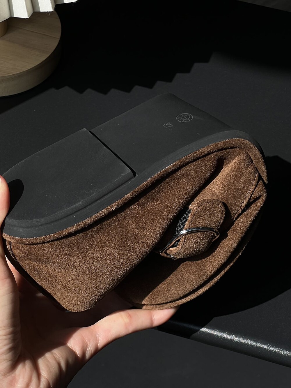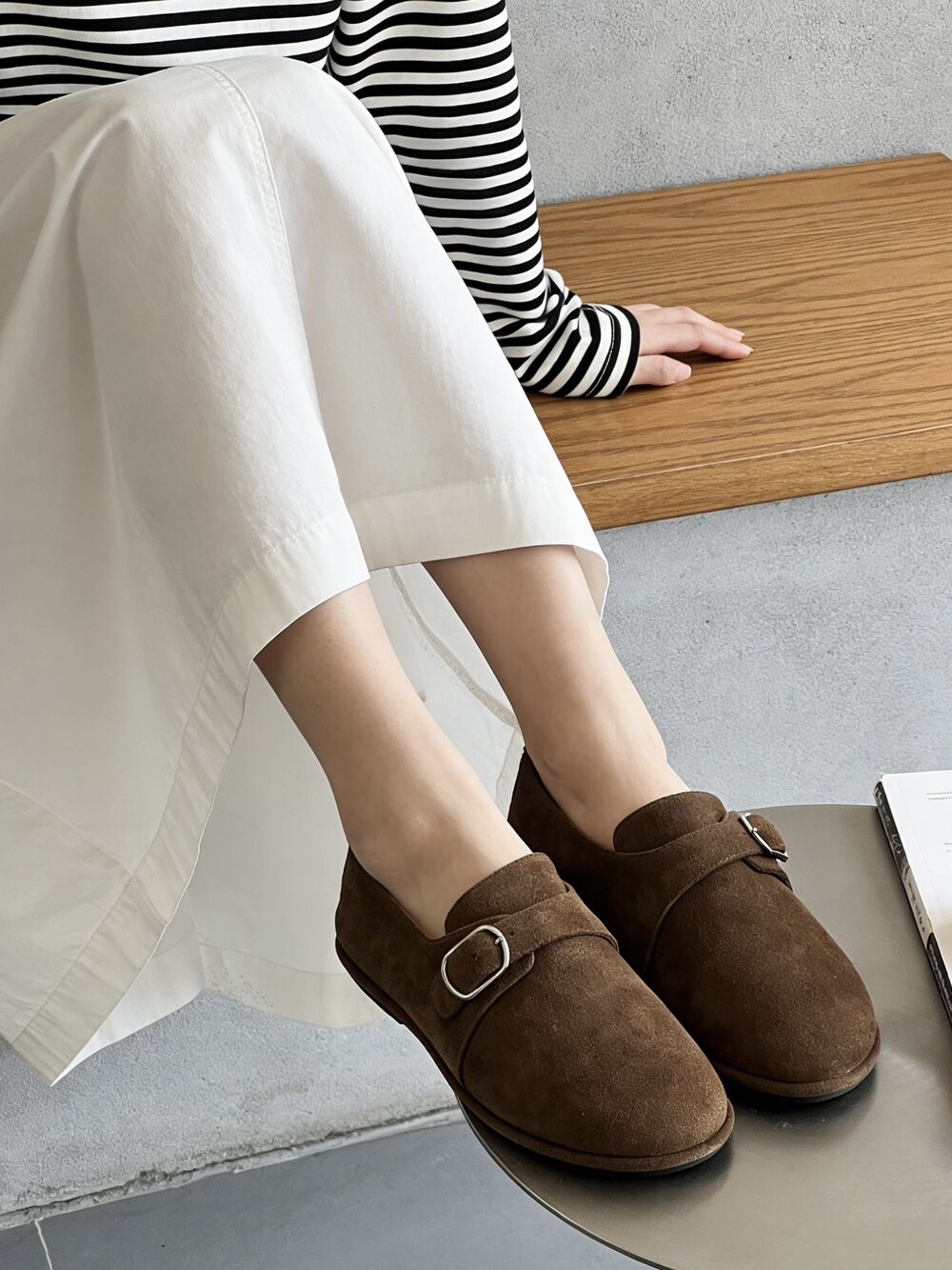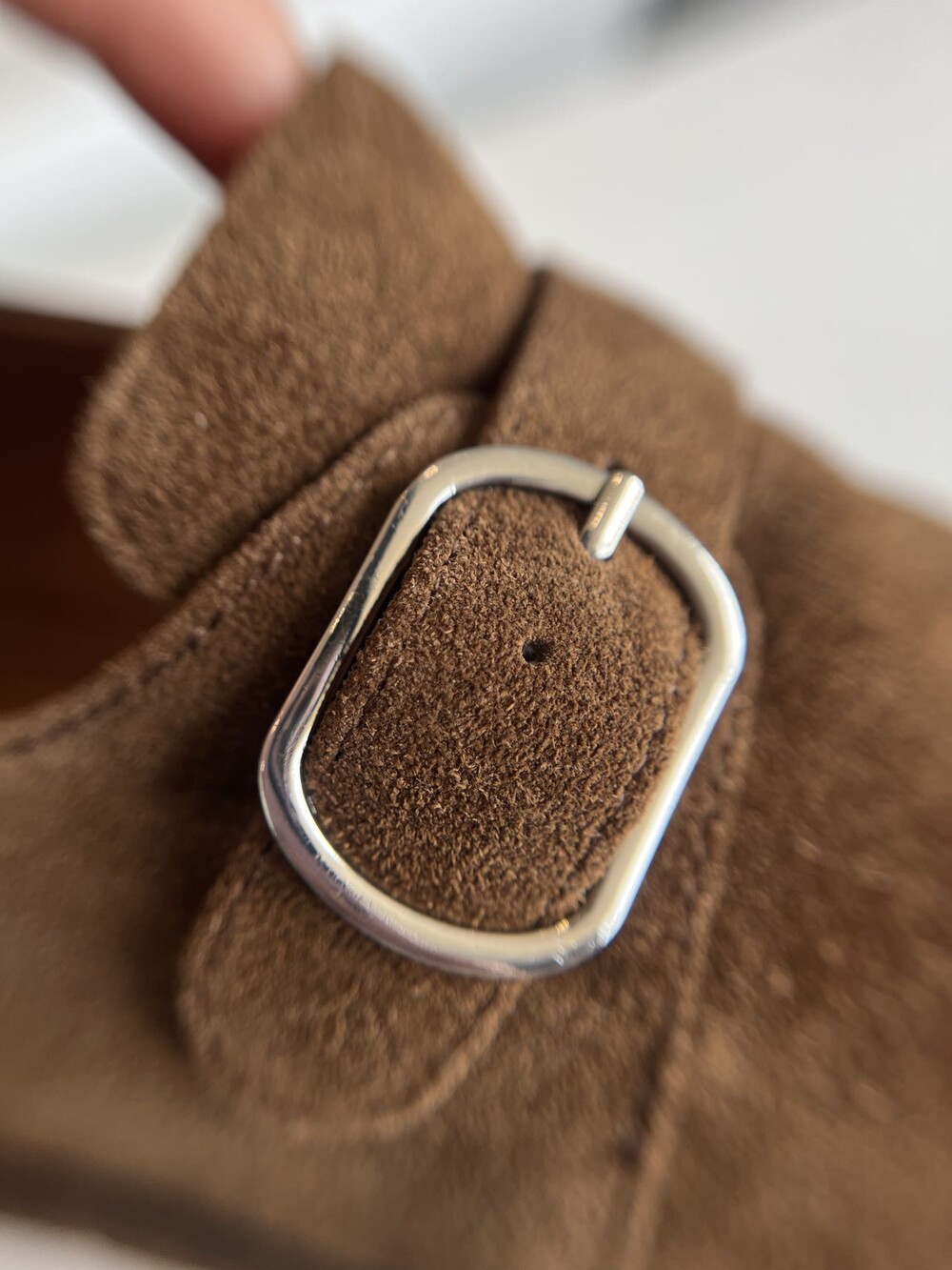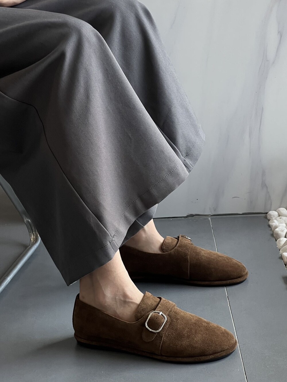 1. 프리미엄 수입 카우 스웨이드 (Cow Suede) 하이엔드 슈즈에만 사용되는 최고급 카우 스웨이드 소재를 사용했습니다. 부드러운 질감과 탄탄한 내구성을 동시에 잡았으며, 결을 따라 흐르는 고급스러운 윤기가 특징입니다. 빛의 각도에 따라 변하는 오묘한 색감은 오직 고퀄리티 스웨이드에서만 느껴보실 수 있습니다.
