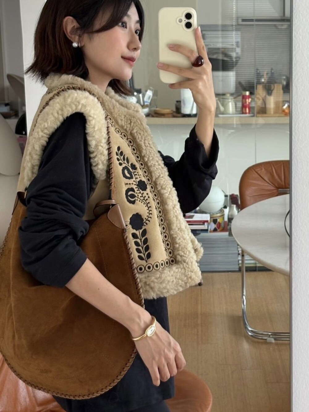우븐 스웨이드 송아지 가죽 숄더백