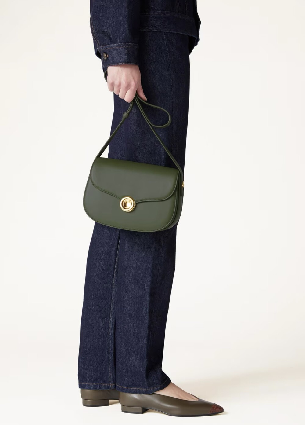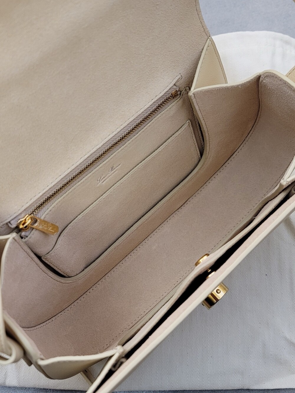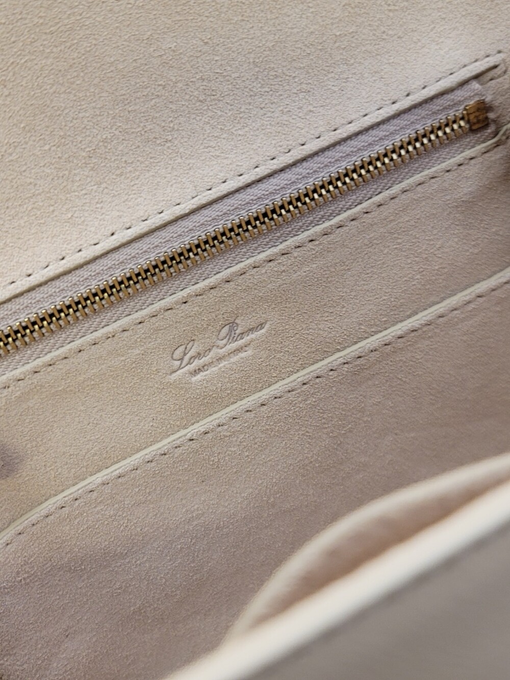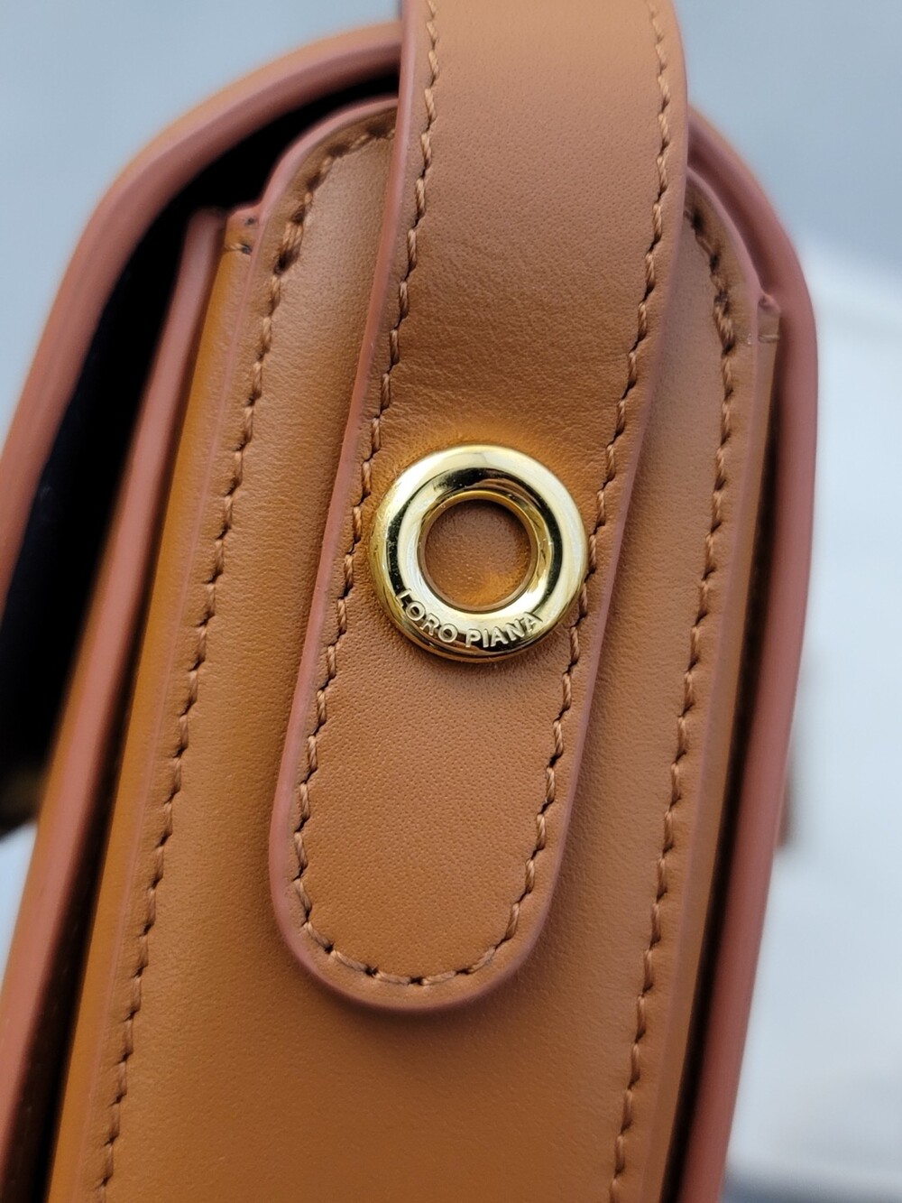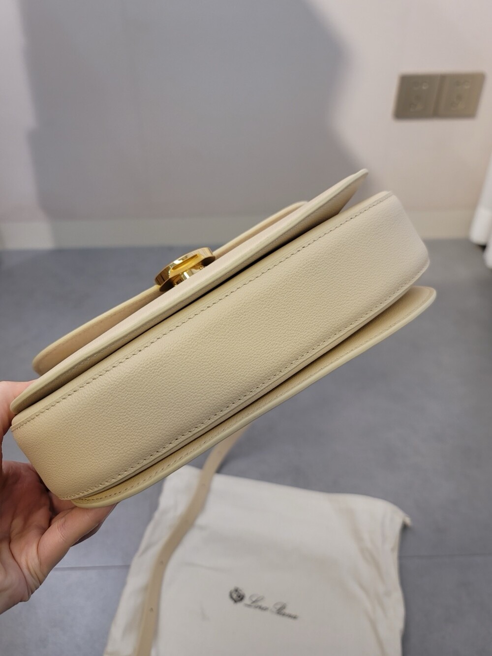 아이코닉한 로로피아나 링 클래스프를 스타일리시한 버전으로 승화시킨 새로운 라운드 클래스프에서 영감을 받아 태어난 기에라 라인의 신제품. 기에라 백에 비해 살짝 각진 형태로 제작되었으며, 바디와 플랩 부분의 곡선형 가장자리로 구조와 유연함 사이의 균형을 엿볼 수 있는 디자인. 메탈 버클과 장식 디테일의 조절 가능한 숄더 스트랩을 갖추어 크로스 백 및 숄더백과 같이 다양한 스타일을 연출할 수 있는 최고급 카프스킨 소재의 제품.