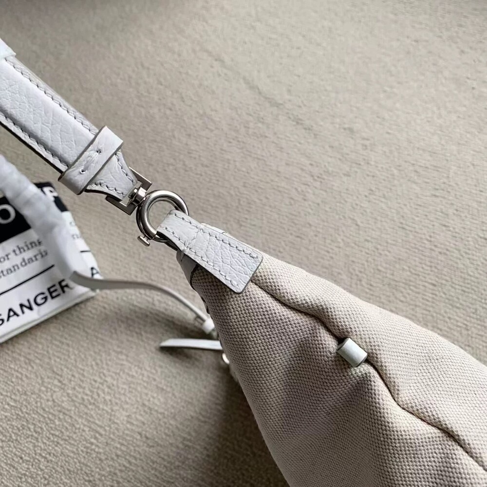 그레이니 가죽 소재의 스몰 5AC Hobo Bag. 내부의 로고 라벨. 프랑스어 ‘sac(가방)’에서 이름을 따온 아이코닉한 5AC 라인. Maison의 Anonymity of the lining 콘셉트가 잘 드러난 백. 백의 리벳을 가죽으로 감싸 필요한 부분에만 메탈 디테일이 보이도록 연출. 수작업으로 정성스레 마감된 간결한 디자인. 노출된 엣지 부분을 가죽과 동일한 톤으로 핸드 페인팅하여 완성. 장인정신이 담긴 Artisanal 디테일.