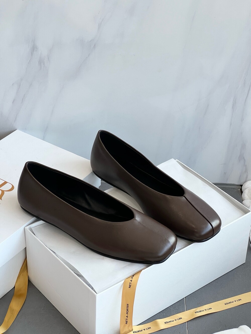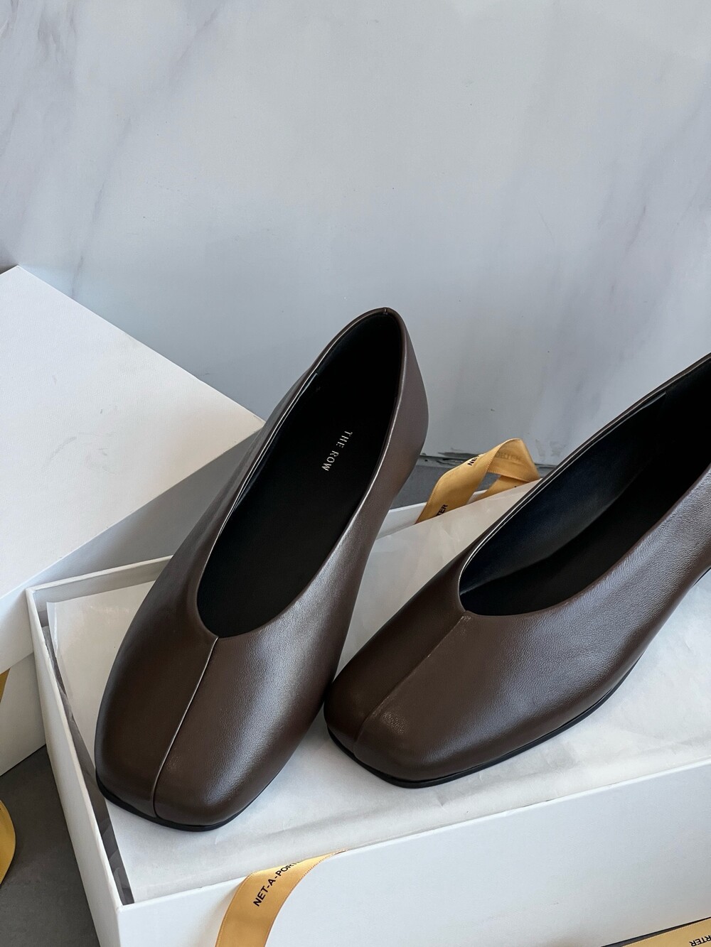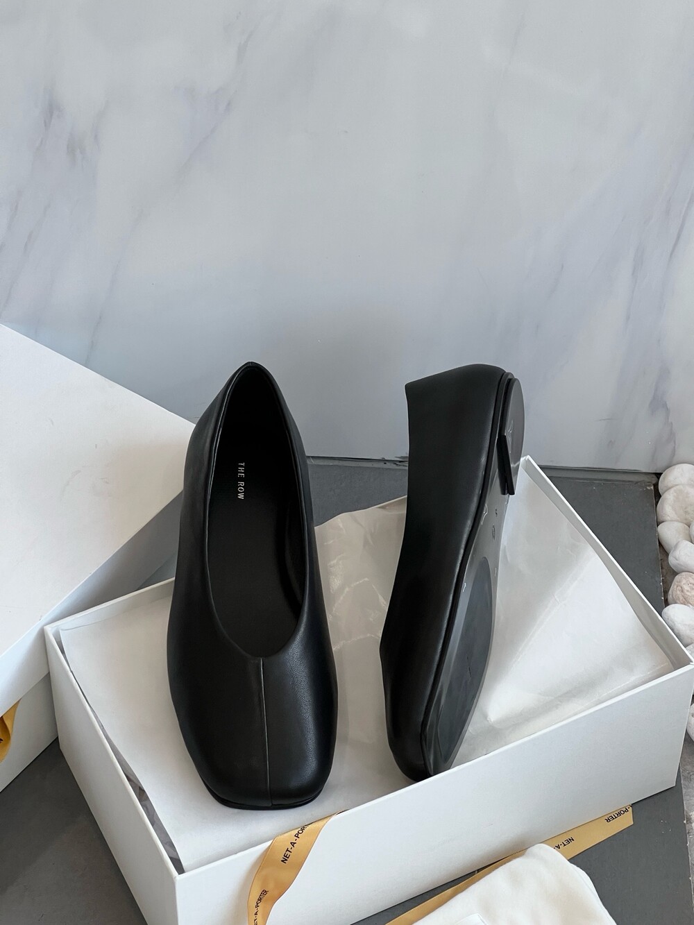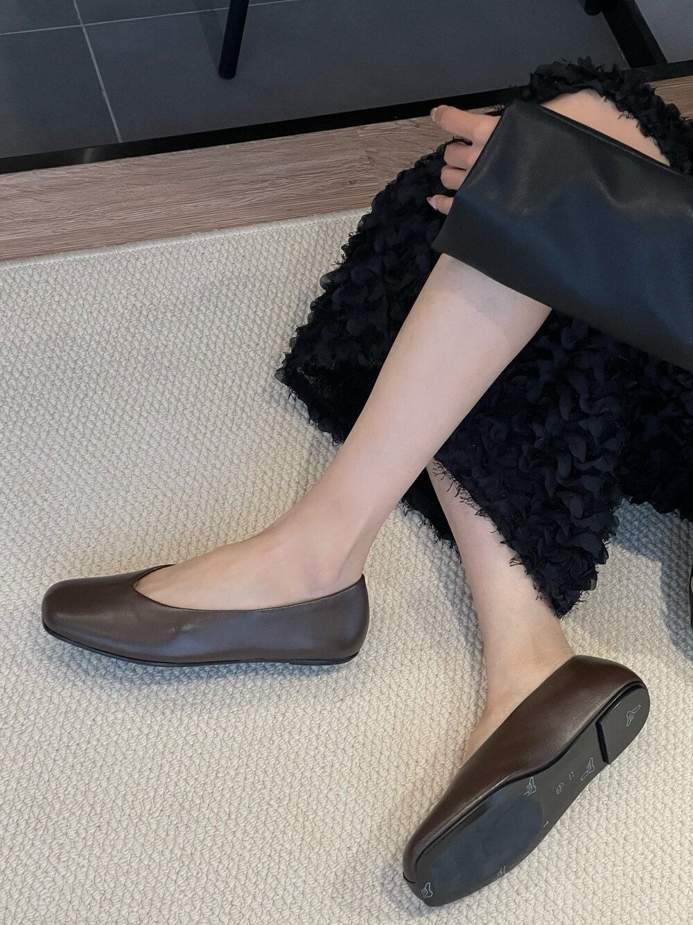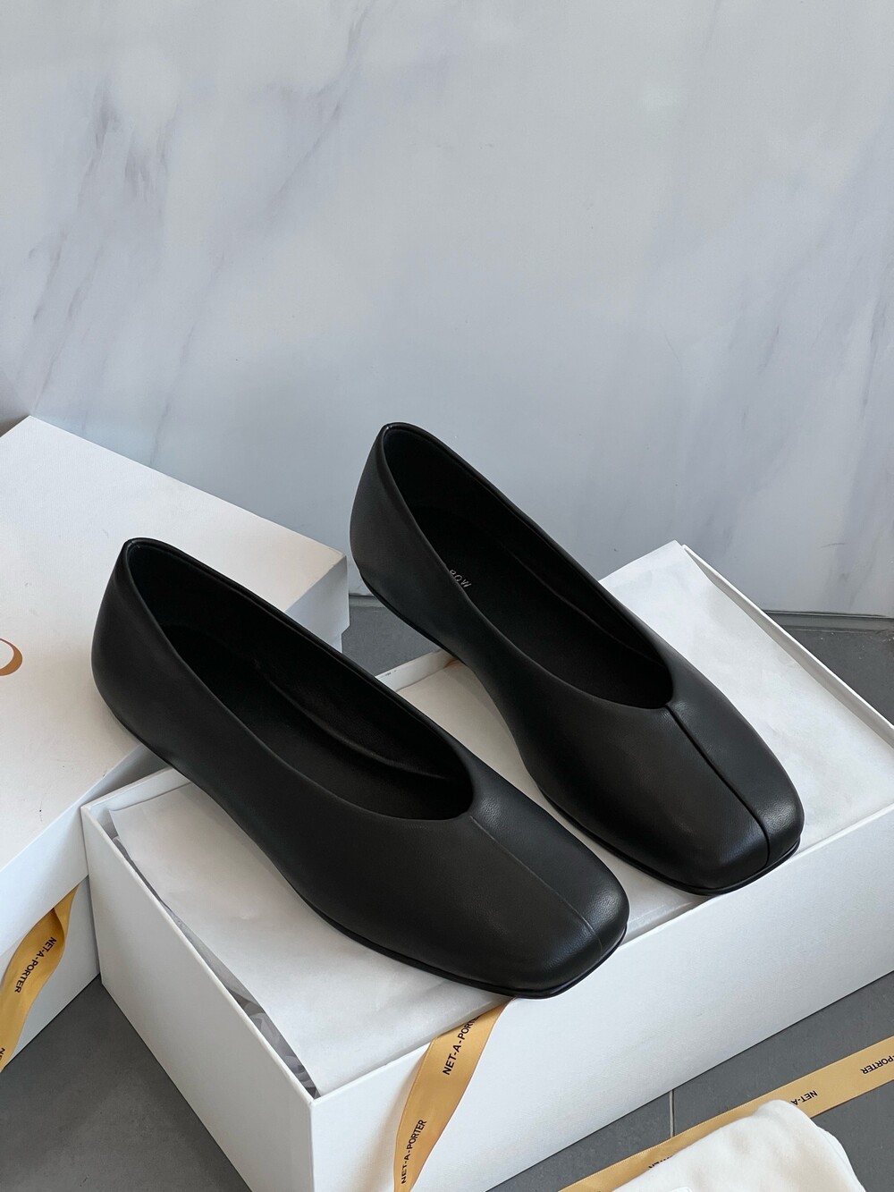 에바 투(Eva Two) 발레리나 플랫은 부드러운 나파 가죽 소재에 가벼운 가죽 밑창을 더했으며, 살짝 각진 앞코가 특징입니다.