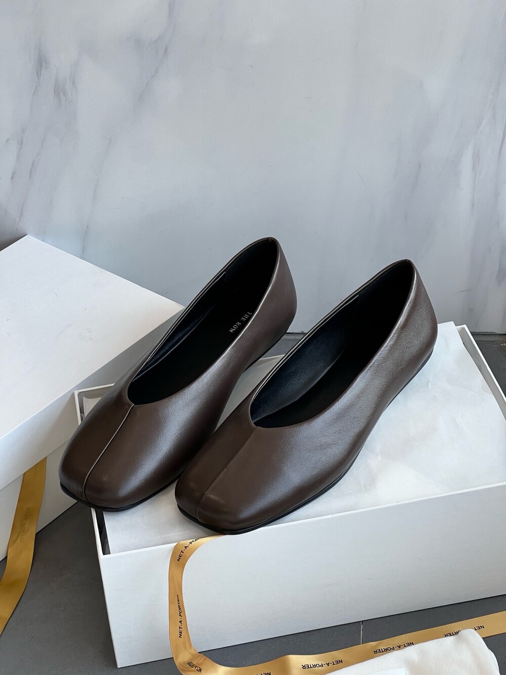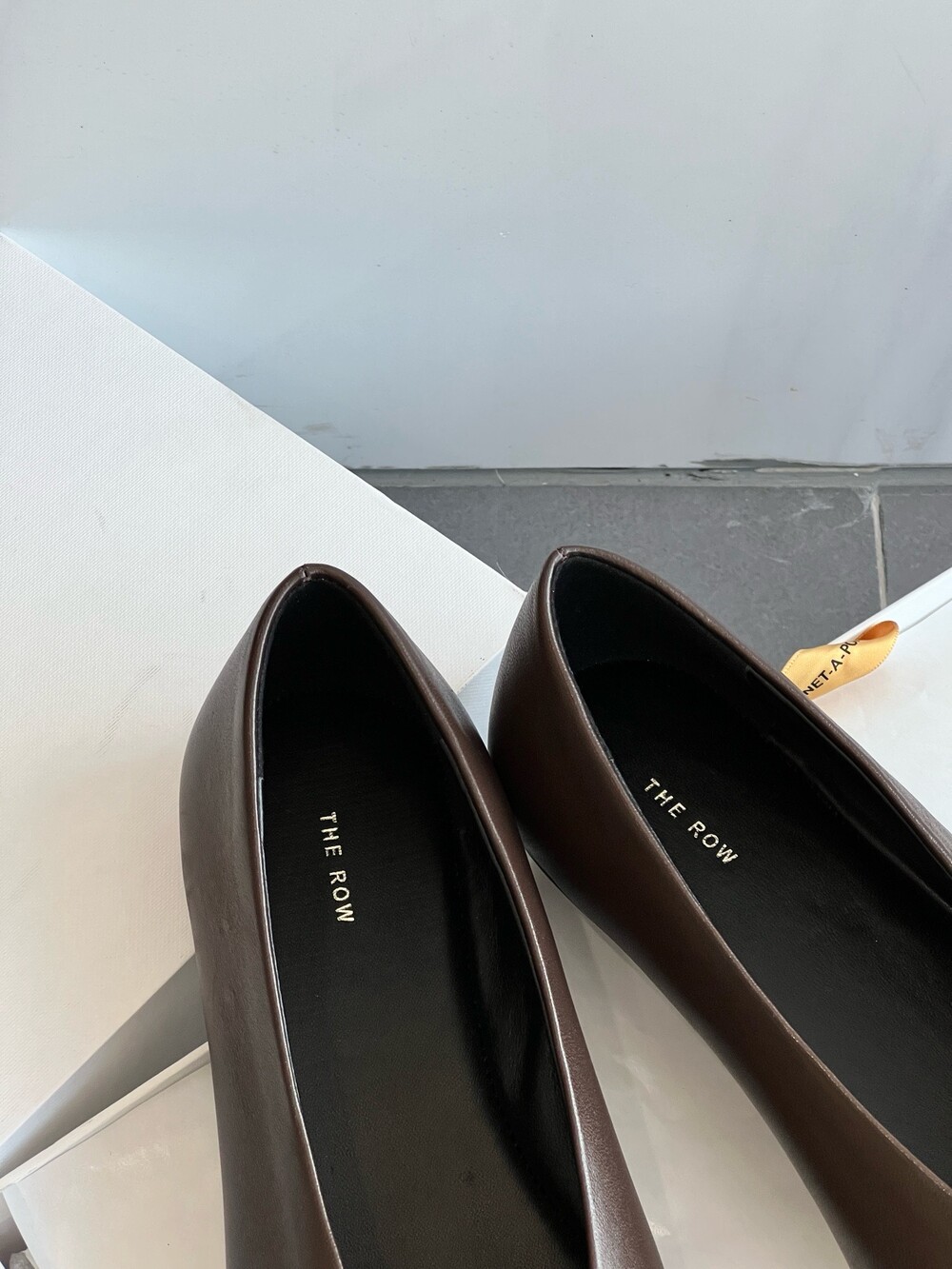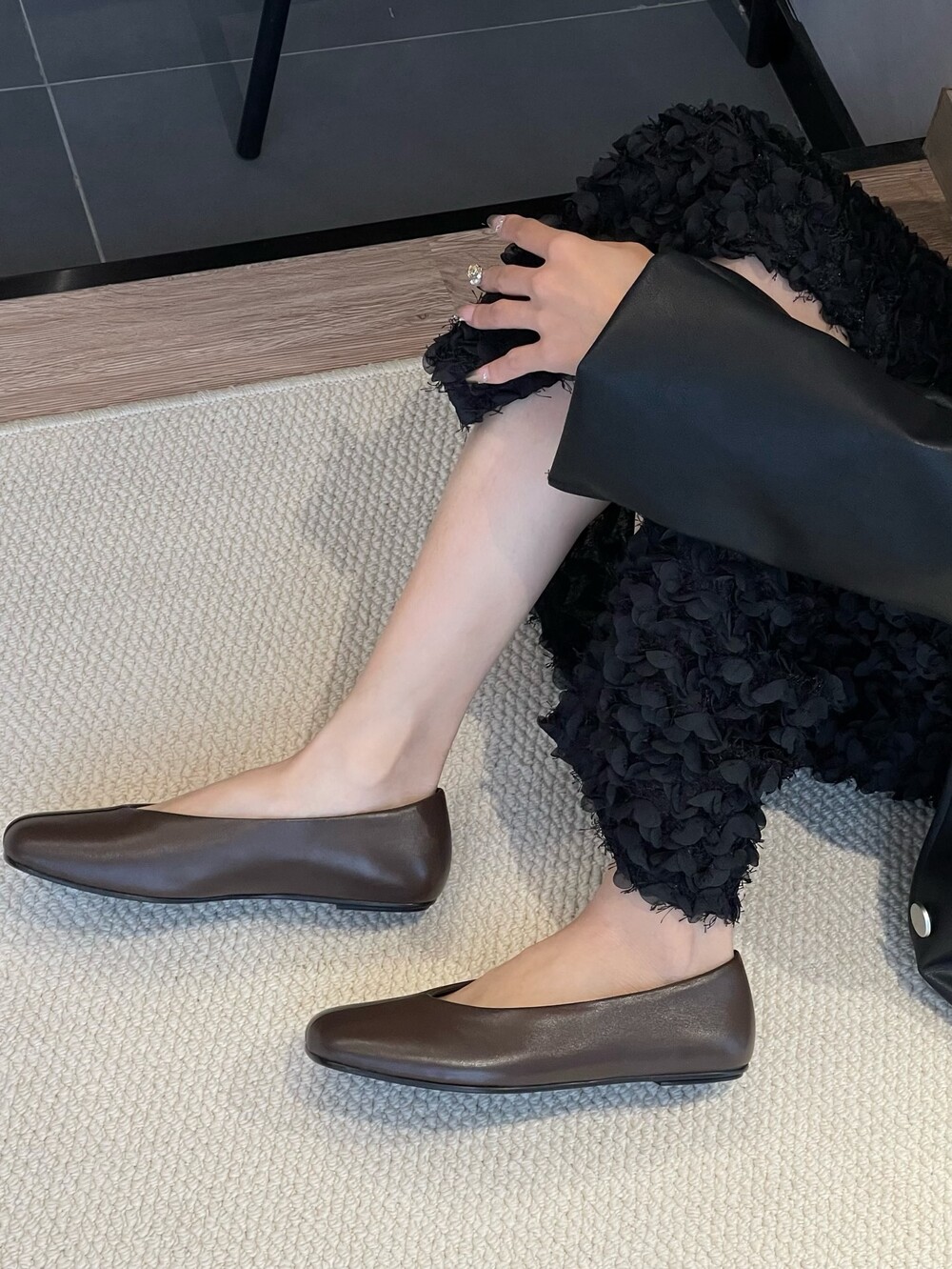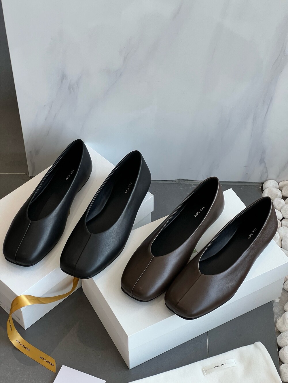 에바 투(Eva Two) 발레리나 플랫은 부드러운 나파 가죽 소재에 가벼운 가죽 밑창을 더했으며, 살짝 각진 앞코가 특징입니다.