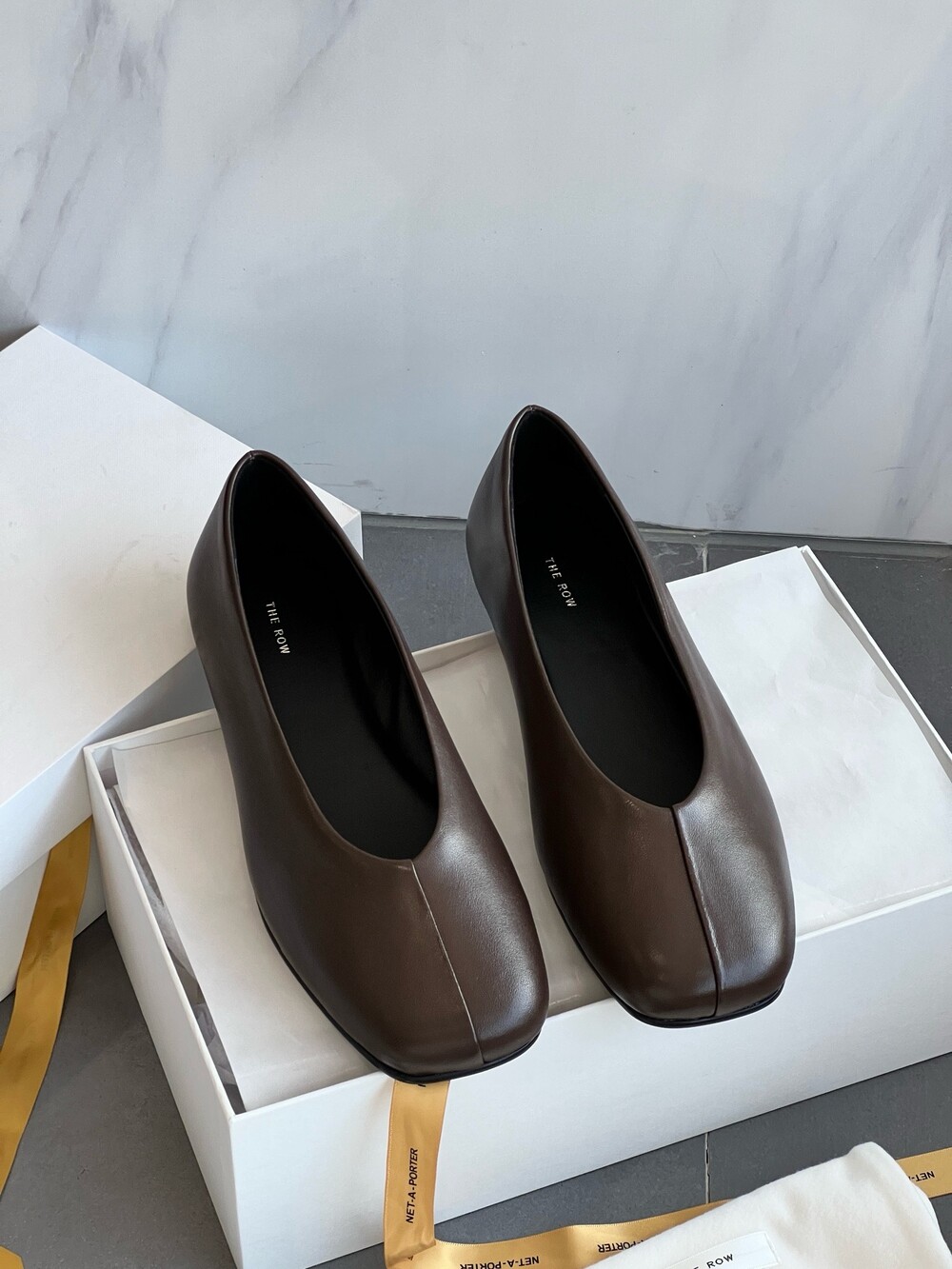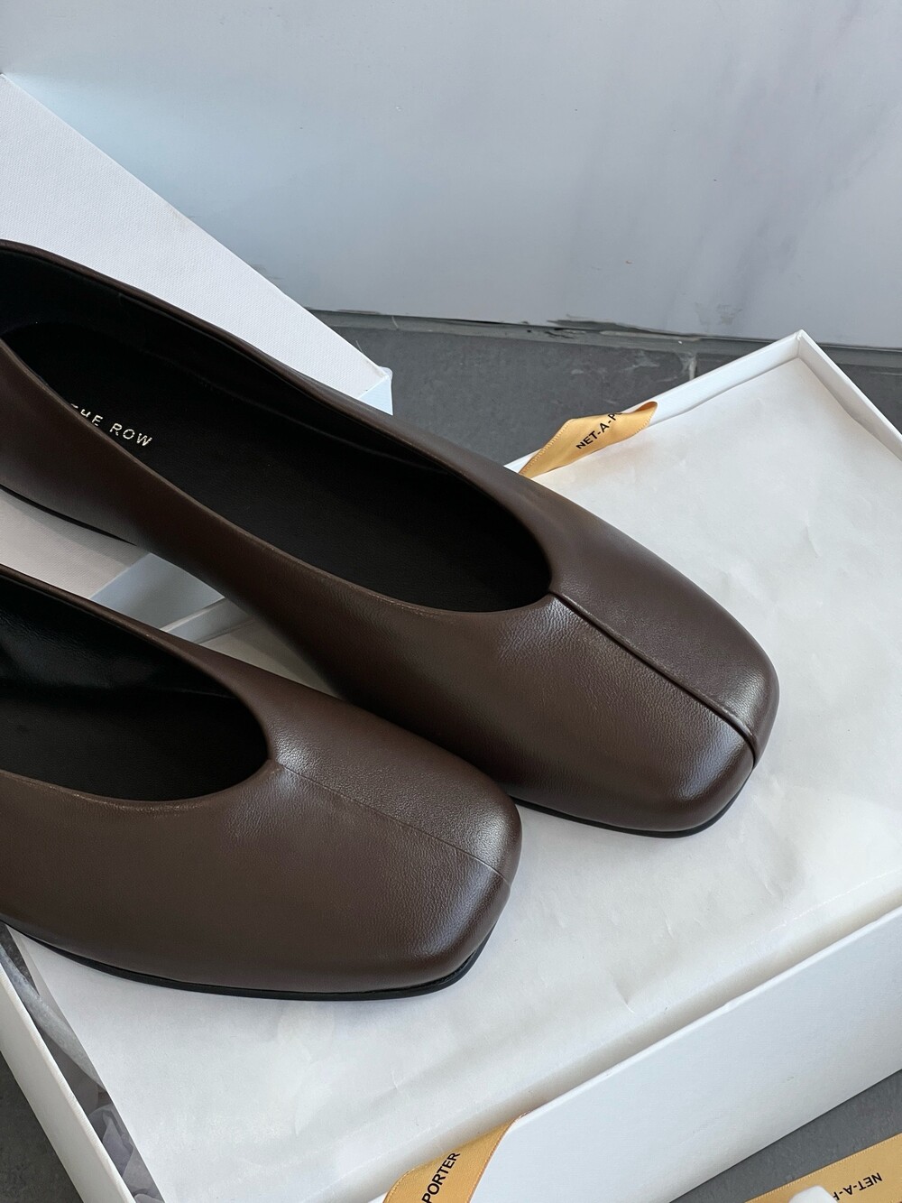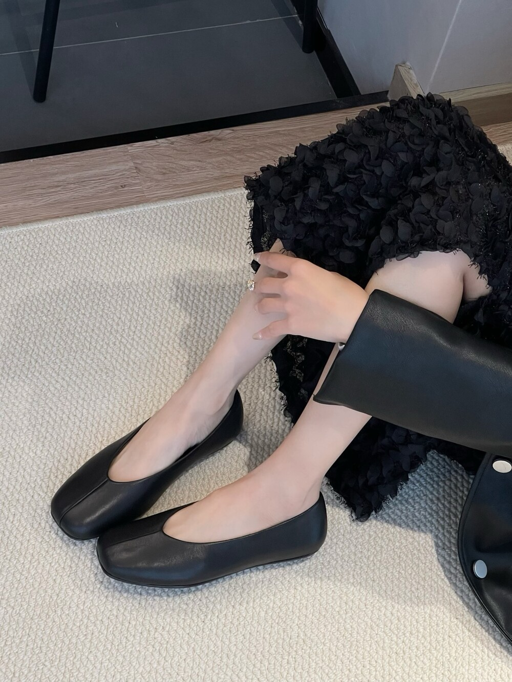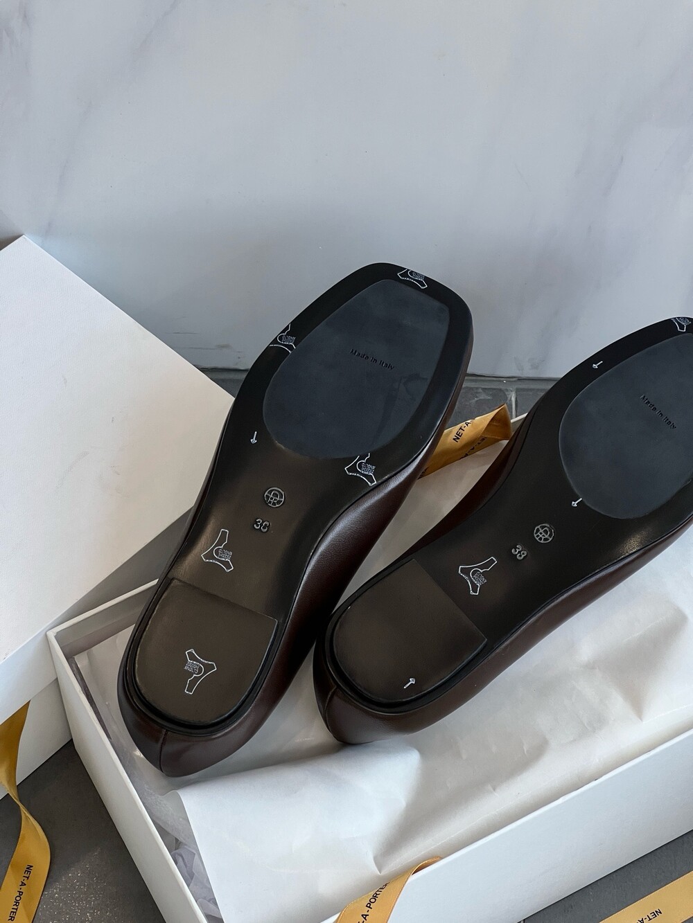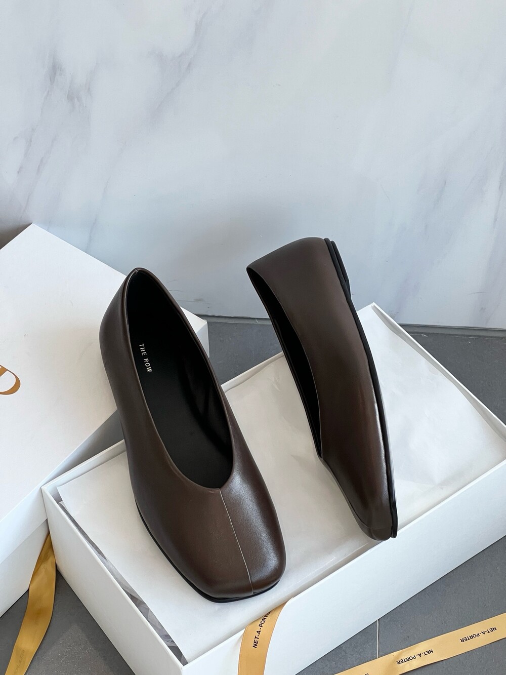 에바 투(Eva Two) 발레리나 플랫은 부드러운 나파 가죽 소재에 가벼운 가죽 밑창을 더했으며, 살짝 각진 앞코가 특징입니다.