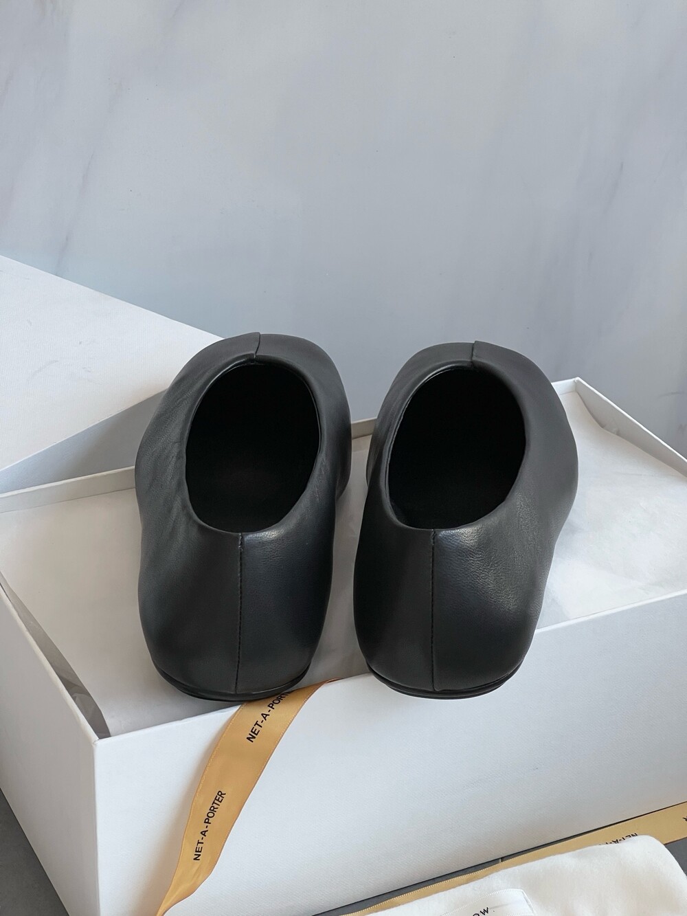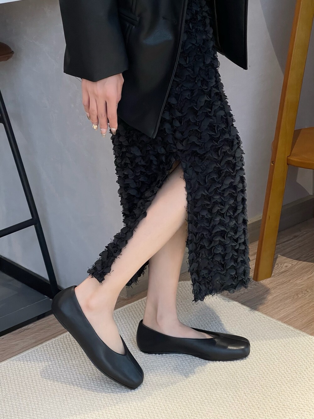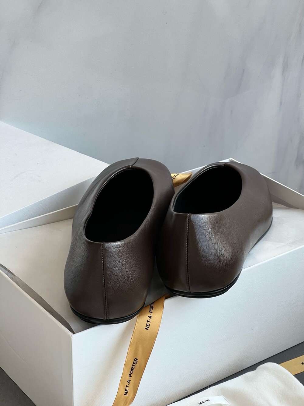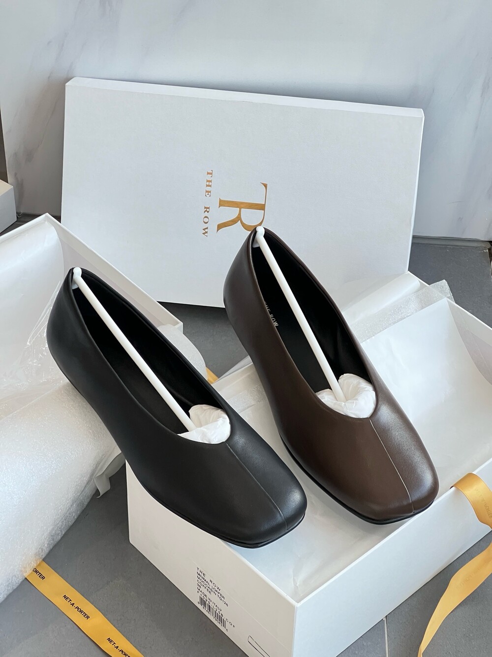 에바 투(Eva Two) 발레리나 플랫은 부드러운 나파 가죽 소재에 가벼운 가죽 밑창을 더했으며, 살짝 각진 앞코가 특징입니다.
