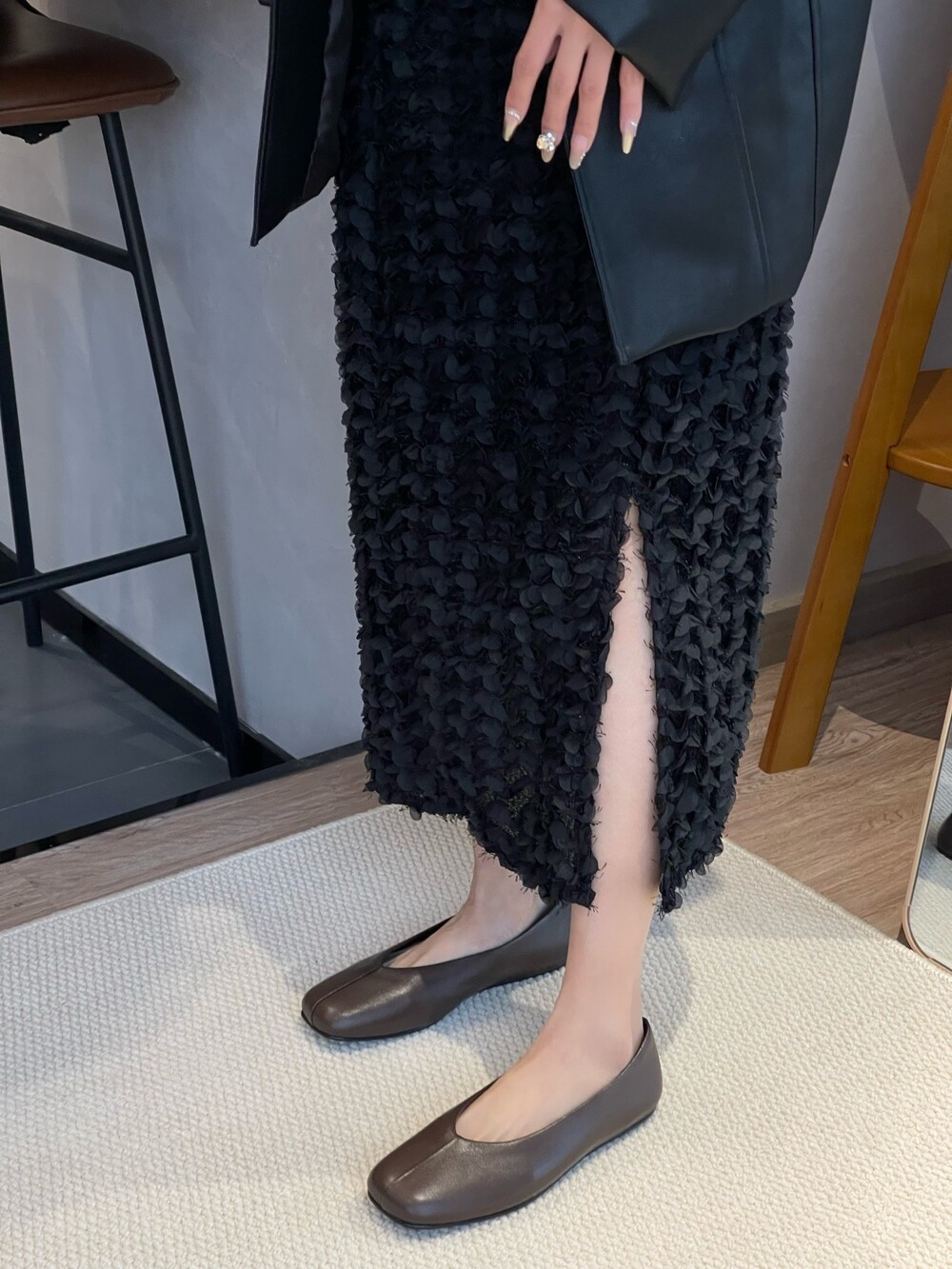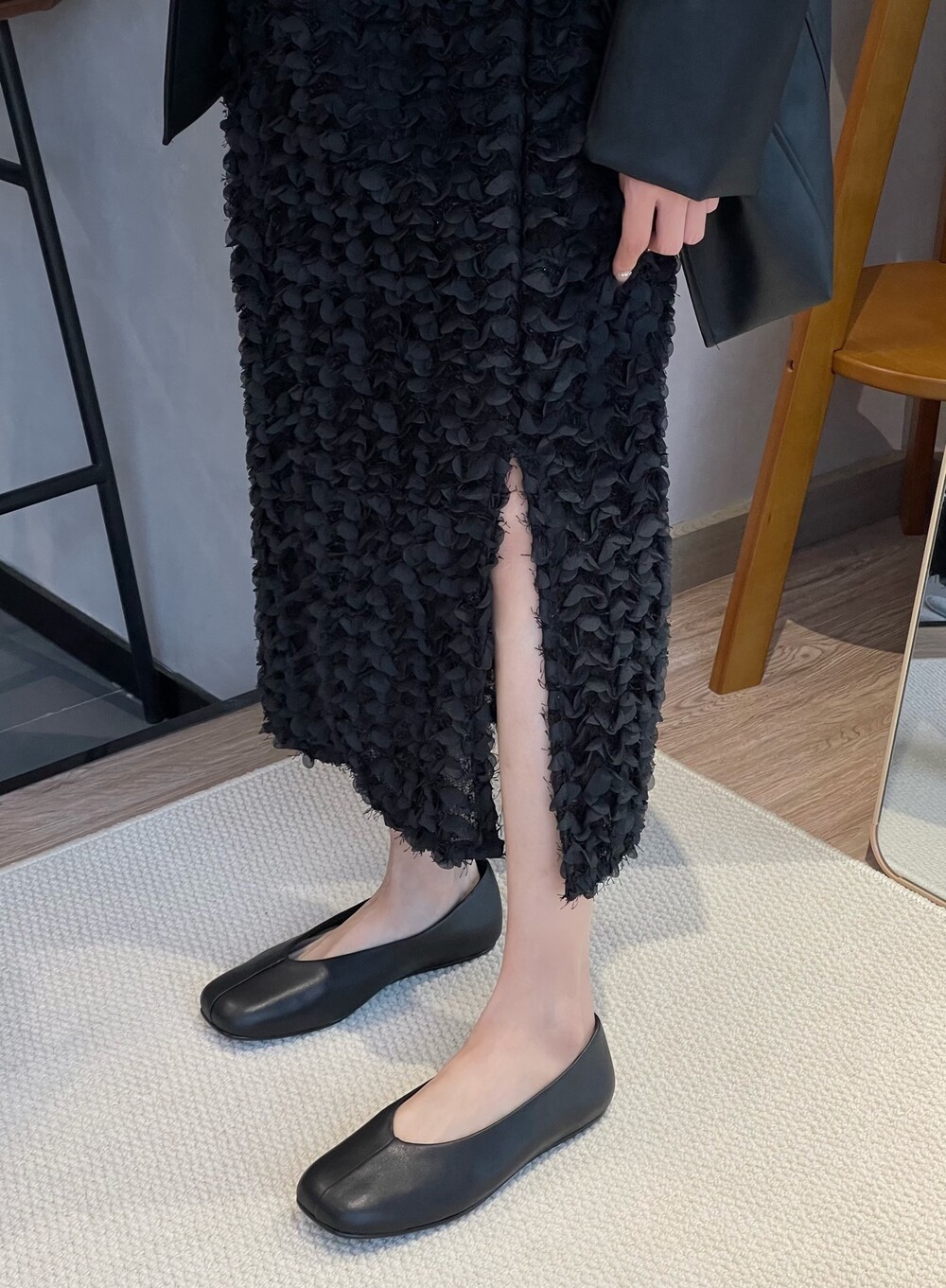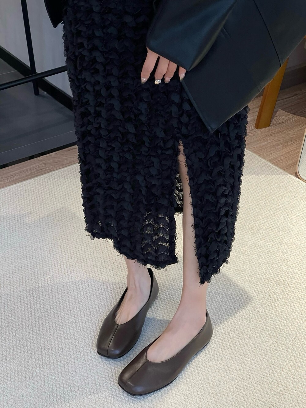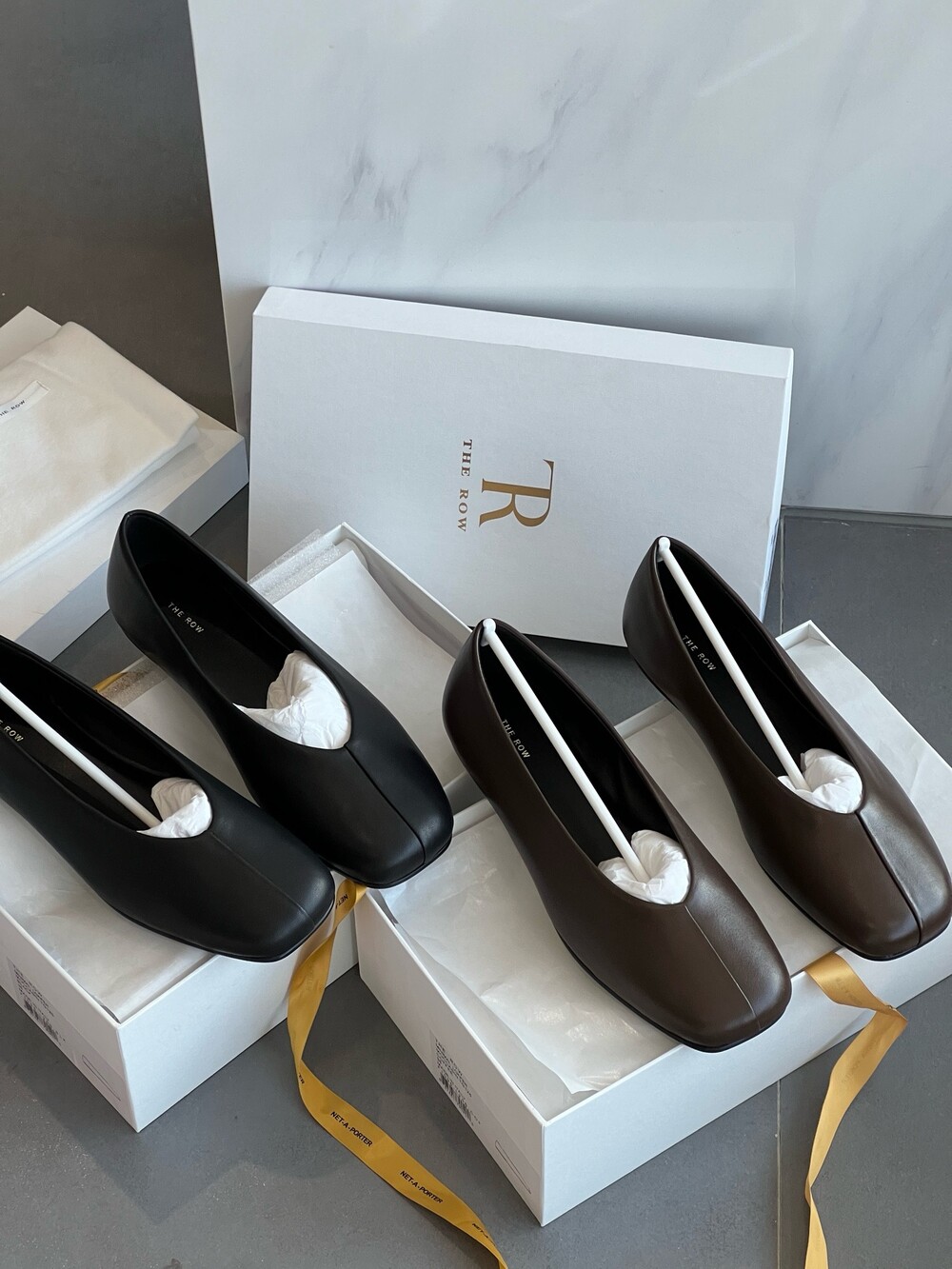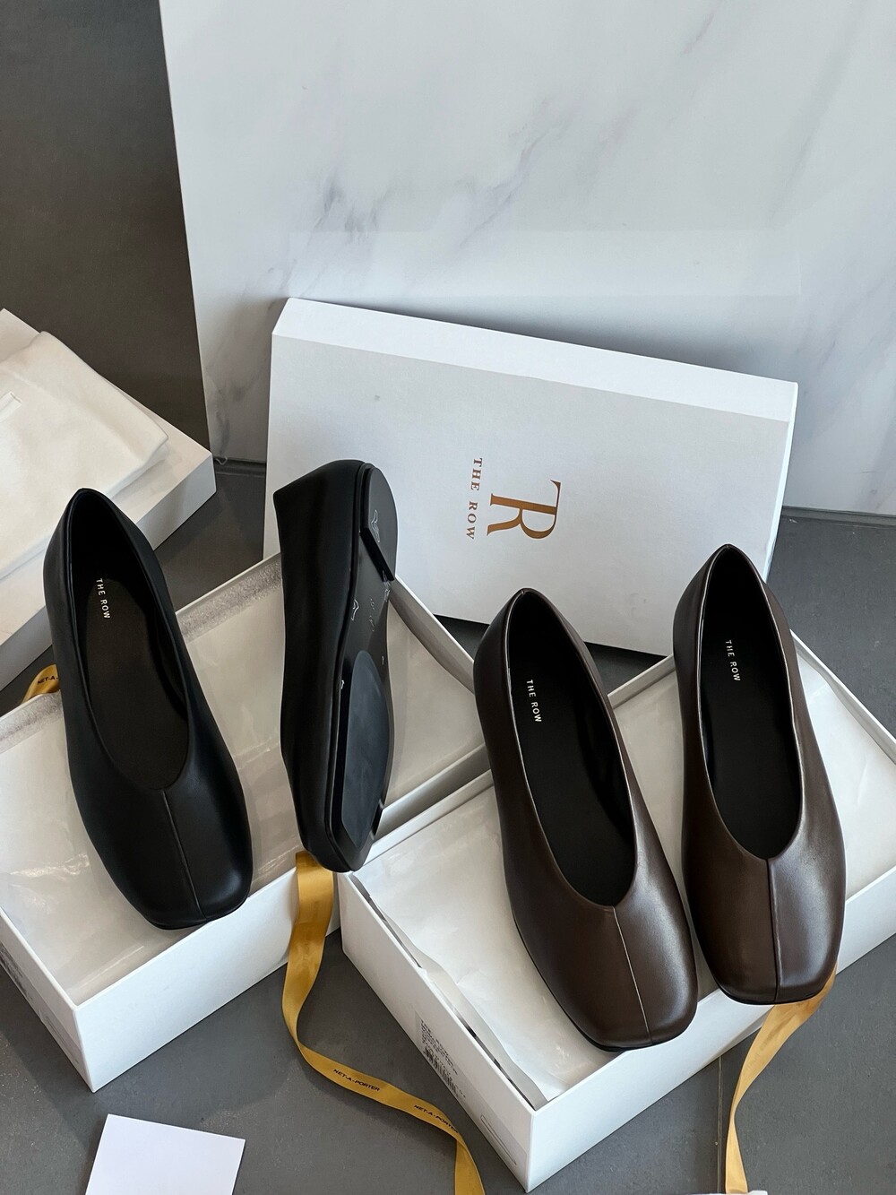 에바 투(Eva Two) 발레리나 플랫은 부드러운 나파 가죽 소재에 가벼운 가죽 밑창을 더했으며, 살짝 각진 앞코가 특징입니다.