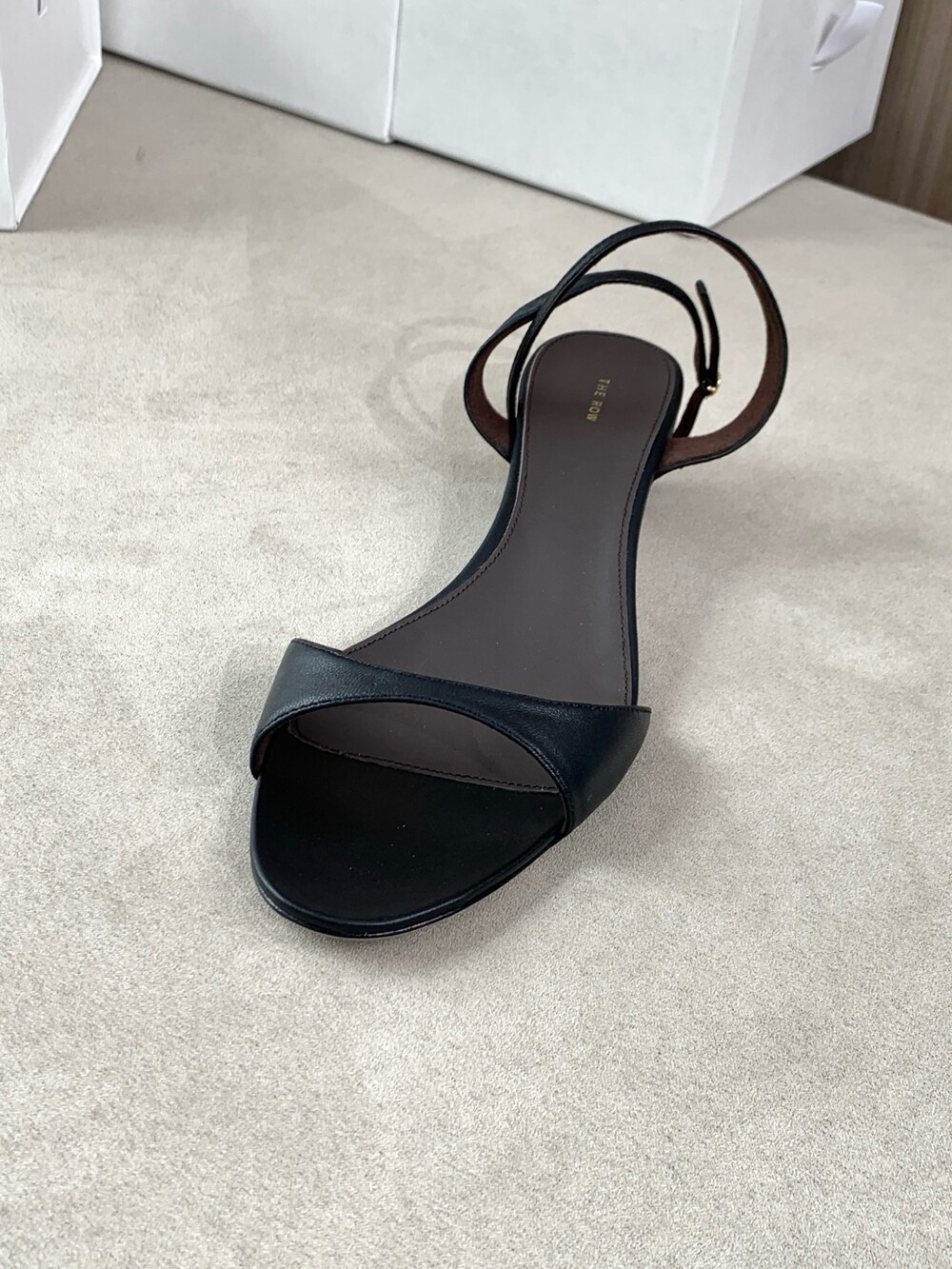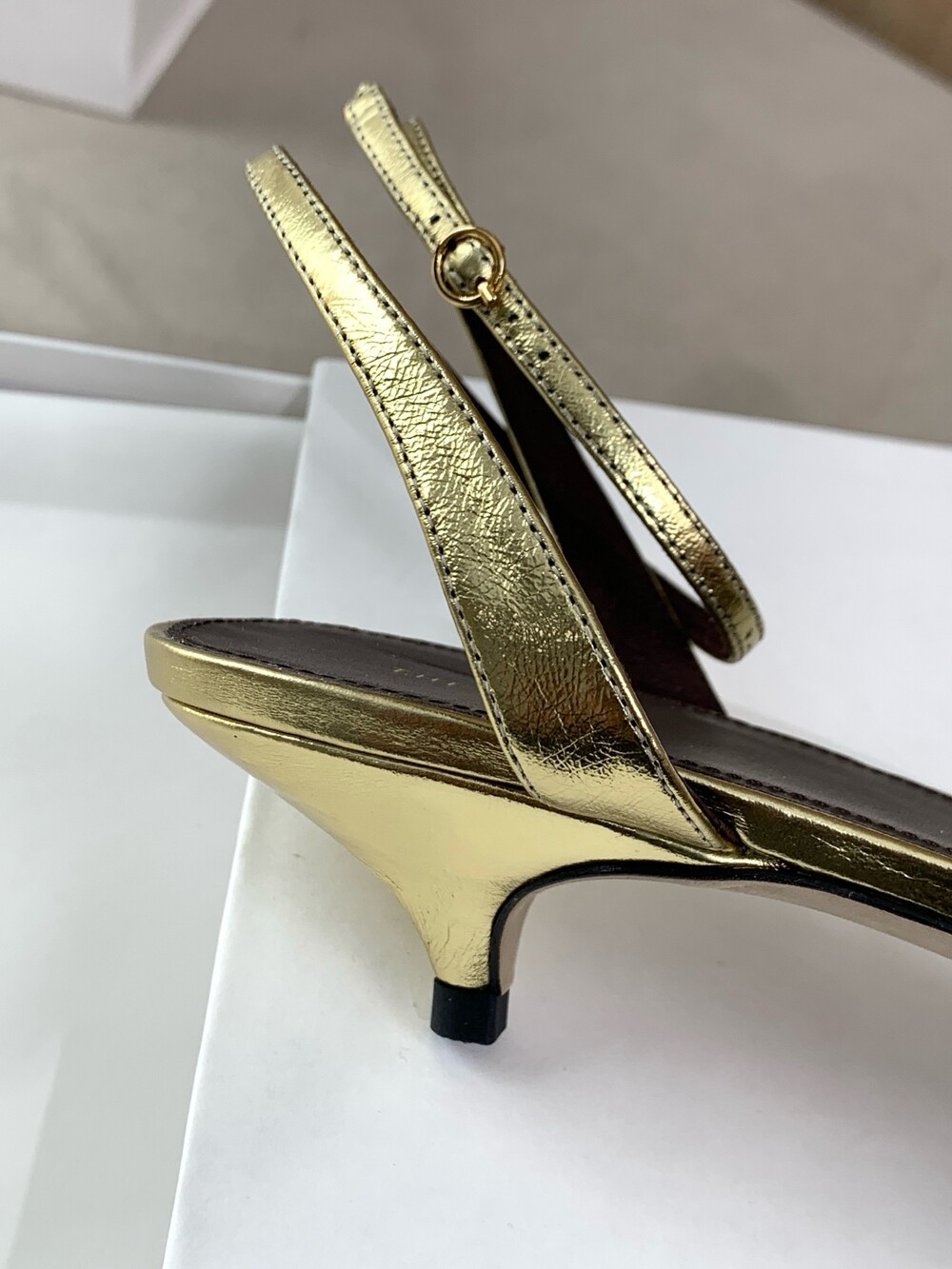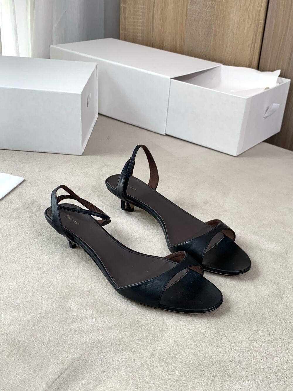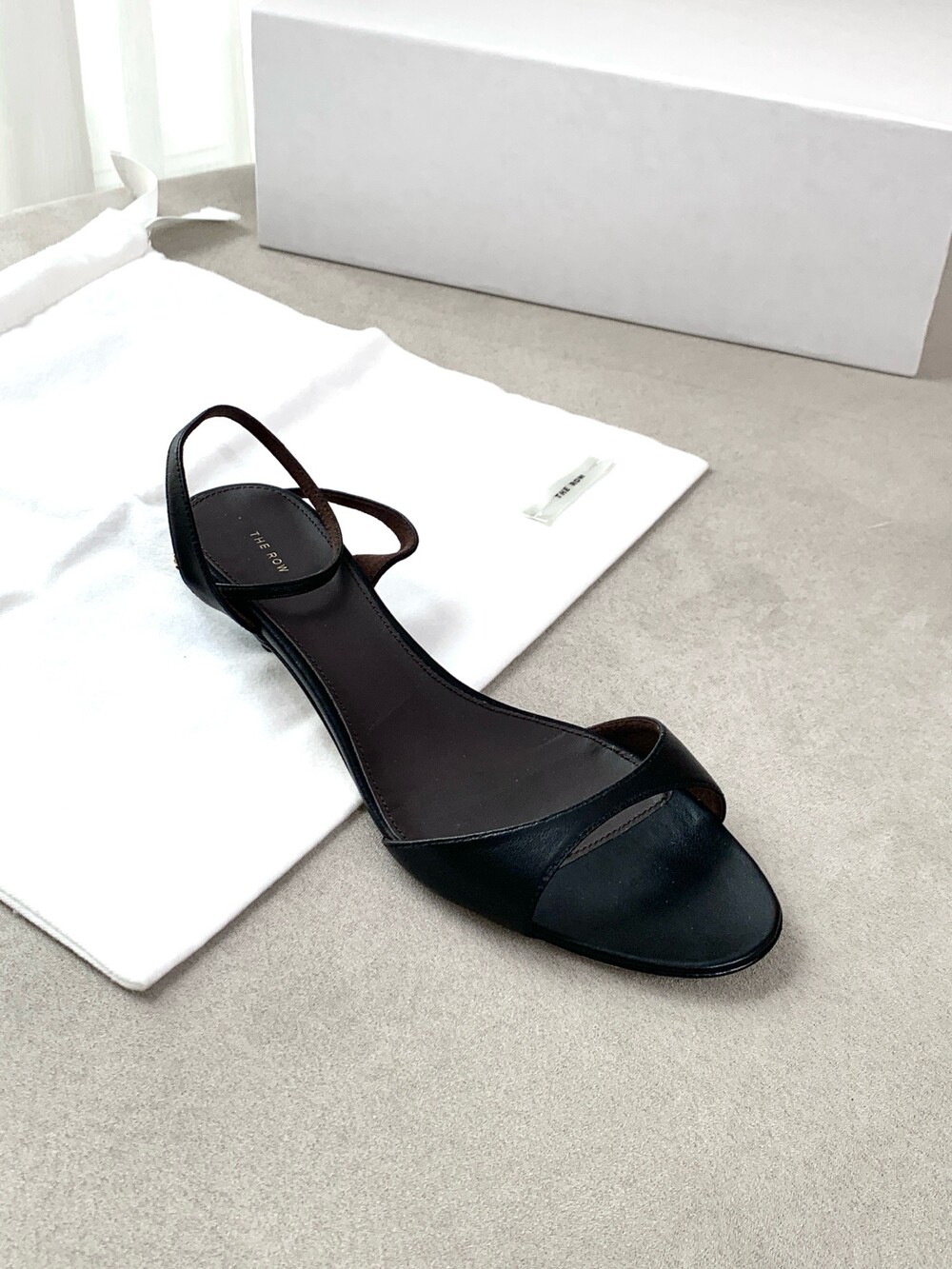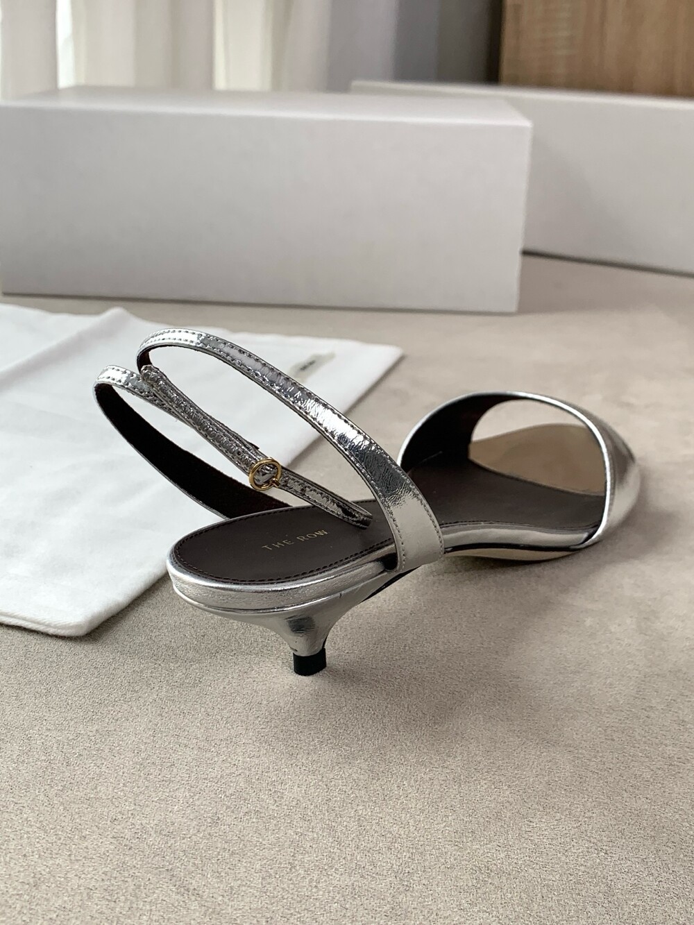 부드러운 램스킨 가죽 소재의 세련된 힐 샌들. 버클로 고정하는 섬세한 앵클 스트랩 및 테이퍼드 힐.