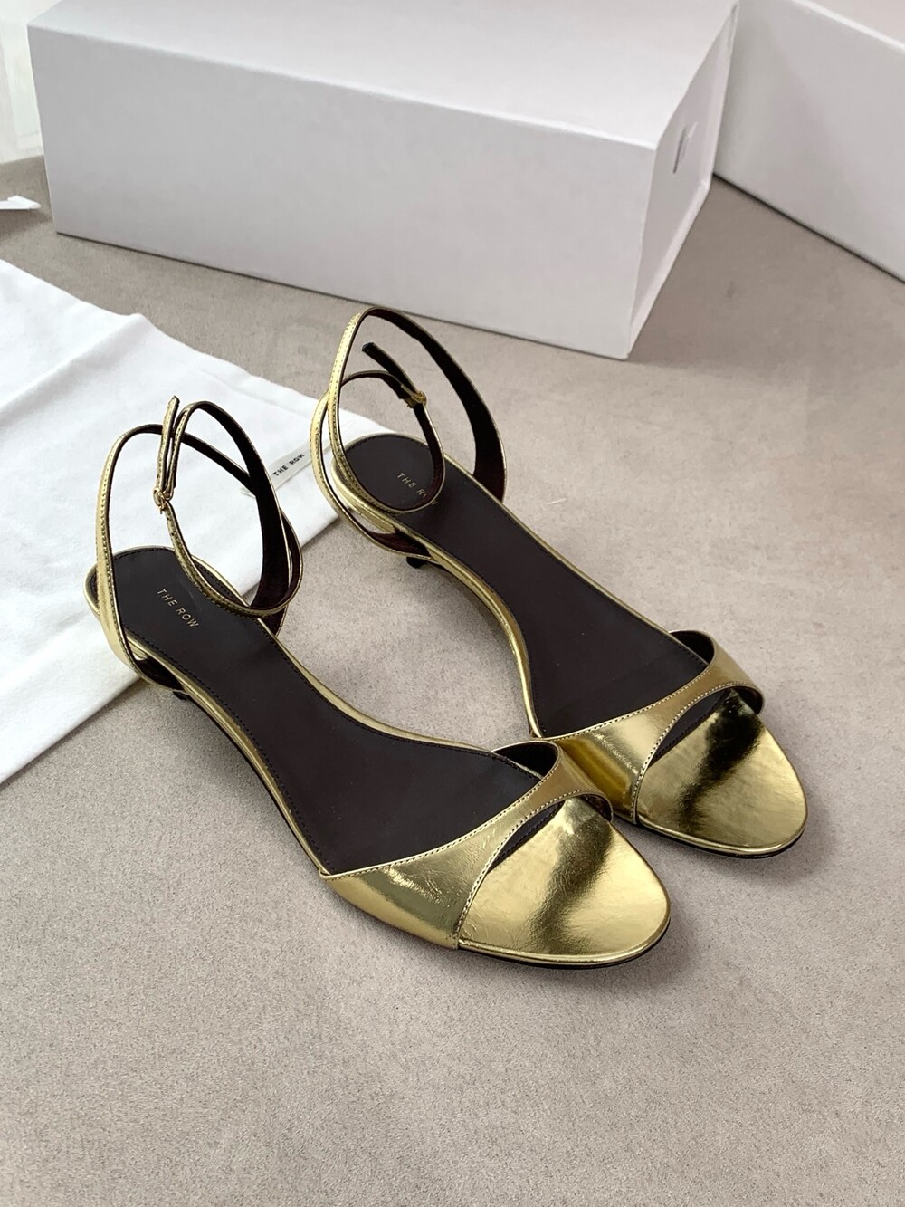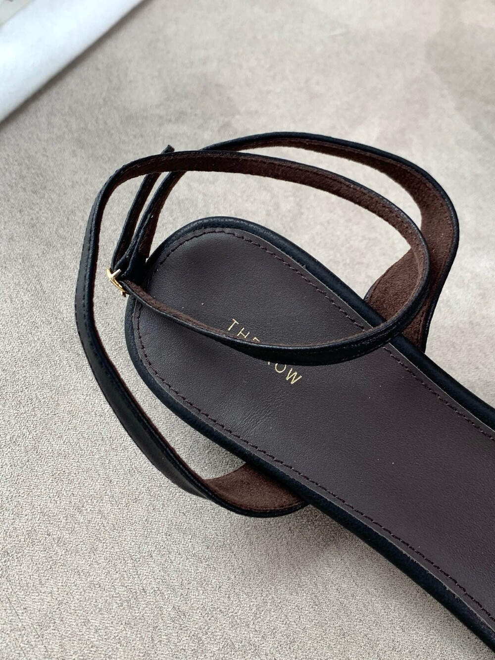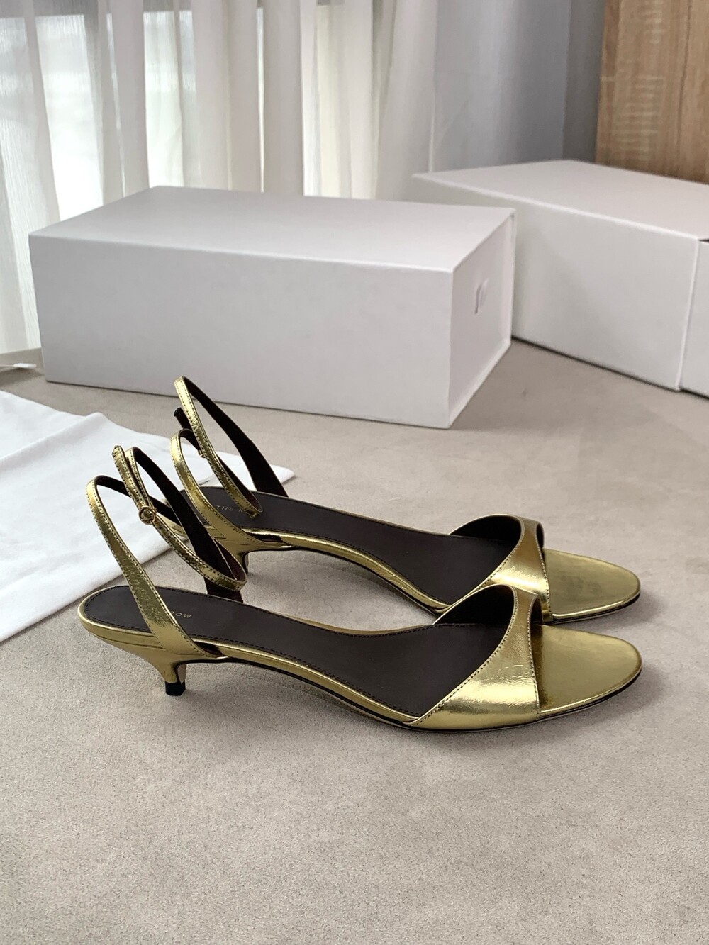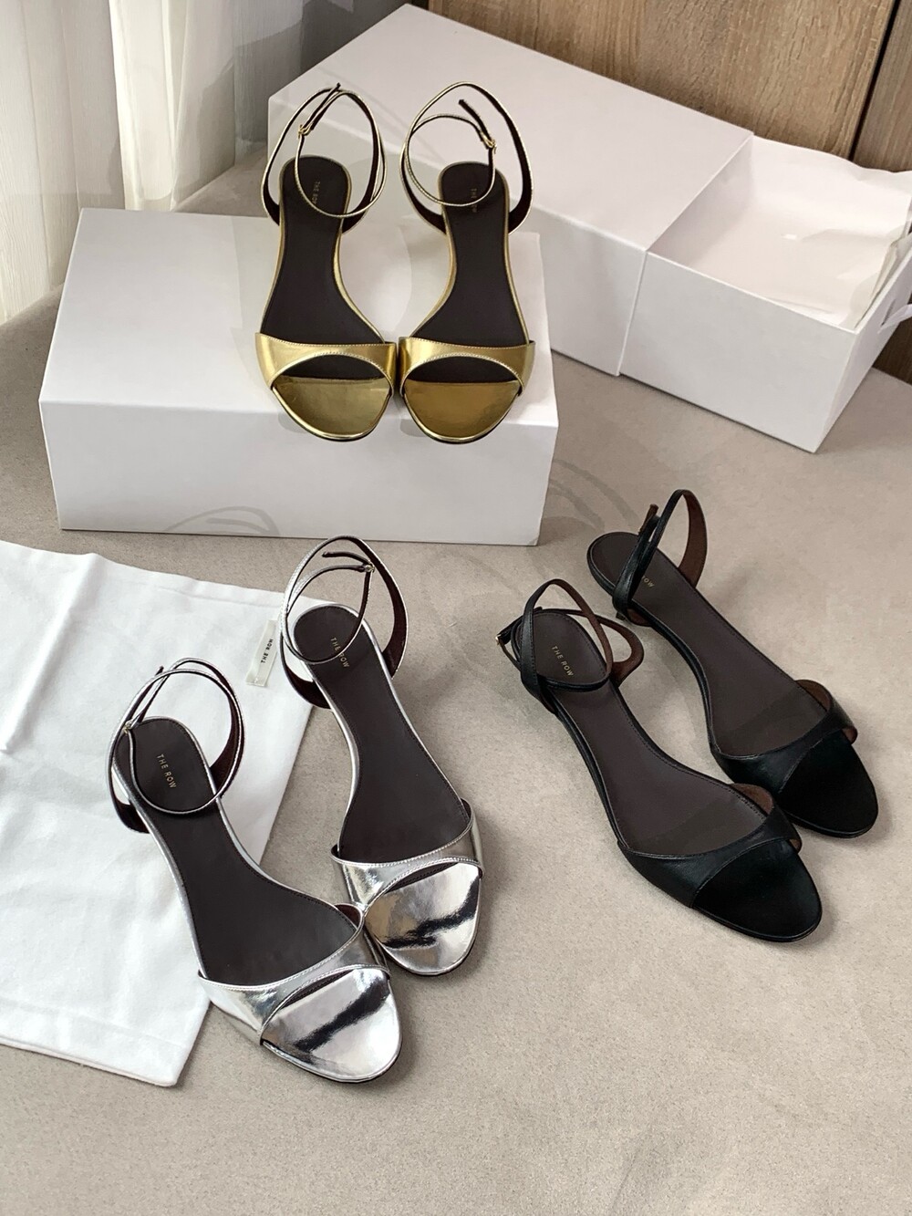 부드러운 램스킨 가죽 소재의 세련된 힐 샌들. 버클로 고정하는 섬세한 앵클 스트랩 및 테이퍼드 힐.