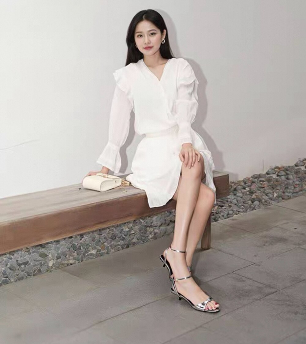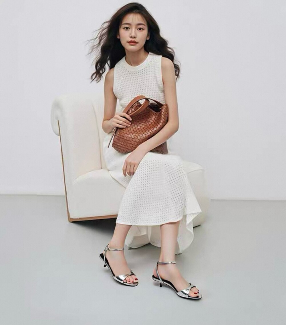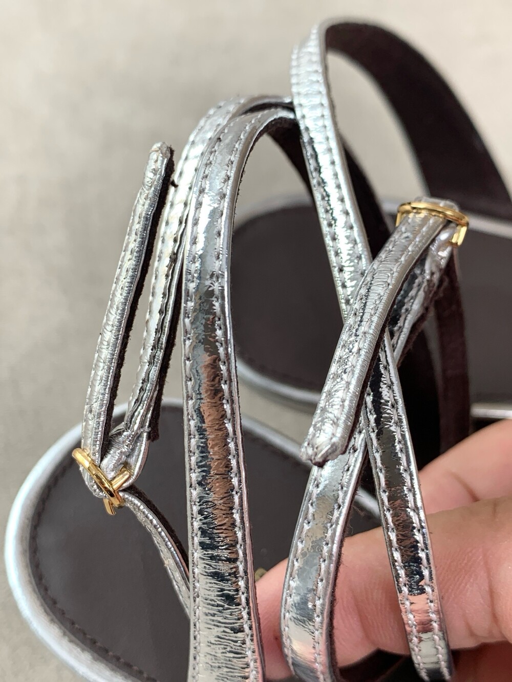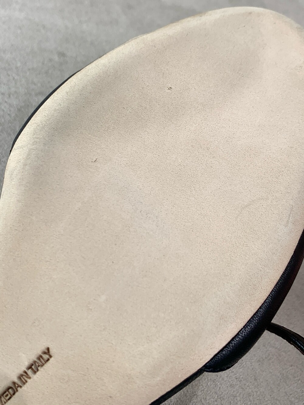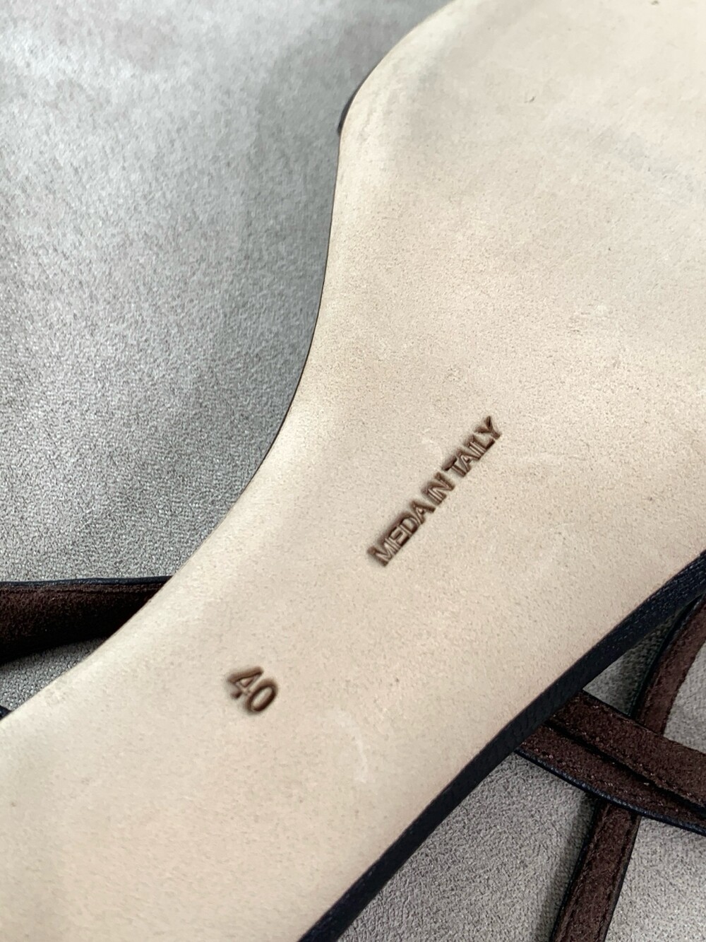 부드러운 램스킨 가죽 소재의 세련된 힐 샌들. 버클로 고정하는 섬세한 앵클 스트랩 및 테이퍼드 힐.