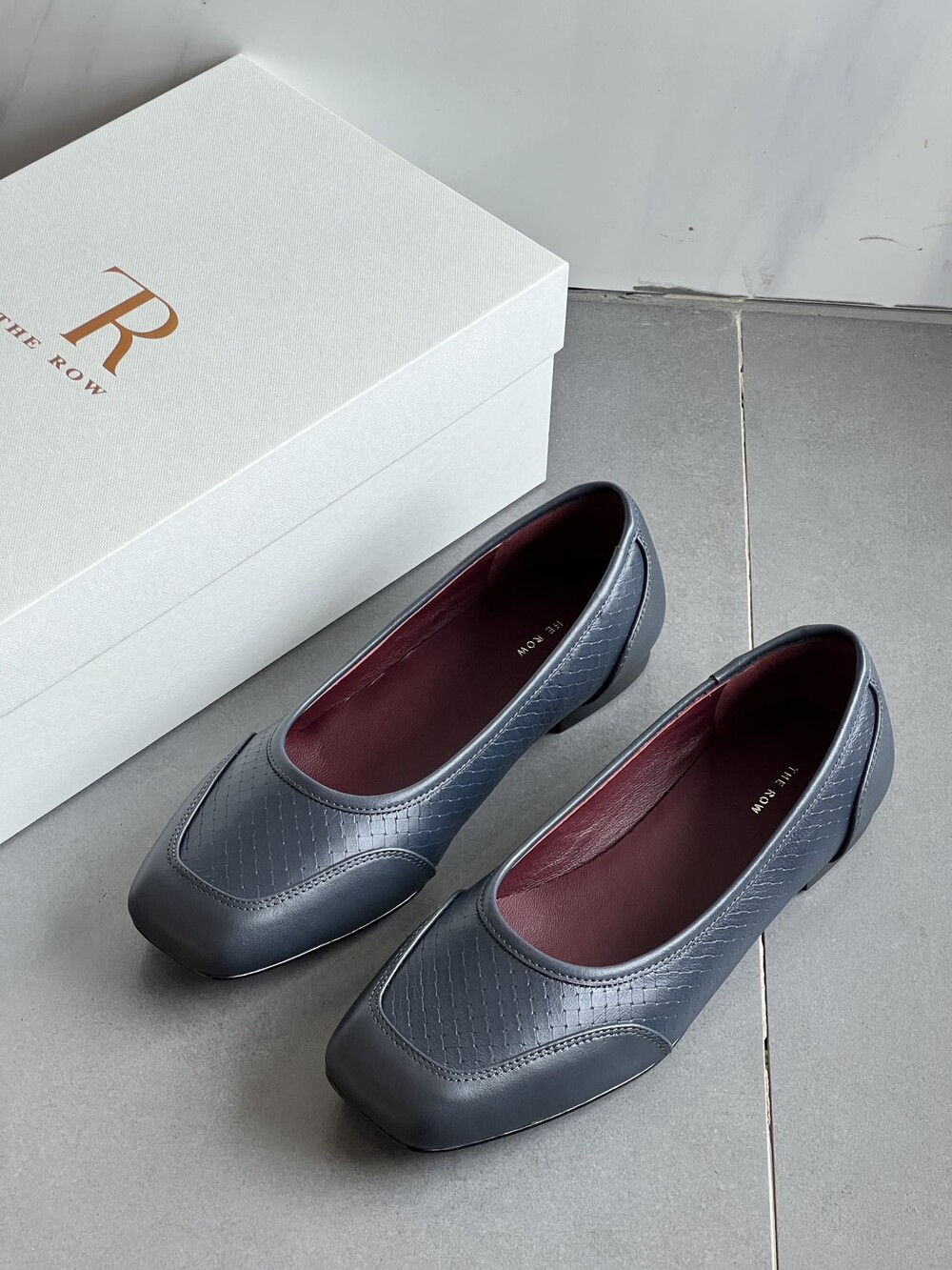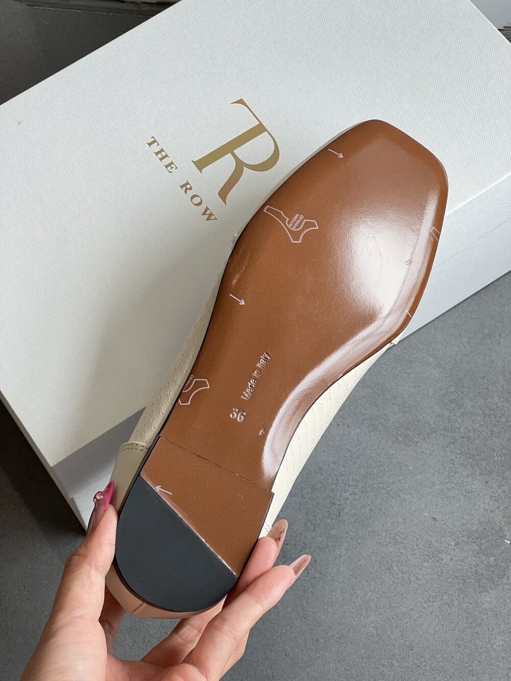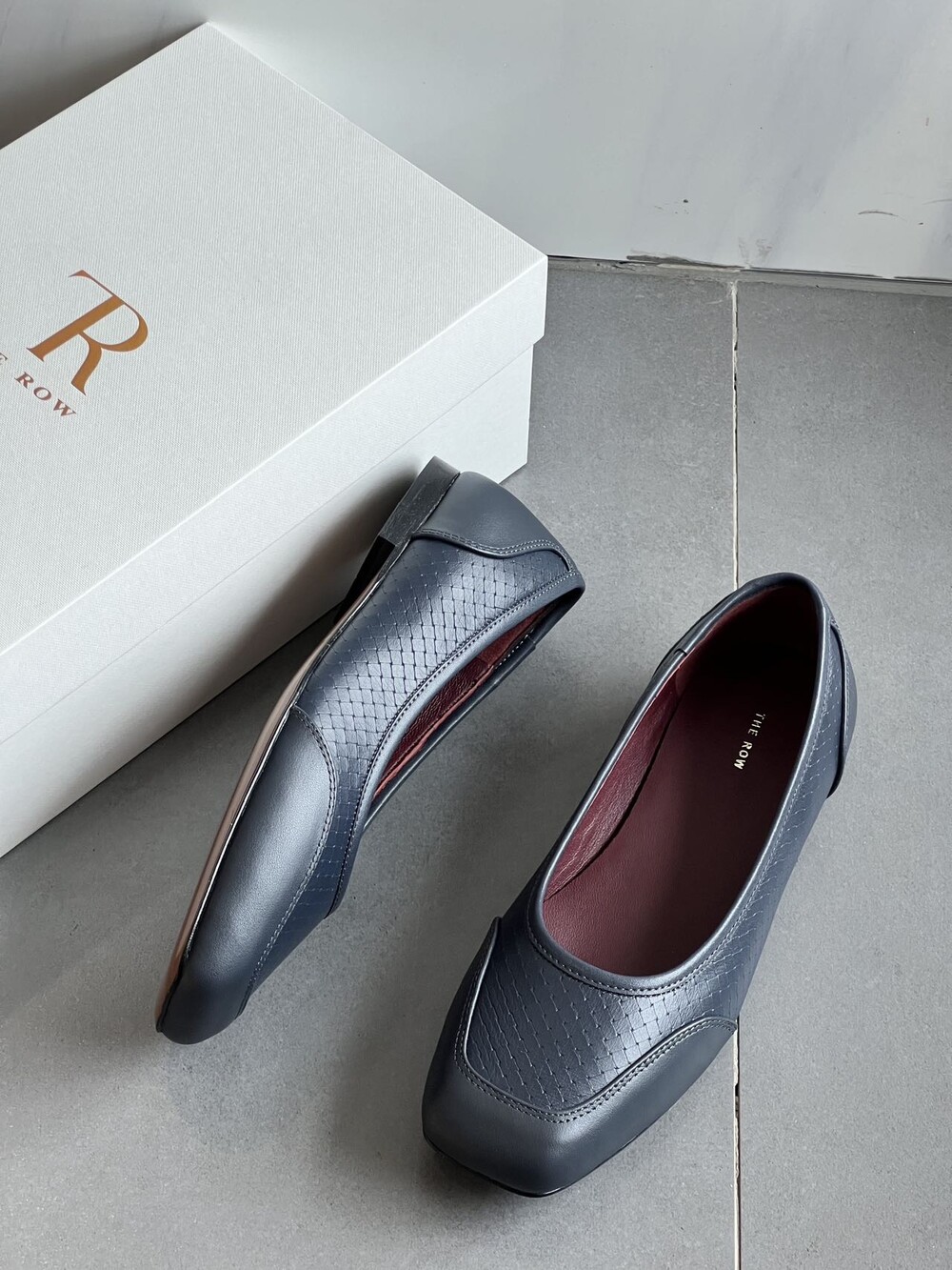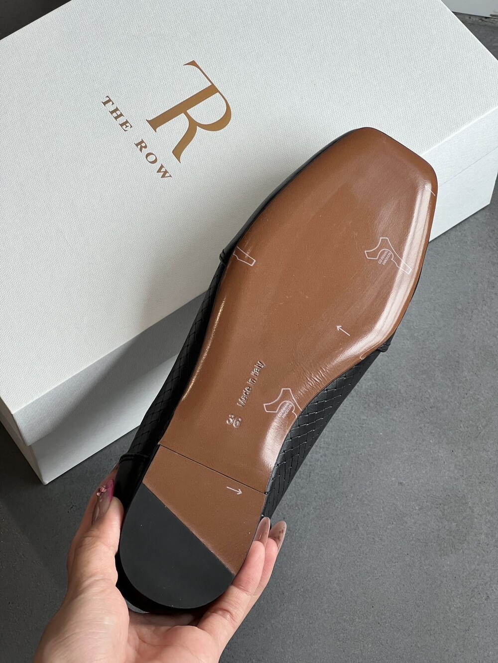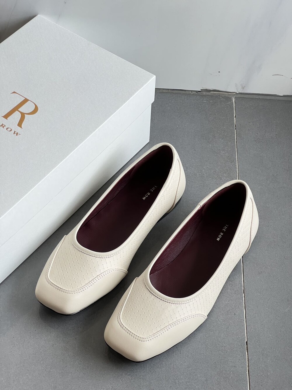 앞코와 옆면에 섬세한 마름모꼴(다이아몬드) 위빙 엠보싱 처리가 되어 있어있습니다. 밋밋한 프린팅이 아니라 입체적인 텍스처라서 디자인 포인트가 되면서도 과하지 않아, 더 로우 특유의 미니멀한 고급스러움을 느끼실 수 있습니다.