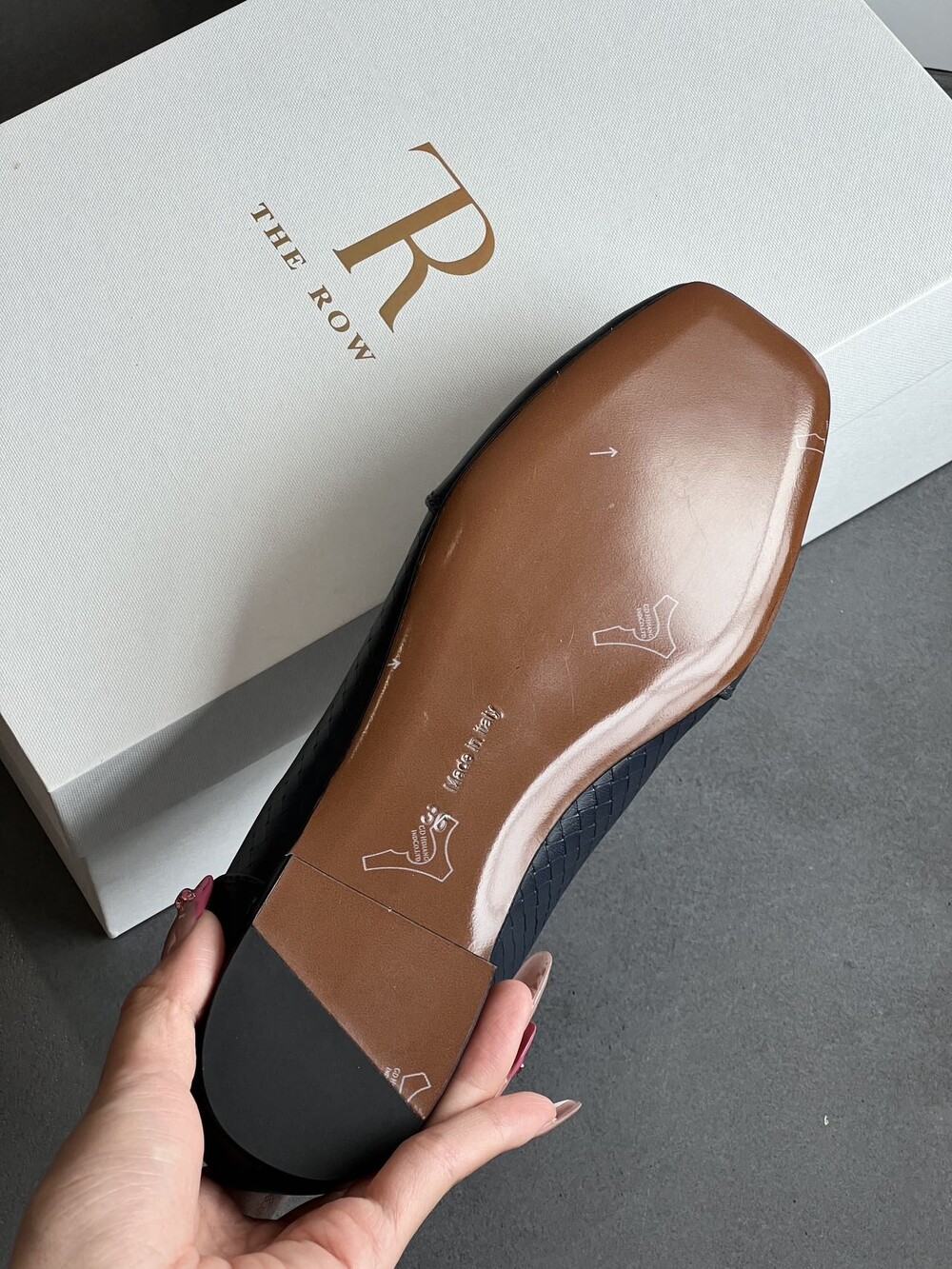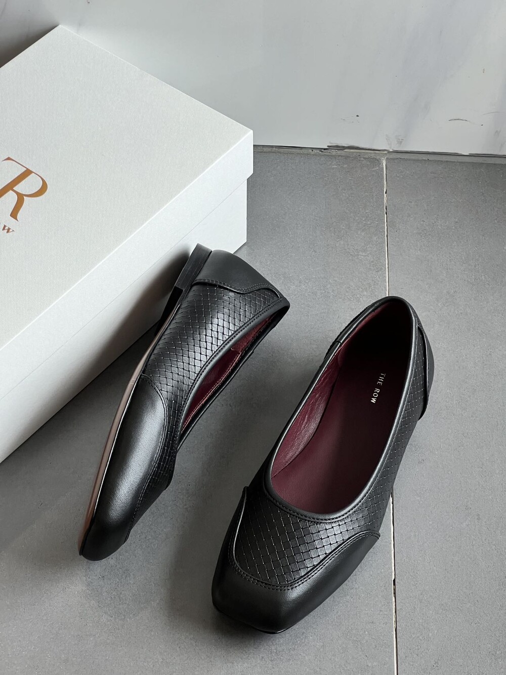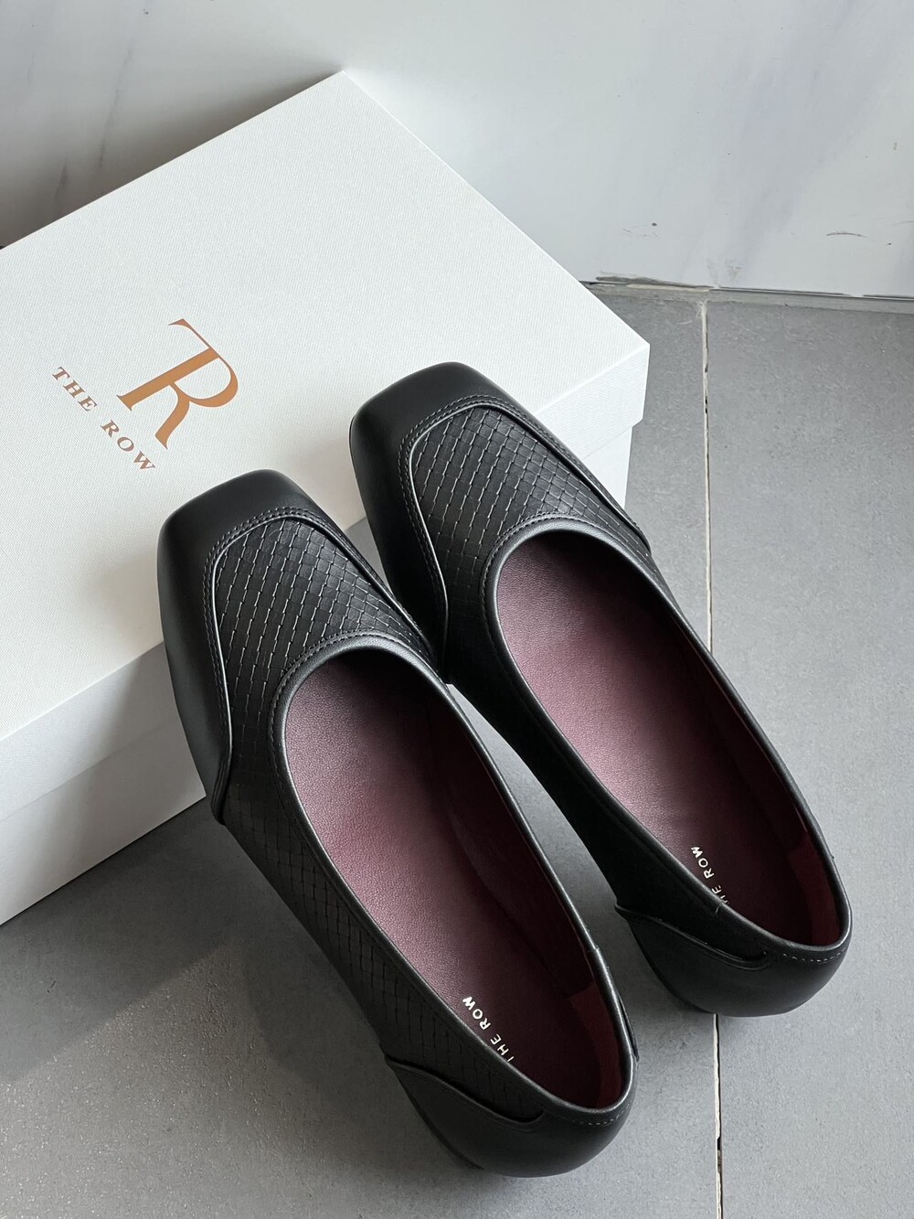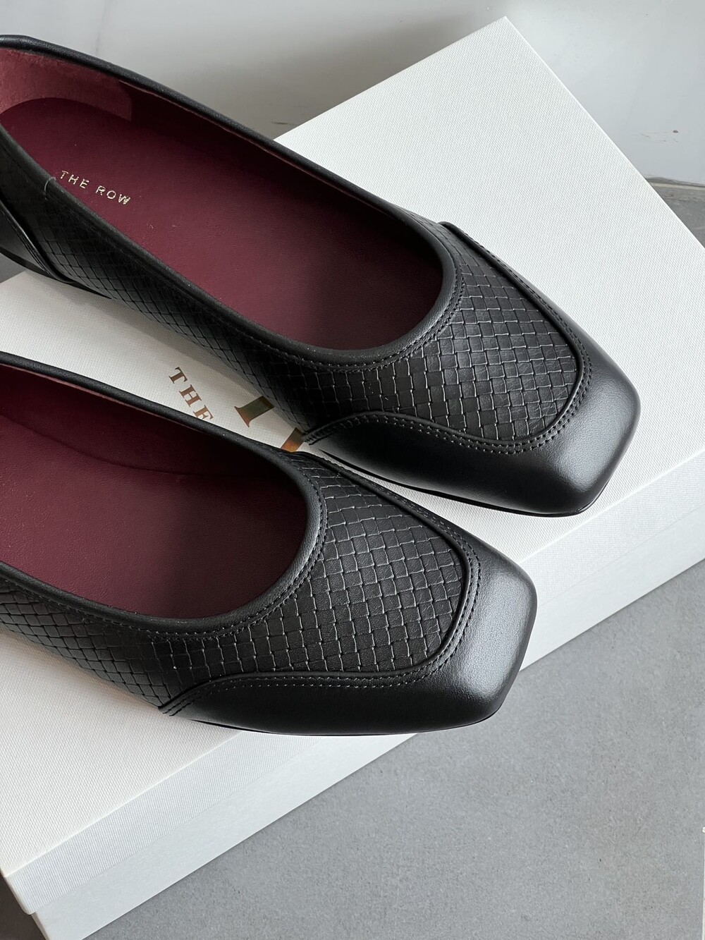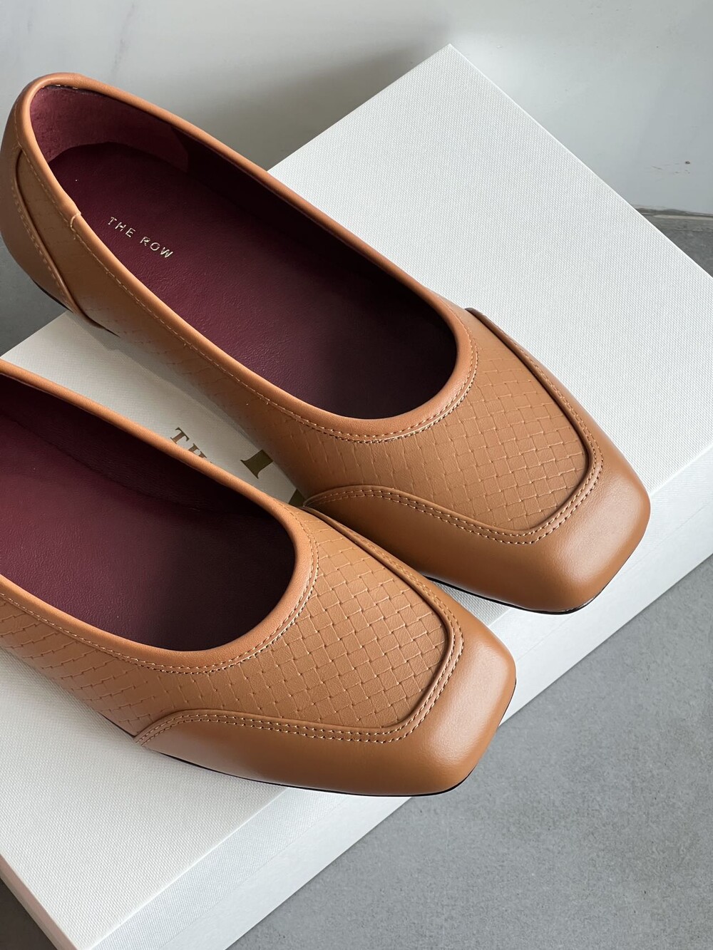 앞코와 옆면에 섬세한 마름모꼴(다이아몬드) 위빙 엠보싱 처리가 되어 있어있습니다. 밋밋한 프린팅이 아니라 입체적인 텍스처라서 디자인 포인트가 되면서도 과하지 않아, 더 로우 특유의 미니멀한 고급스러움을 느끼실 수 있습니다.