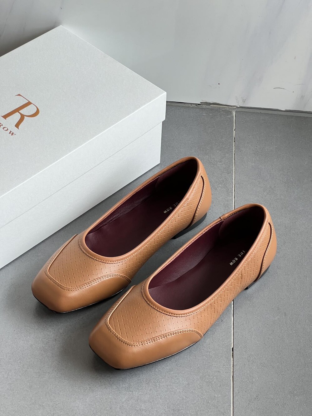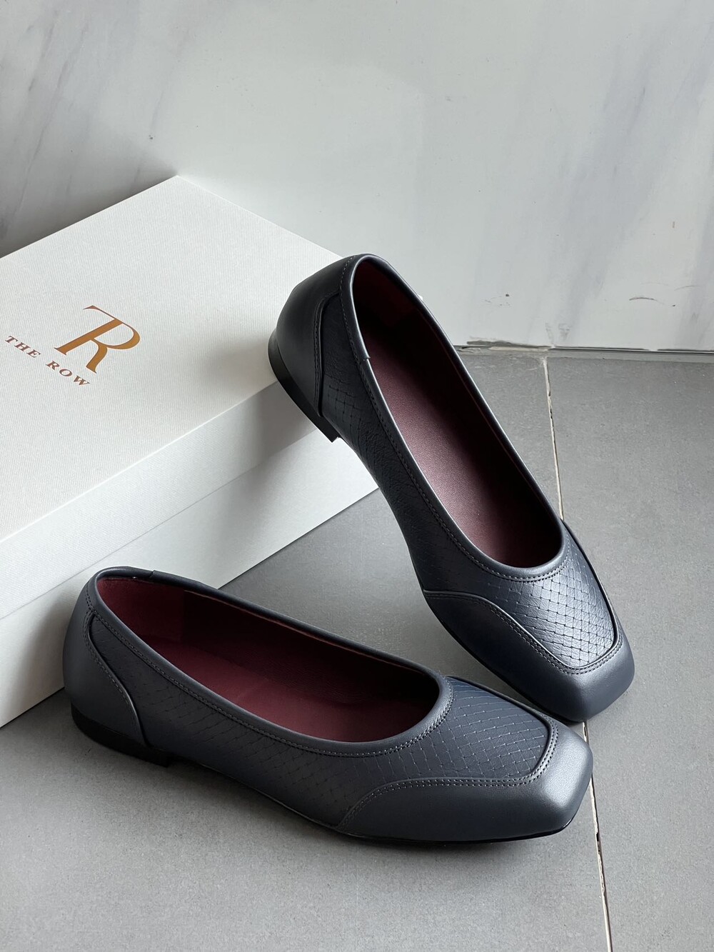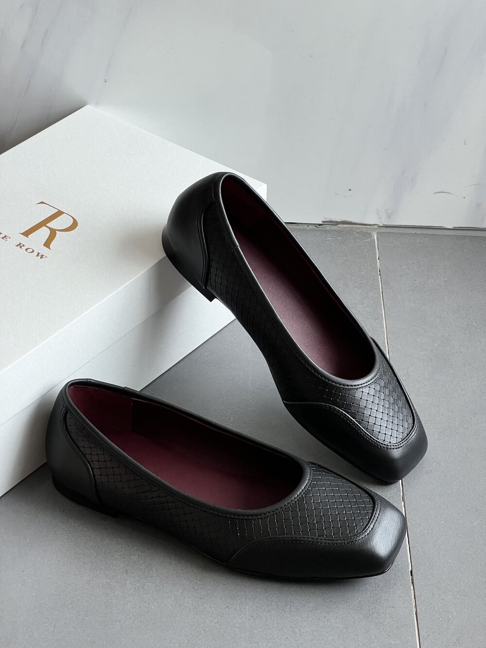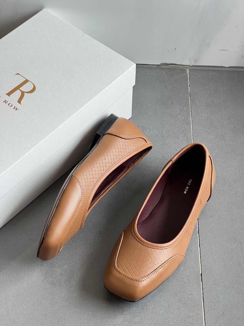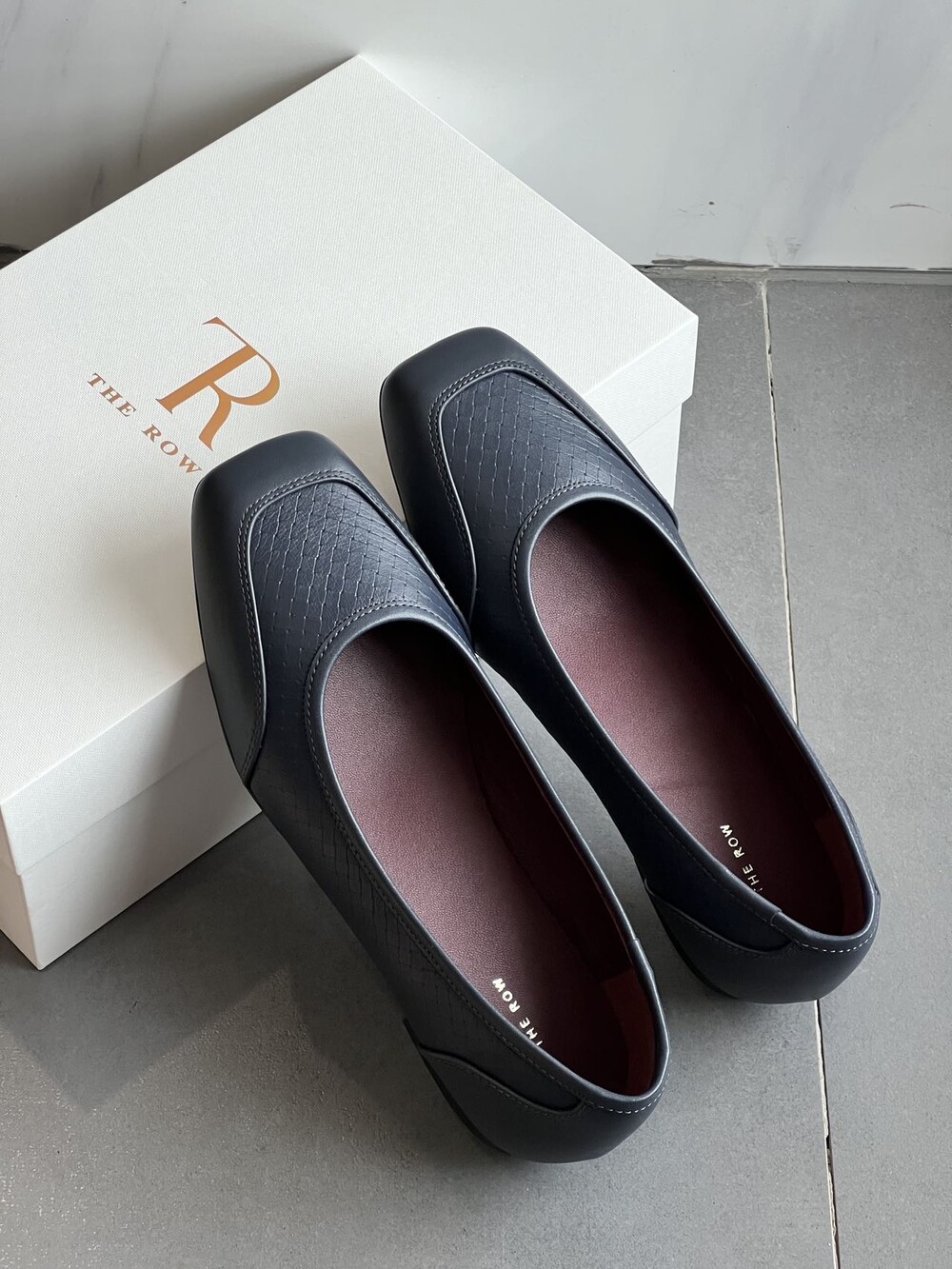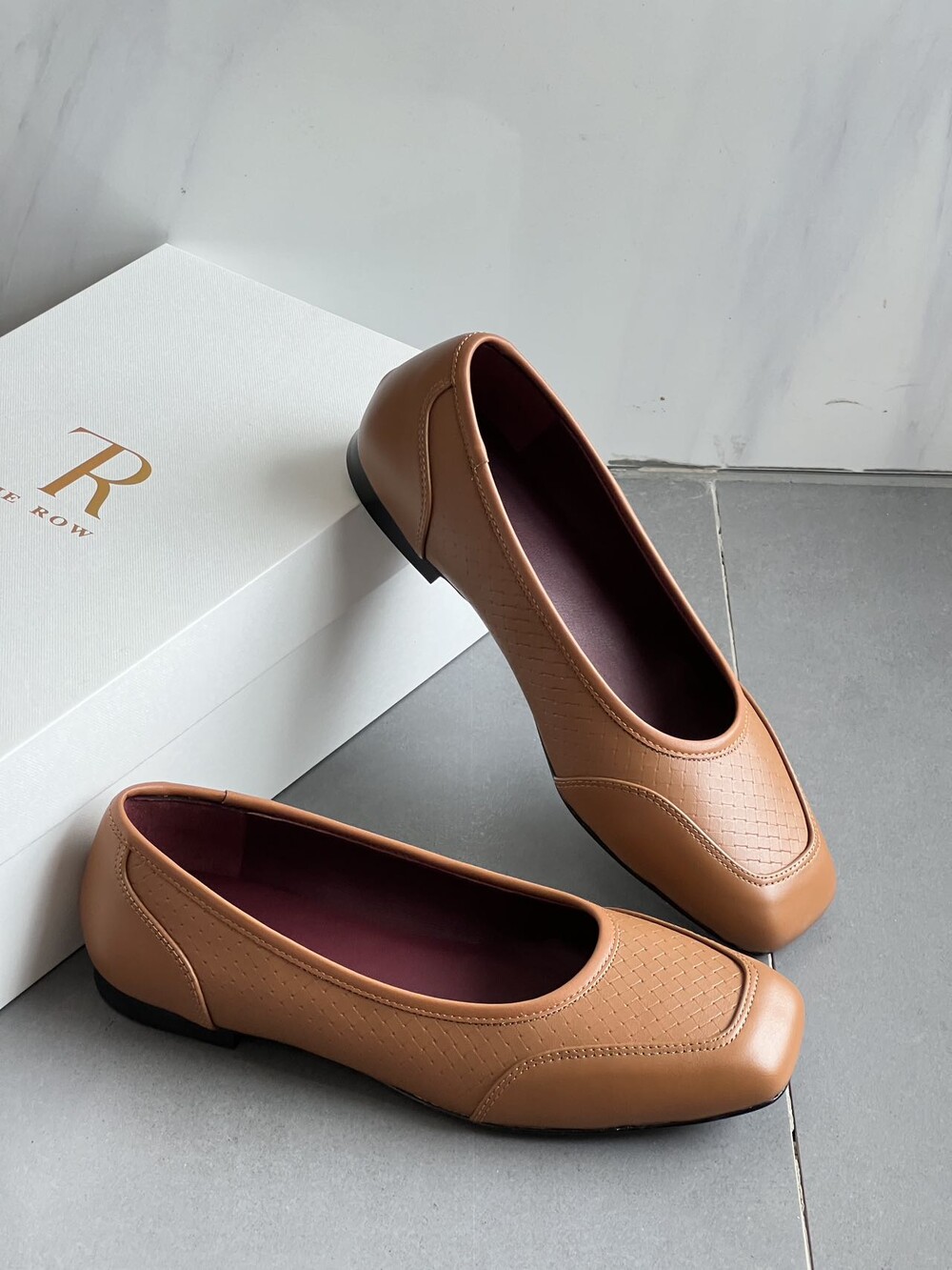 앞코와 옆면에 섬세한 마름모꼴(다이아몬드) 위빙 엠보싱 처리가 되어 있어있습니다. 밋밋한 프린팅이 아니라 입체적인 텍스처라서 디자인 포인트가 되면서도 과하지 않아, 더 로우 특유의 미니멀한 고급스러움을 느끼실 수 있습니다.