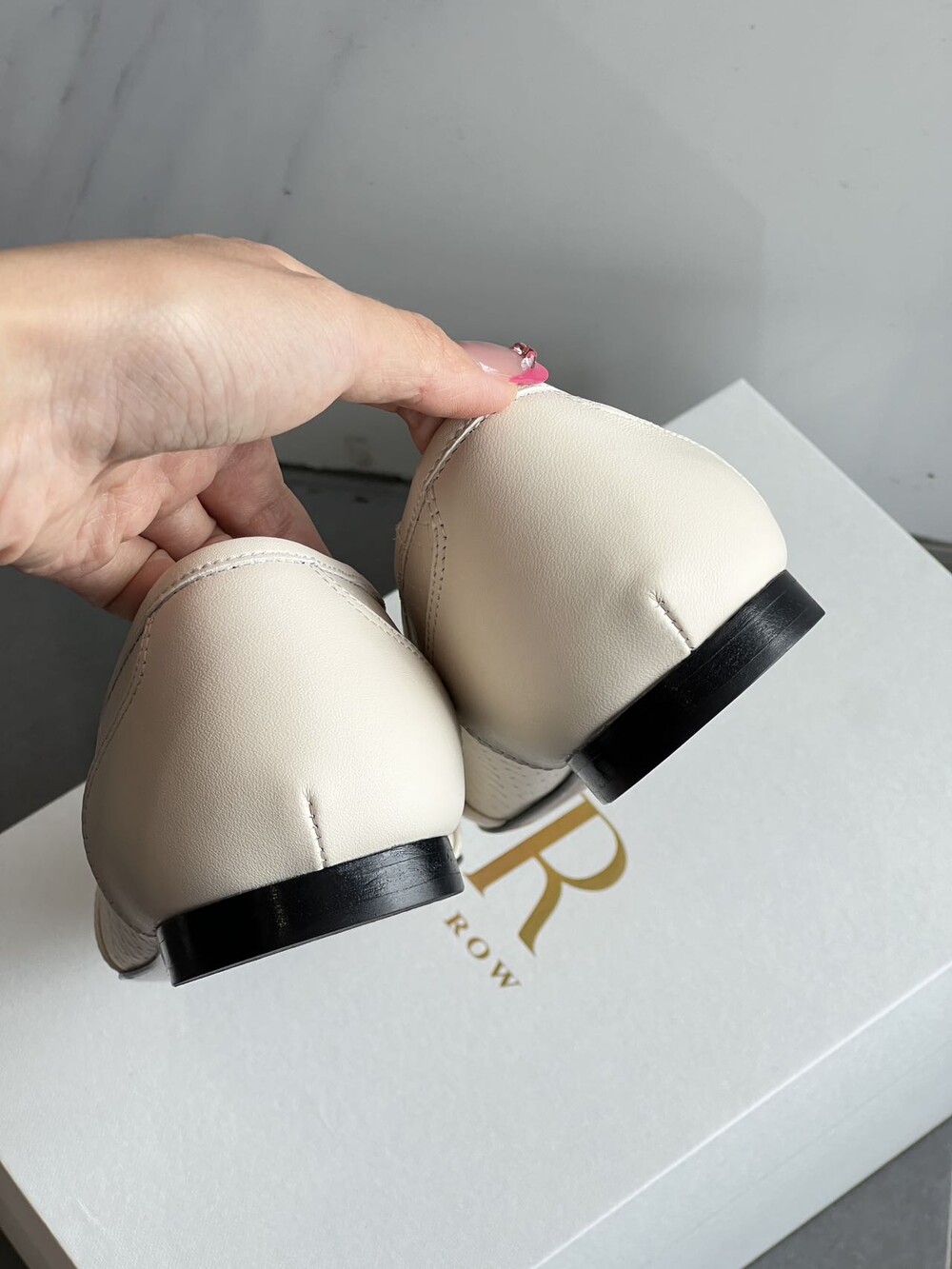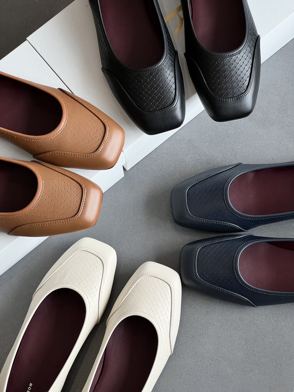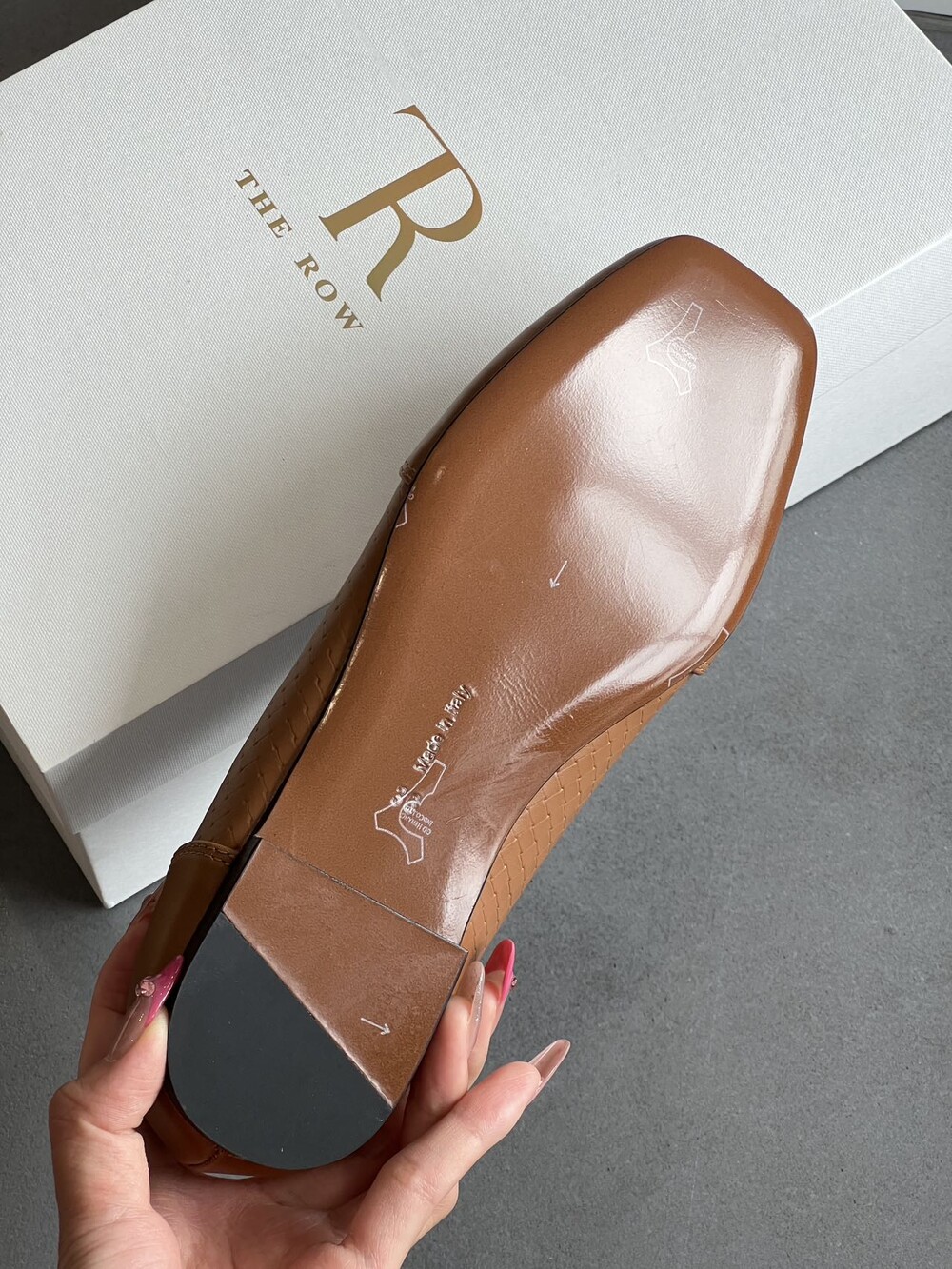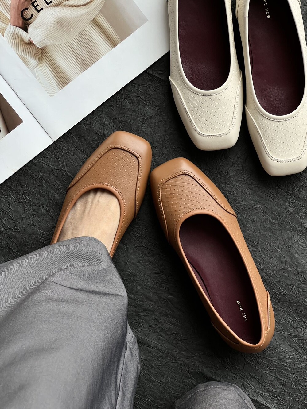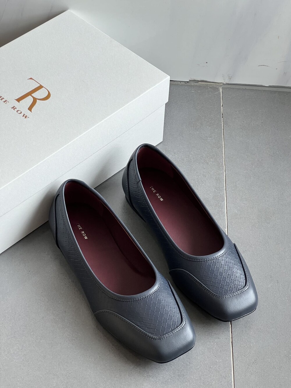 앞코와 옆면에 섬세한 마름모꼴(다이아몬드) 위빙 엠보싱 처리가 되어 있어있습니다. 밋밋한 프린팅이 아니라 입체적인 텍스처라서 디자인 포인트가 되면서도 과하지 않아, 더 로우 특유의 미니멀한 고급스러움을 느끼실 수 있습니다.