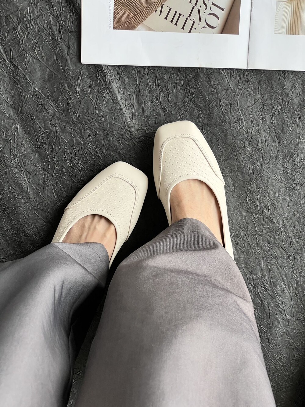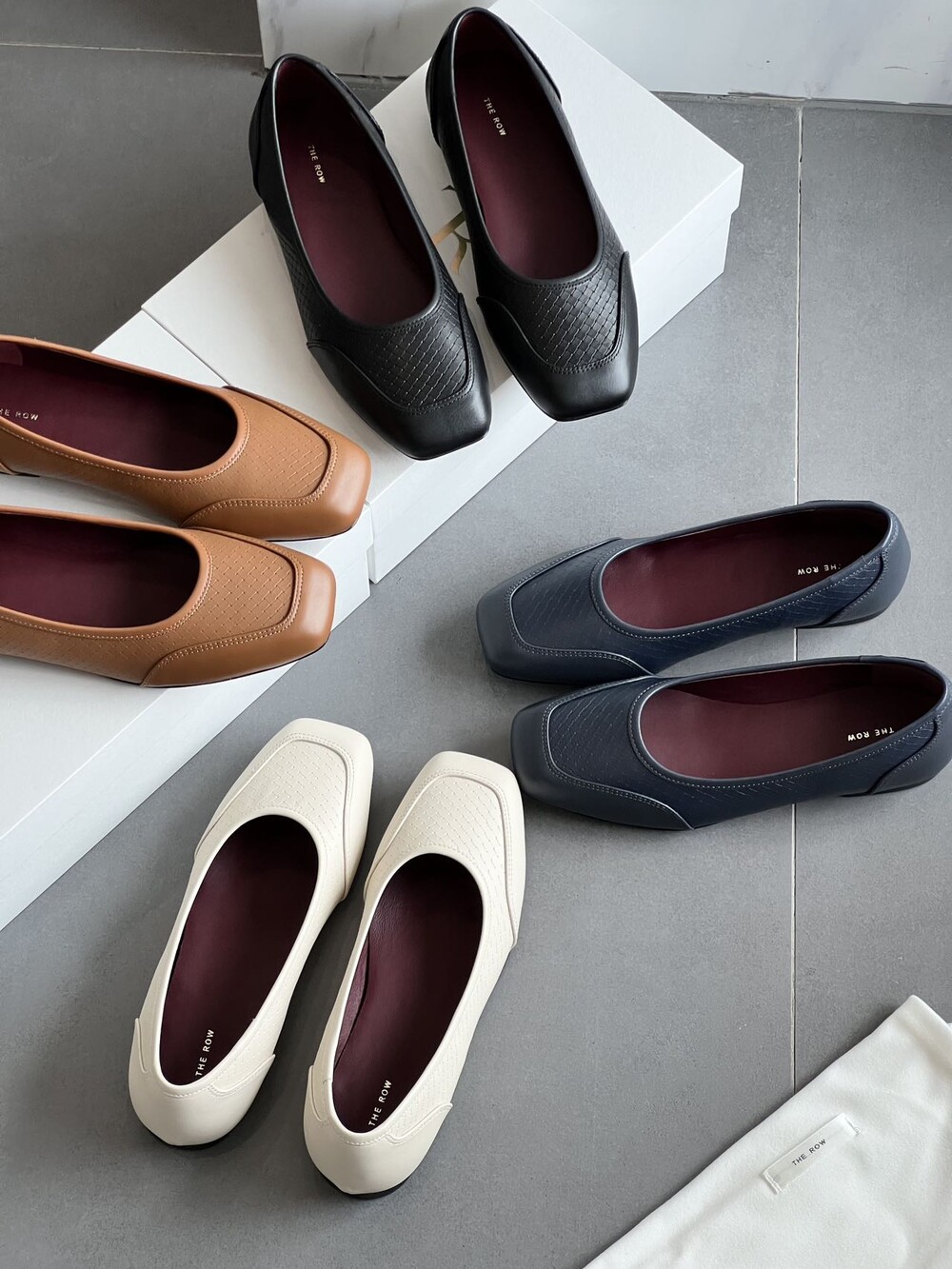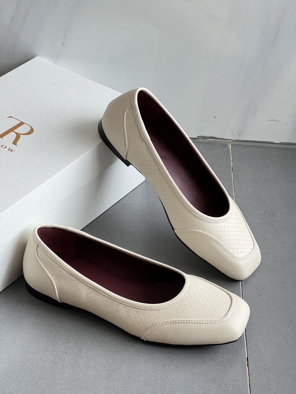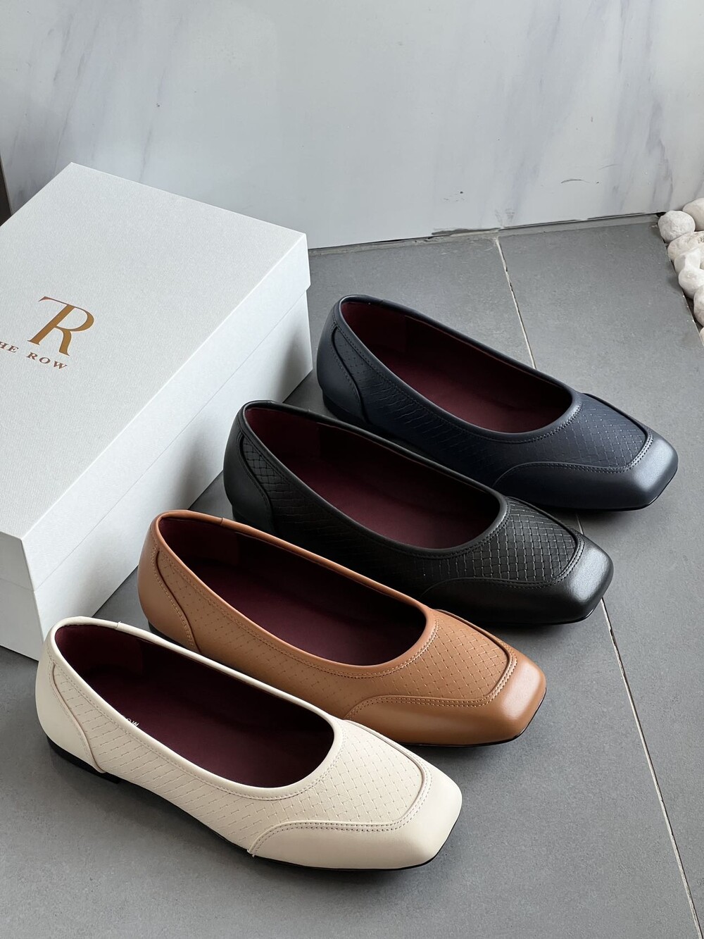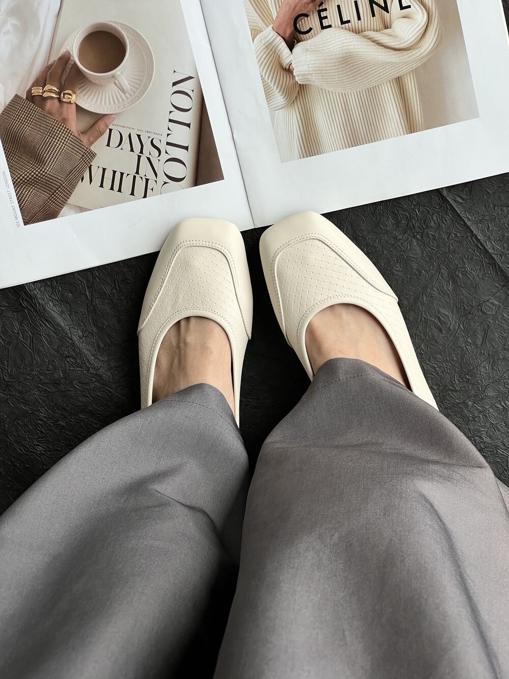 앞코와 옆면에 섬세한 마름모꼴(다이아몬드) 위빙 엠보싱 처리가 되어 있어있습니다. 밋밋한 프린팅이 아니라 입체적인 텍스처라서 디자인 포인트가 되면서도 과하지 않아, 더 로우 특유의 미니멀한 고급스러움을 느끼실 수 있습니다.