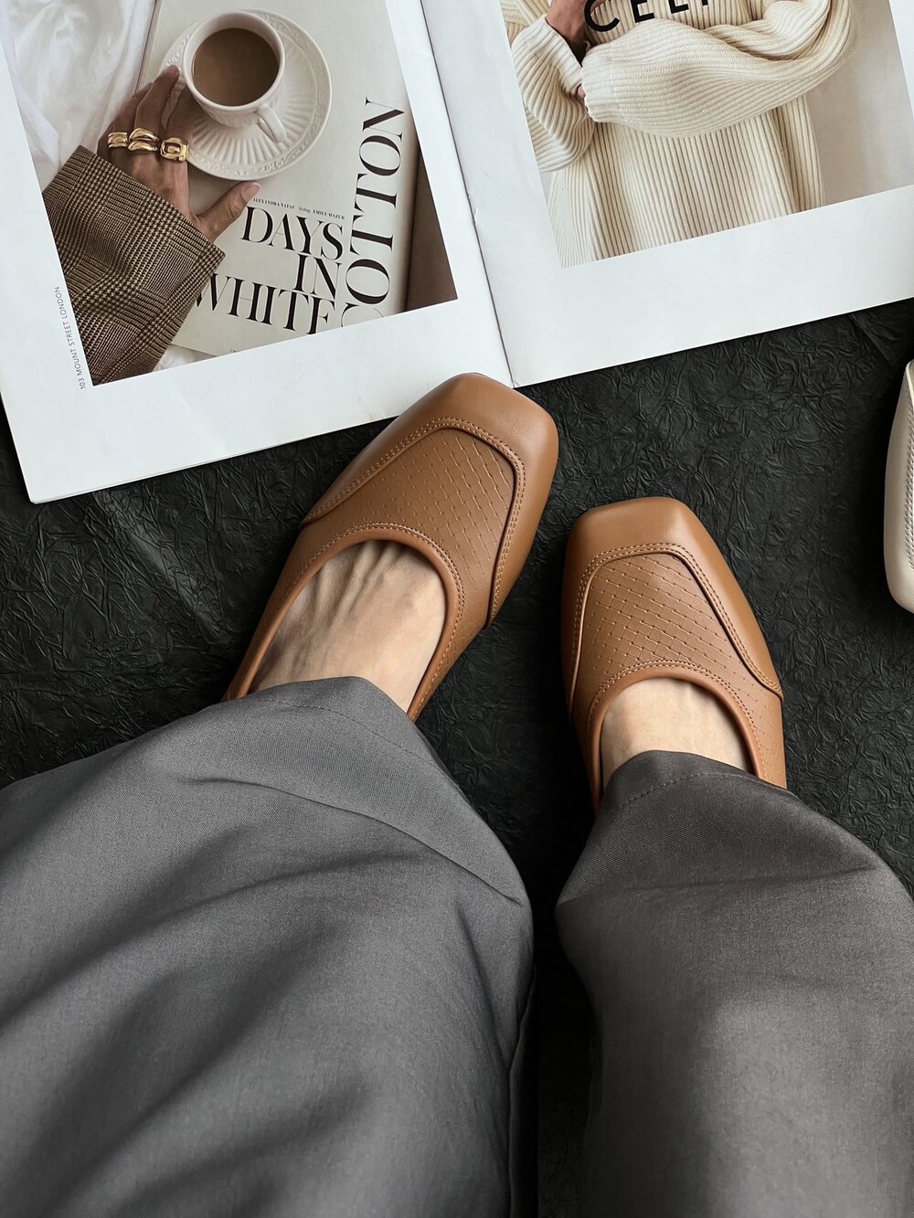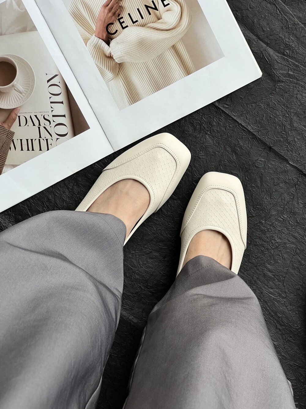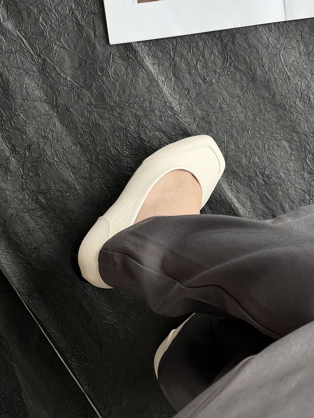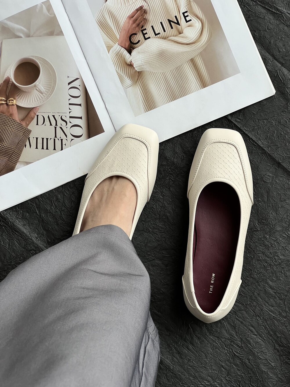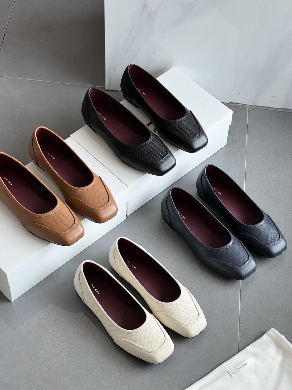 앞코와 옆면에 섬세한 마름모꼴(다이아몬드) 위빙 엠보싱 처리가 되어 있어있습니다. 밋밋한 프린팅이 아니라 입체적인 텍스처라서 디자인 포인트가 되면서도 과하지 않아, 더 로우 특유의 미니멀한 고급스러움을 느끼실 수 있습니다.