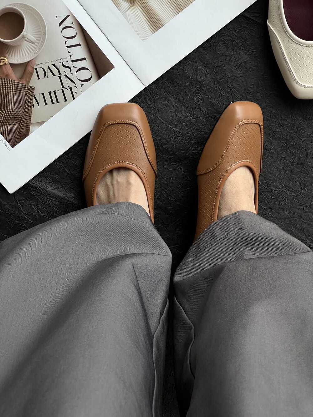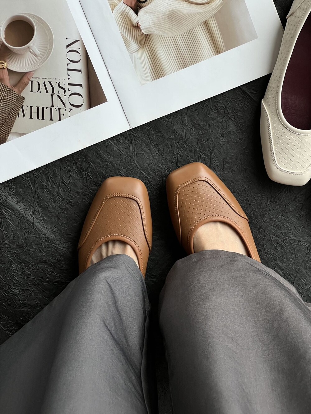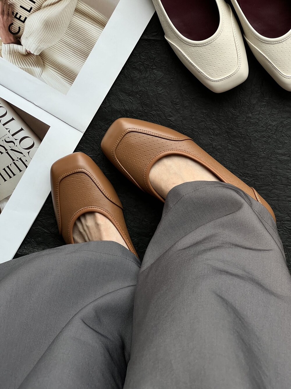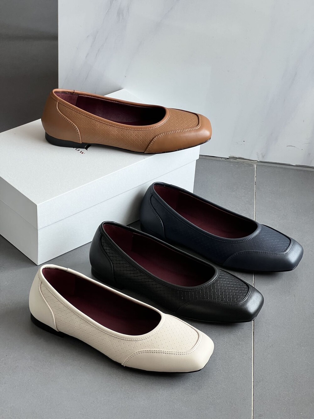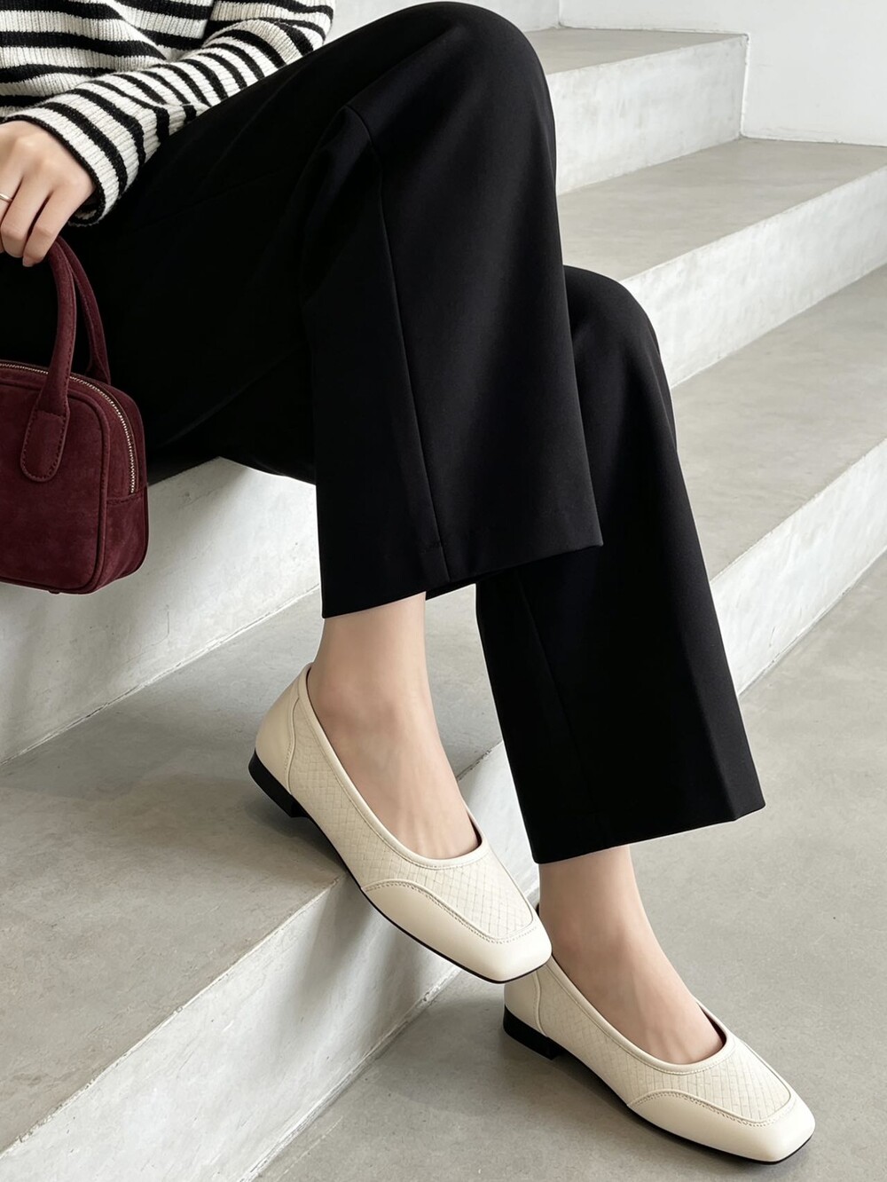 앞코와 옆면에 섬세한 마름모꼴(다이아몬드) 위빙 엠보싱 처리가 되어 있어있습니다. 밋밋한 프린팅이 아니라 입체적인 텍스처라서 디자인 포인트가 되면서도 과하지 않아, 더 로우 특유의 미니멀한 고급스러움을 느끼실 수 있습니다.