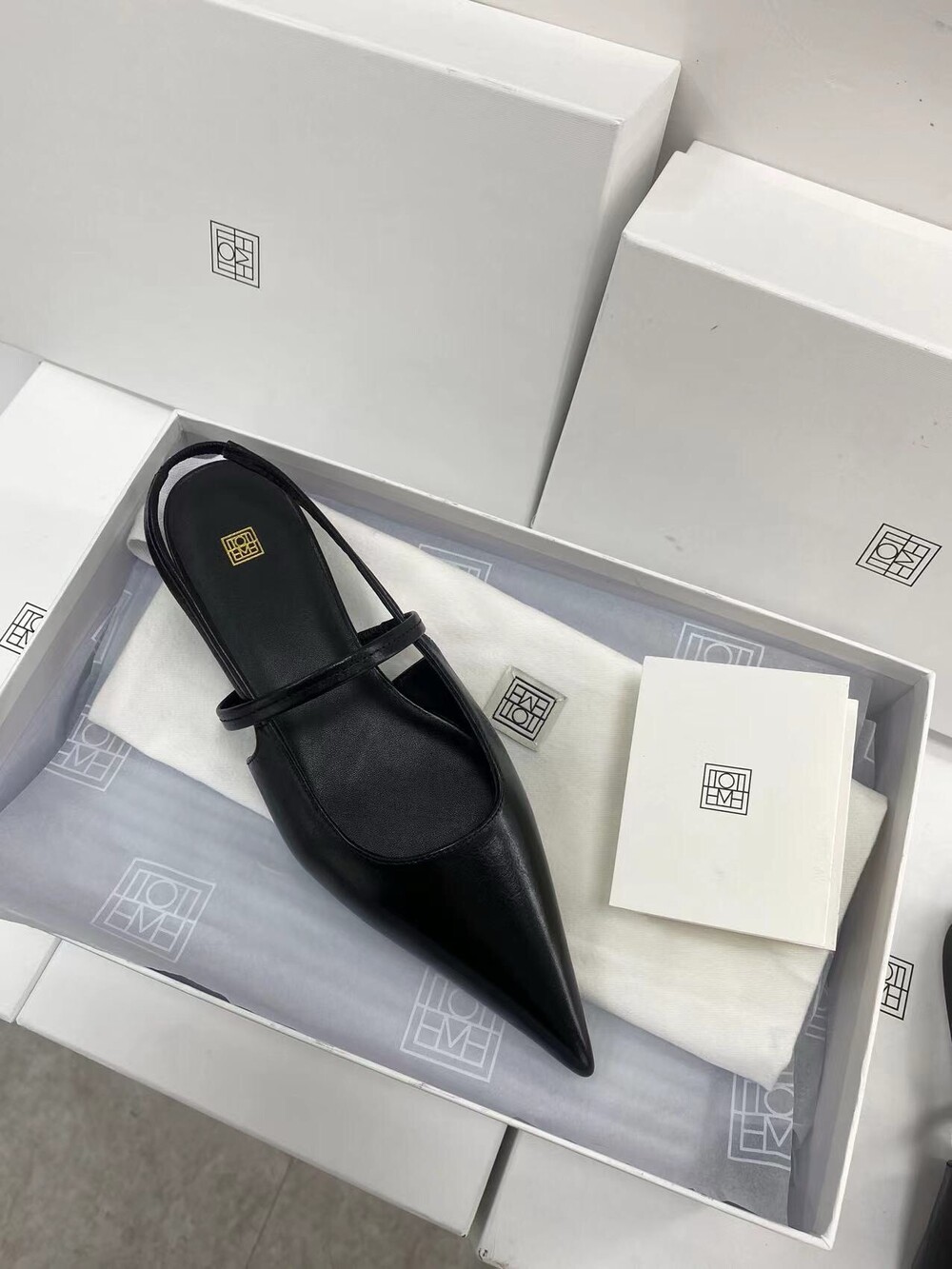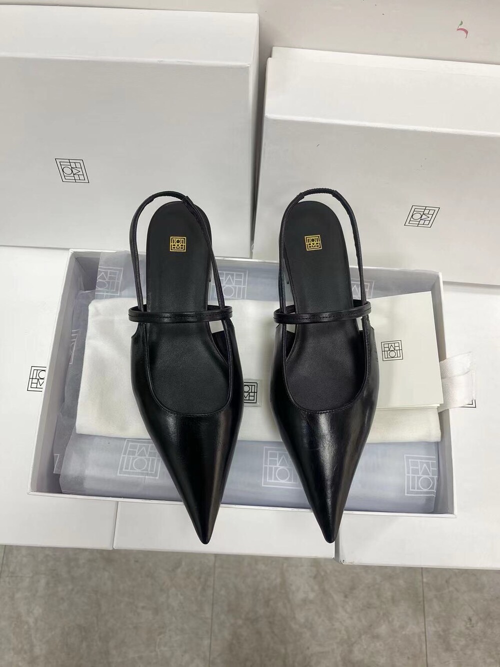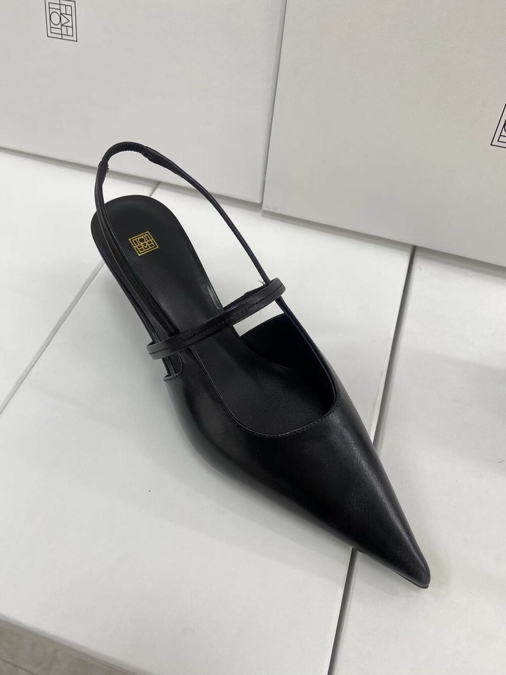 토템(Toteme)의 The Sharp 슬링백은 소가죽 소재로 제작된 슬링백 스타일 여성용 펌프스입니다. 세련된 실루엣으로 오피스룩에 적합합니다. 신발 상자와 더스트 백이 함께 제공됩니다.