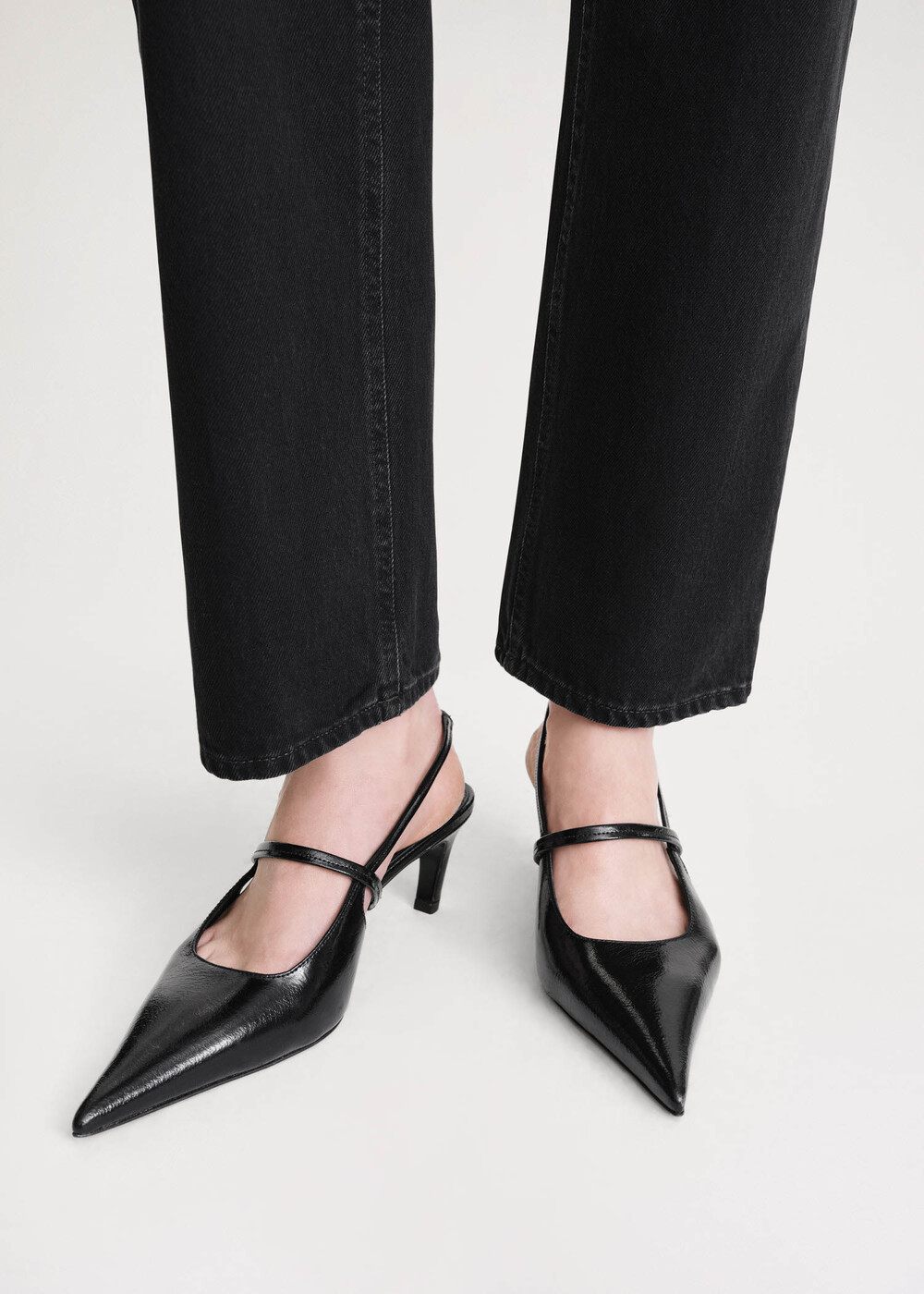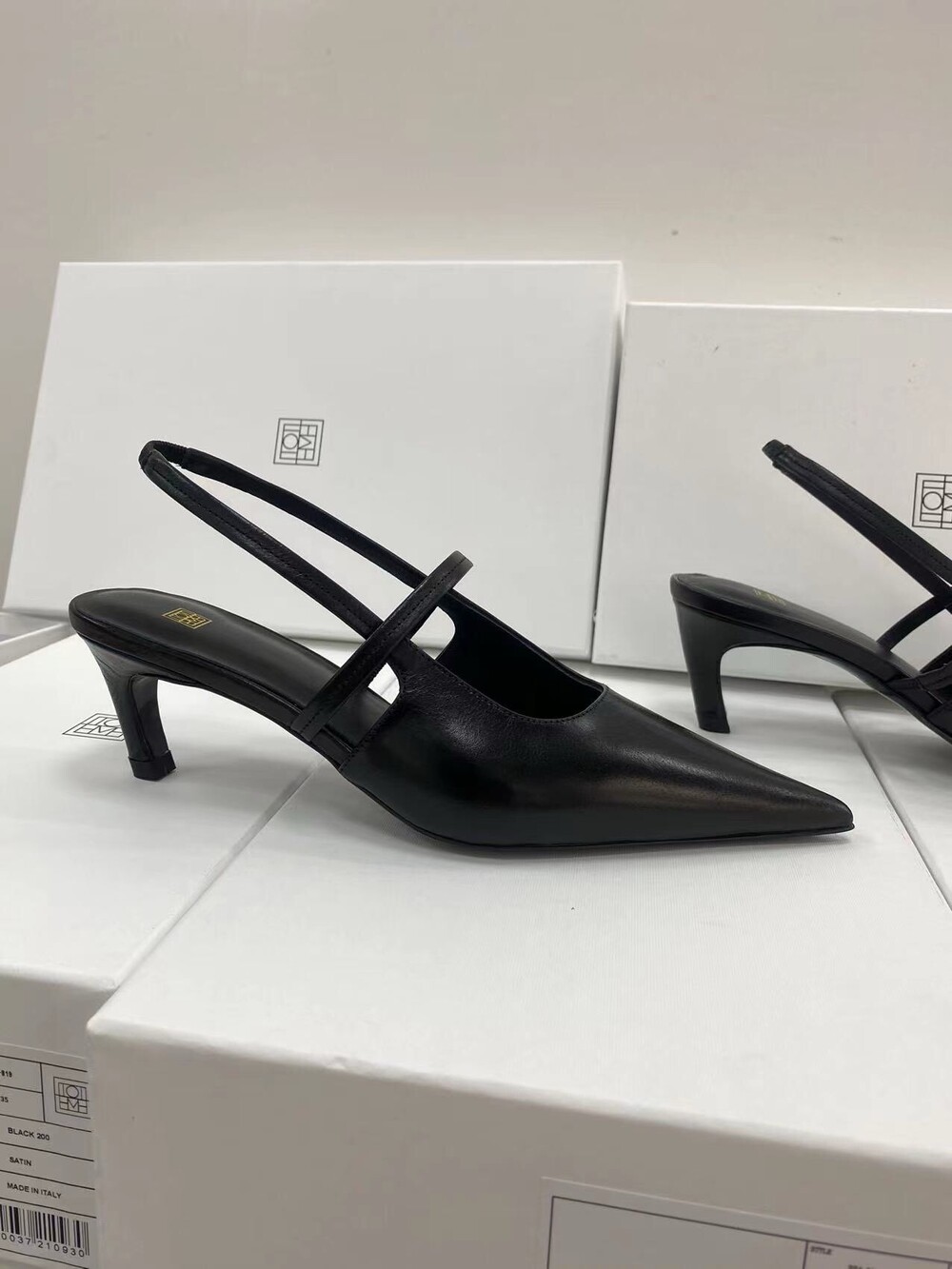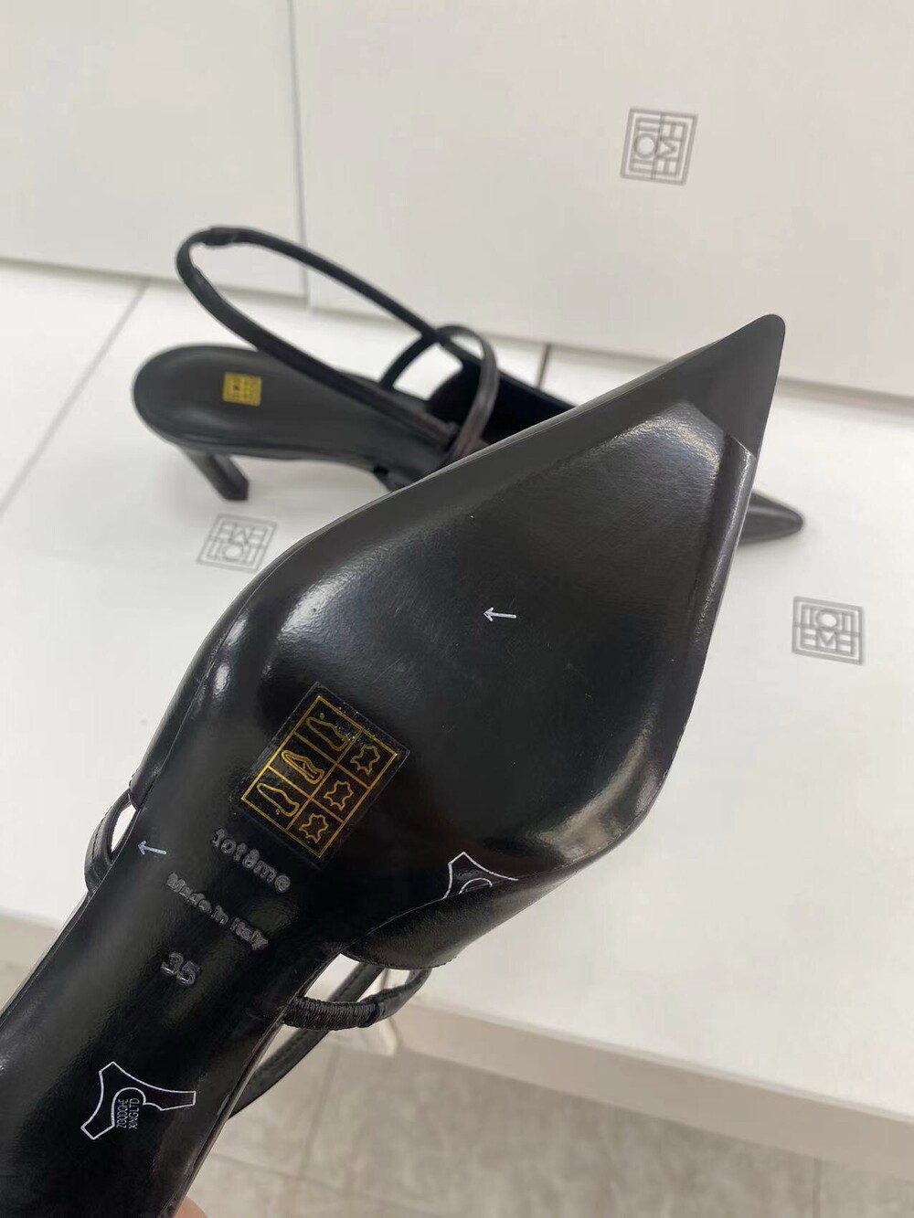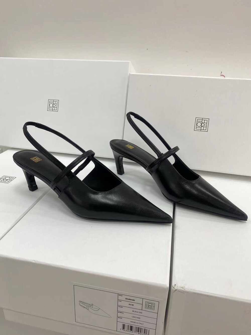토템(Toteme)의 The Sharp 슬링백은 소가죽 소재로 제작된 슬링백 스타일 여성용 펌프스입니다. 세련된 실루엣으로 오피스룩에 적합합니다. 신발 상자와 더스트 백이 함께 제공됩니다.