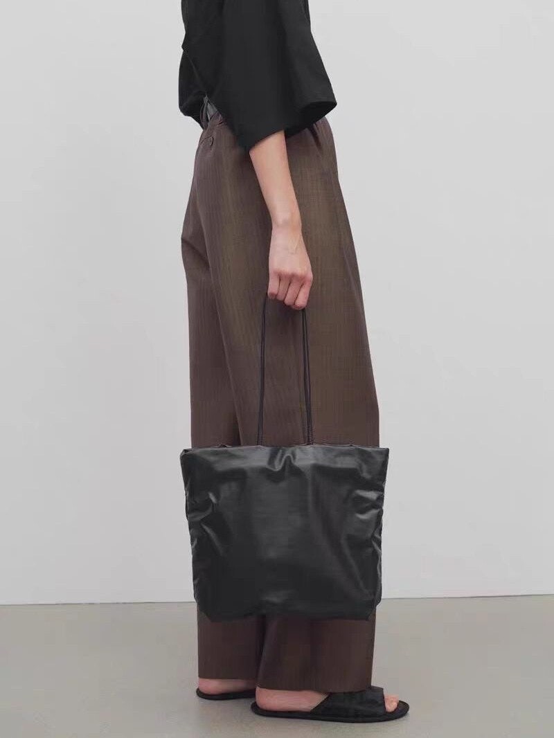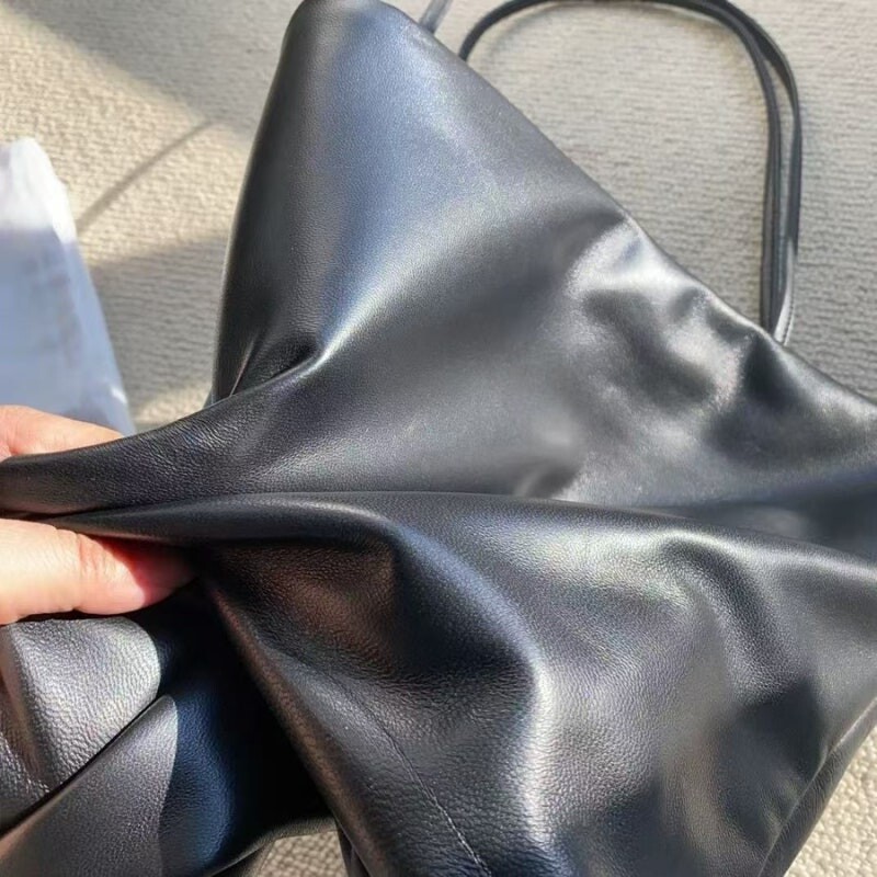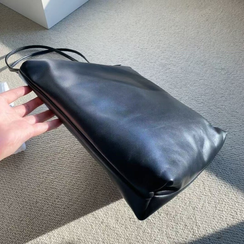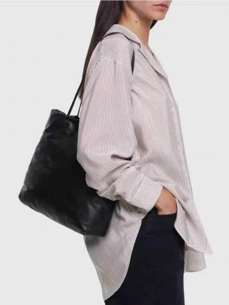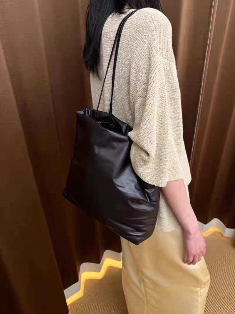 가벼운 나파 가죽 소재의 패딩 토트백.