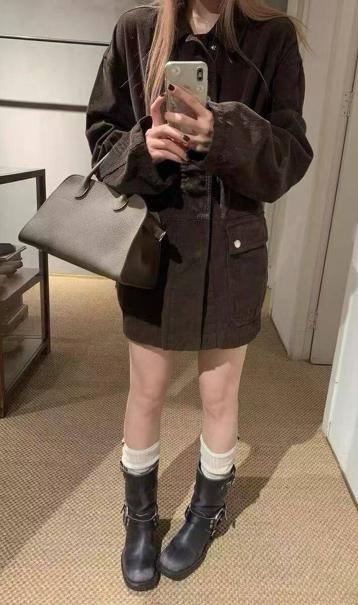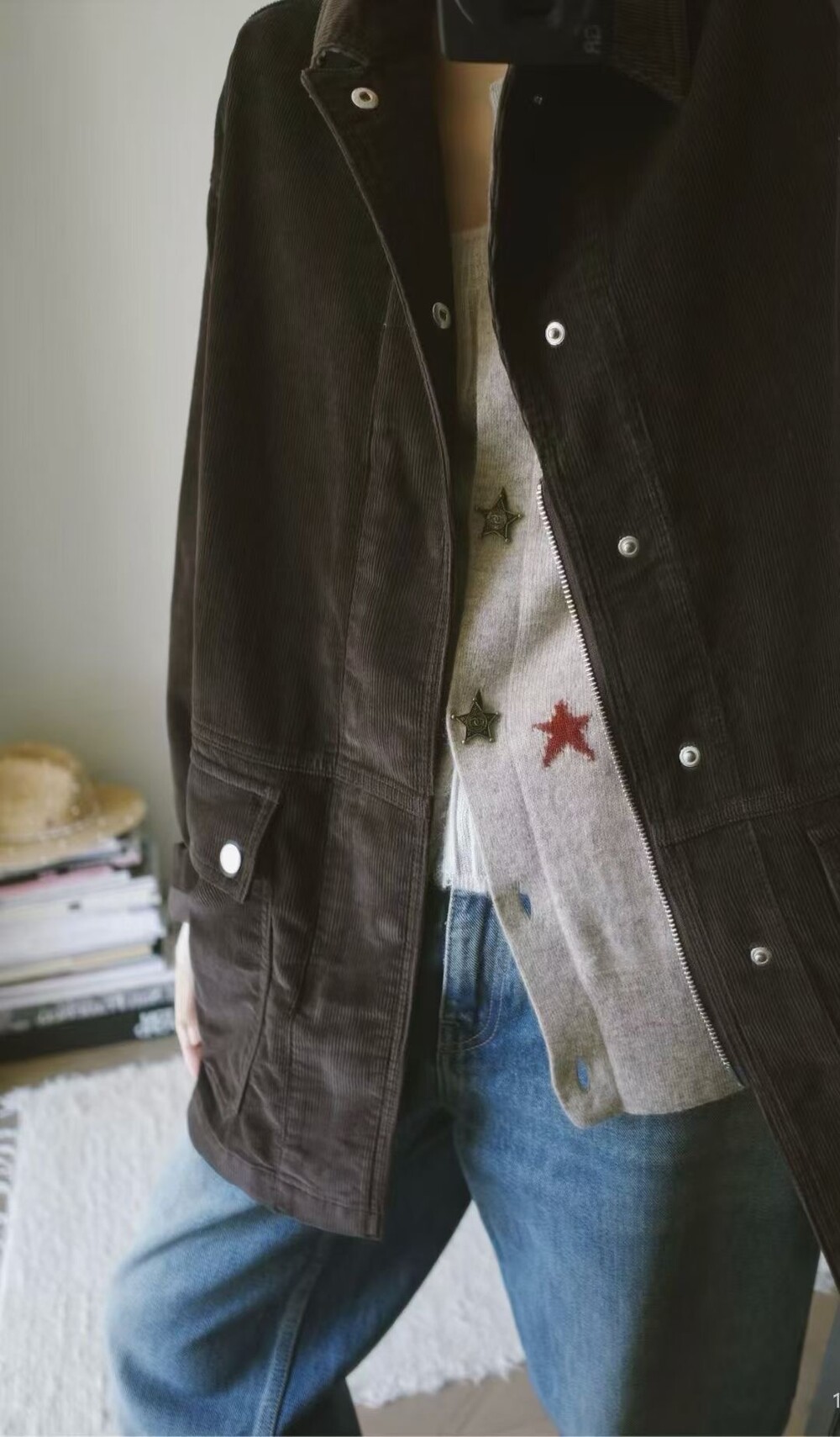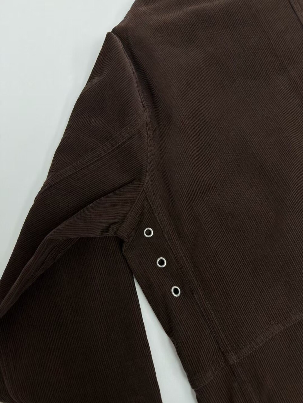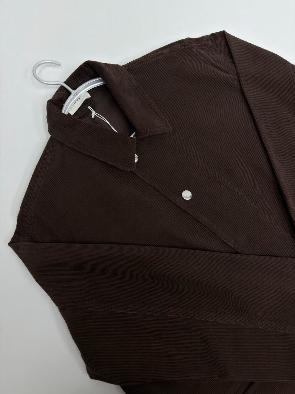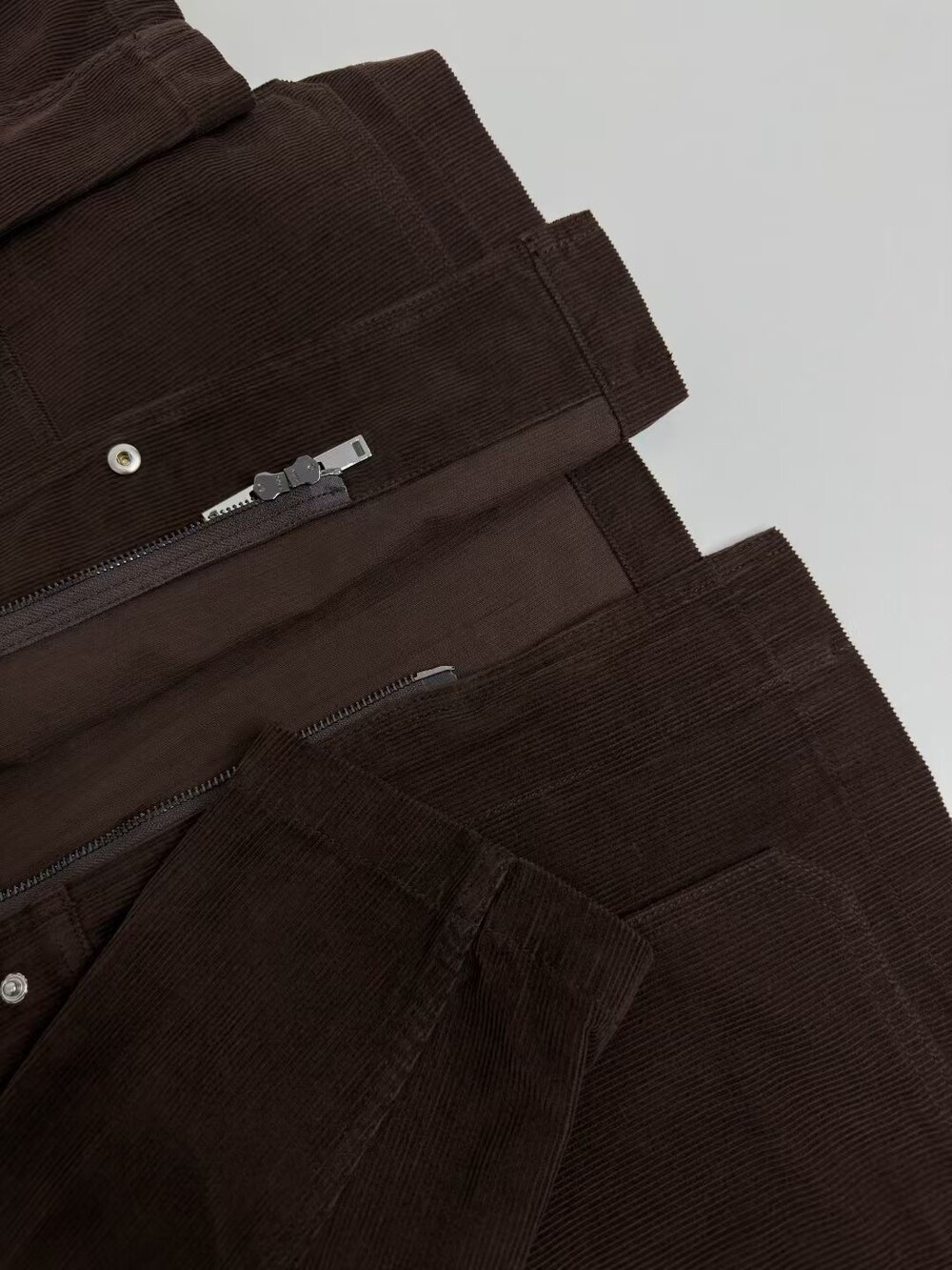 일본산 코튼 코듀로이 소재로 제작된 아웃도어 재킷으로, 앞면에 패치 포켓이 있으며 스냅 버튼과 지퍼로 여닫는 히든 플래킷(덮개 여밈) 디테일이 적용되어 있습니다.