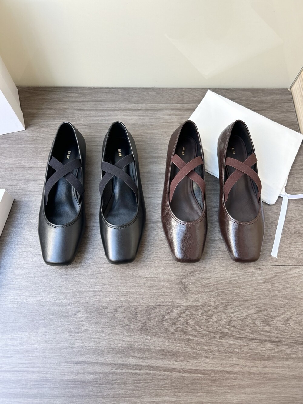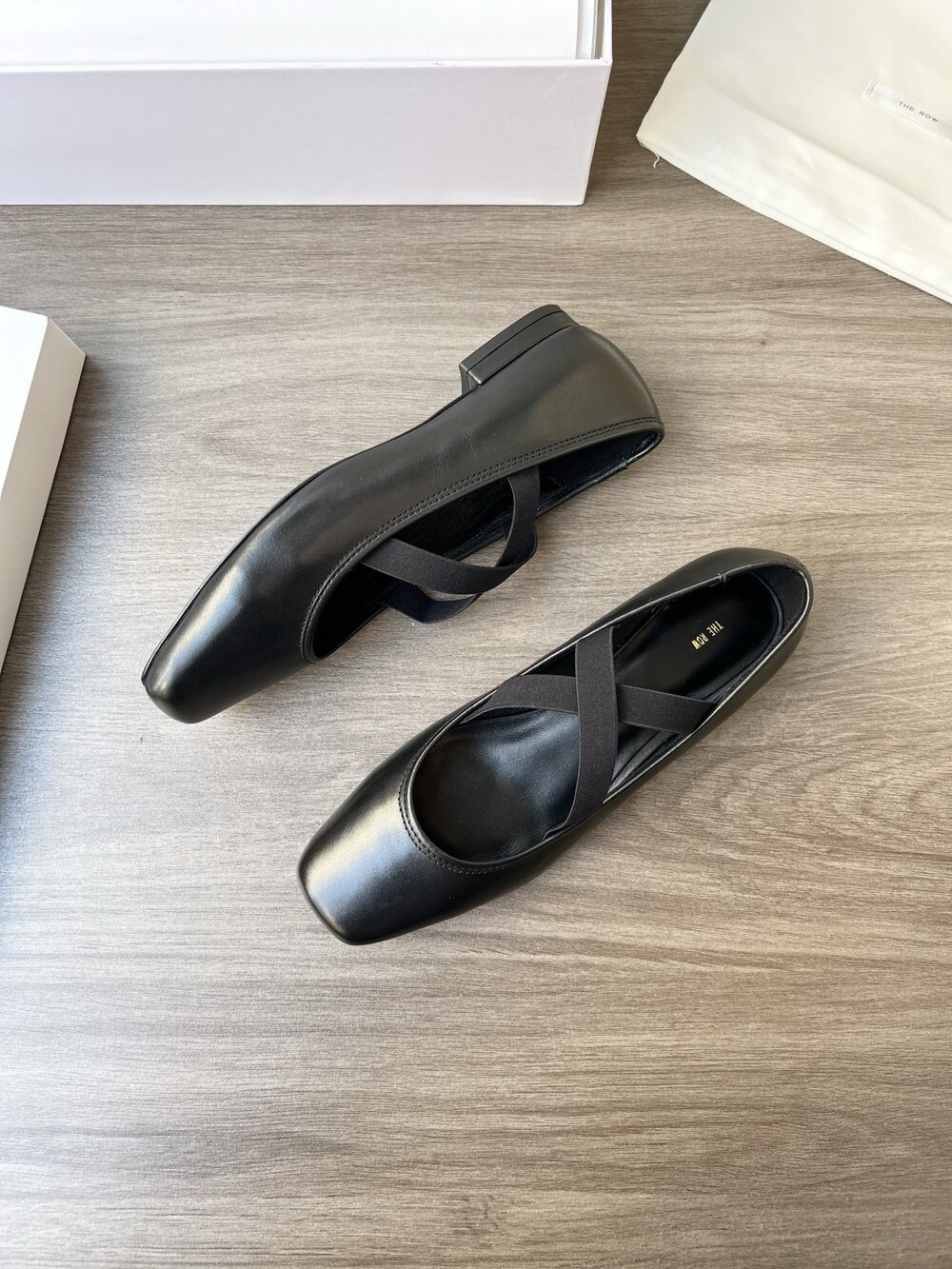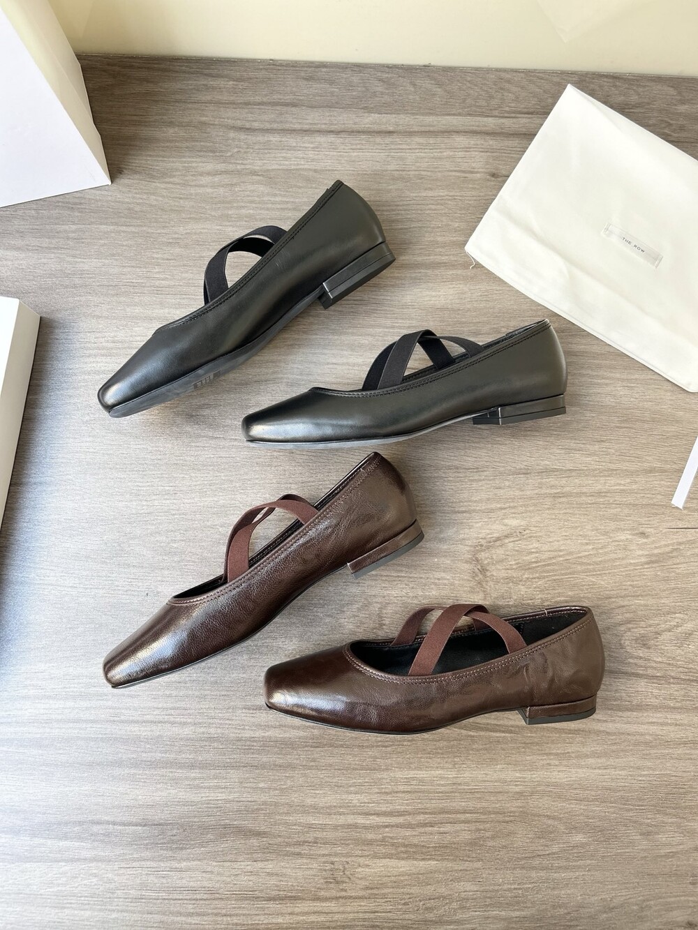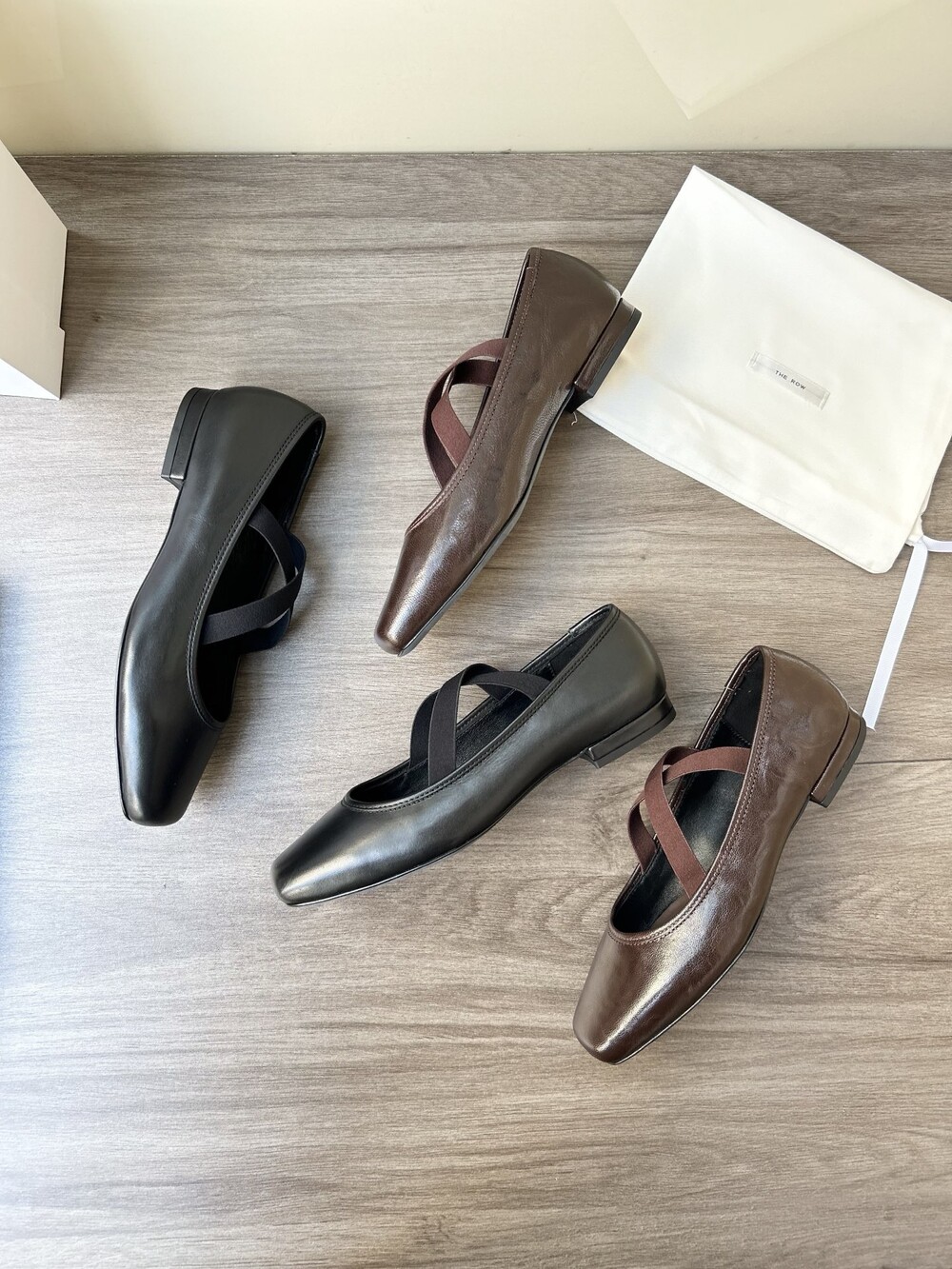 더로우 레더 크로스 스트랩 발레리나 플랫