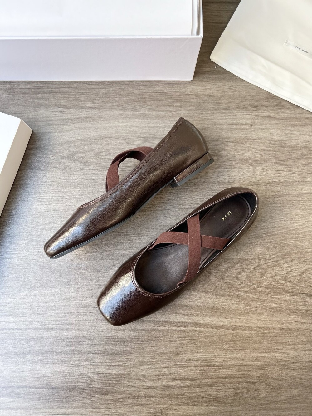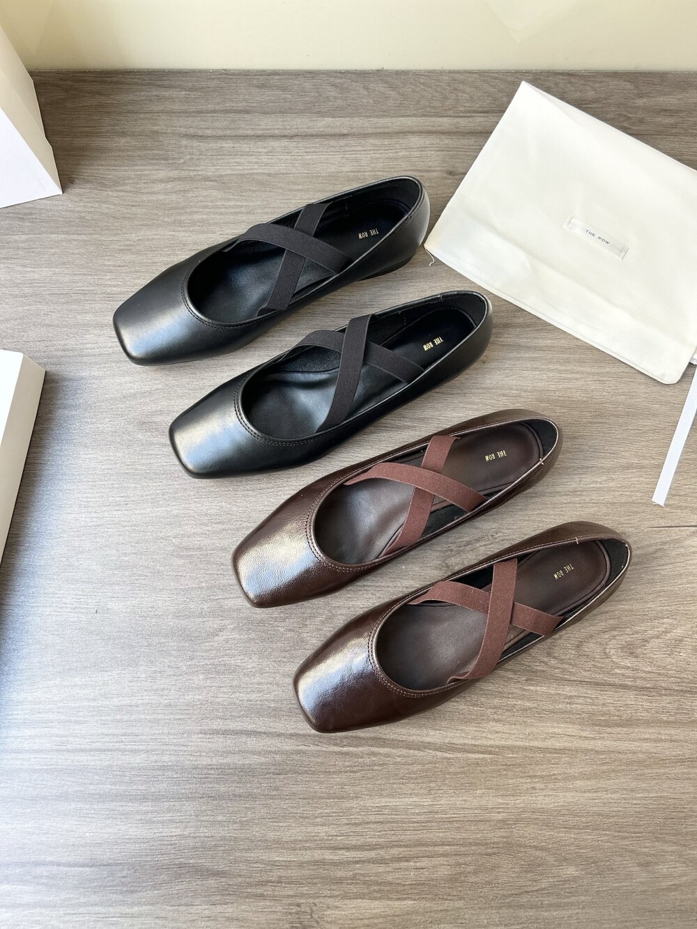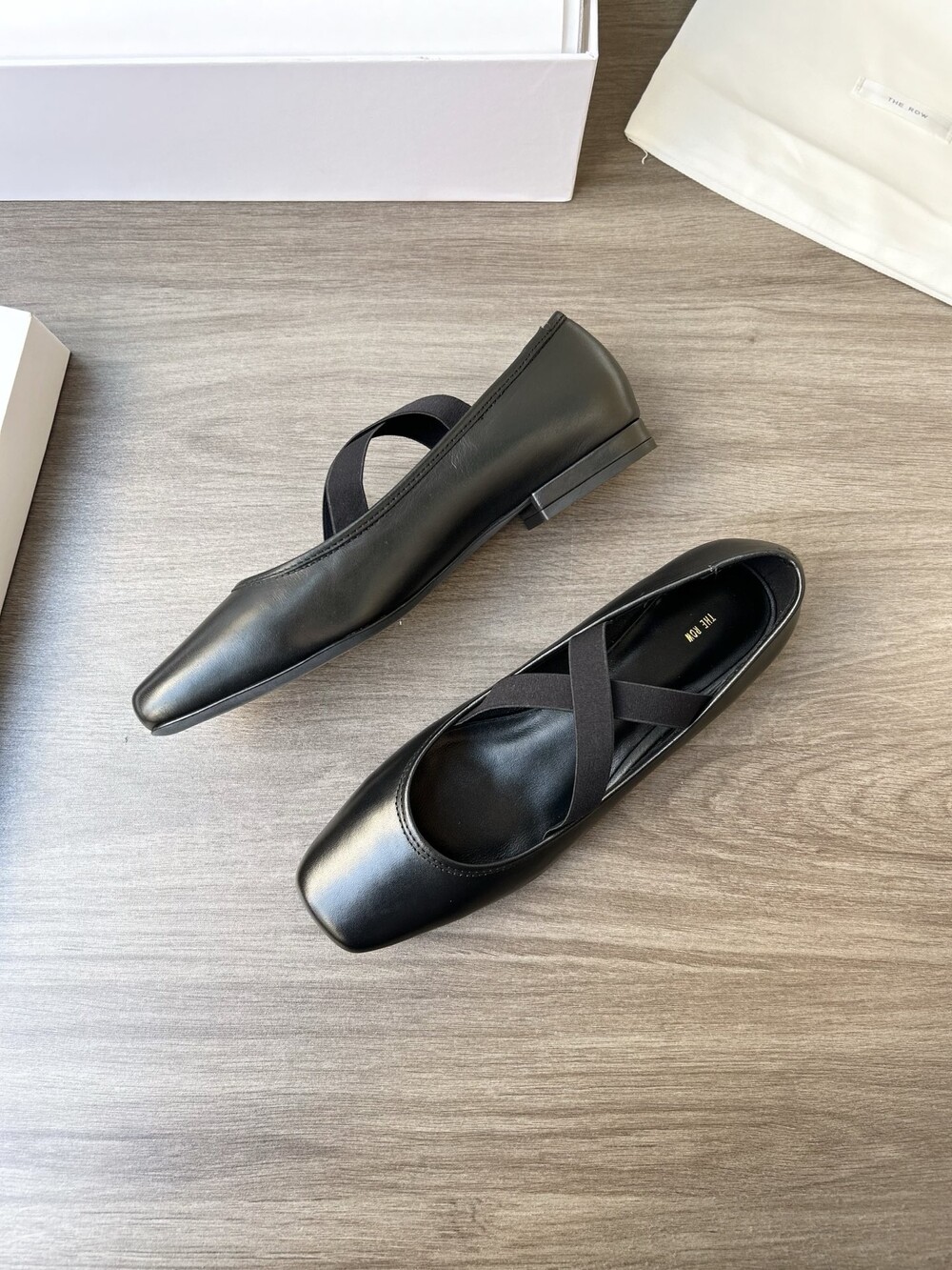 더로우 레더 크로스 스트랩 발레리나 플랫