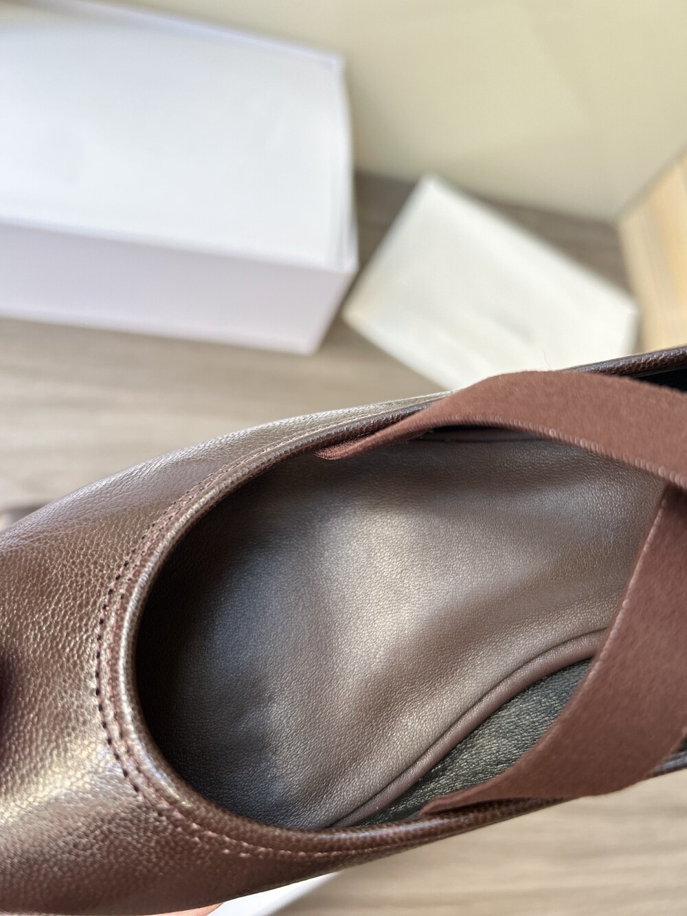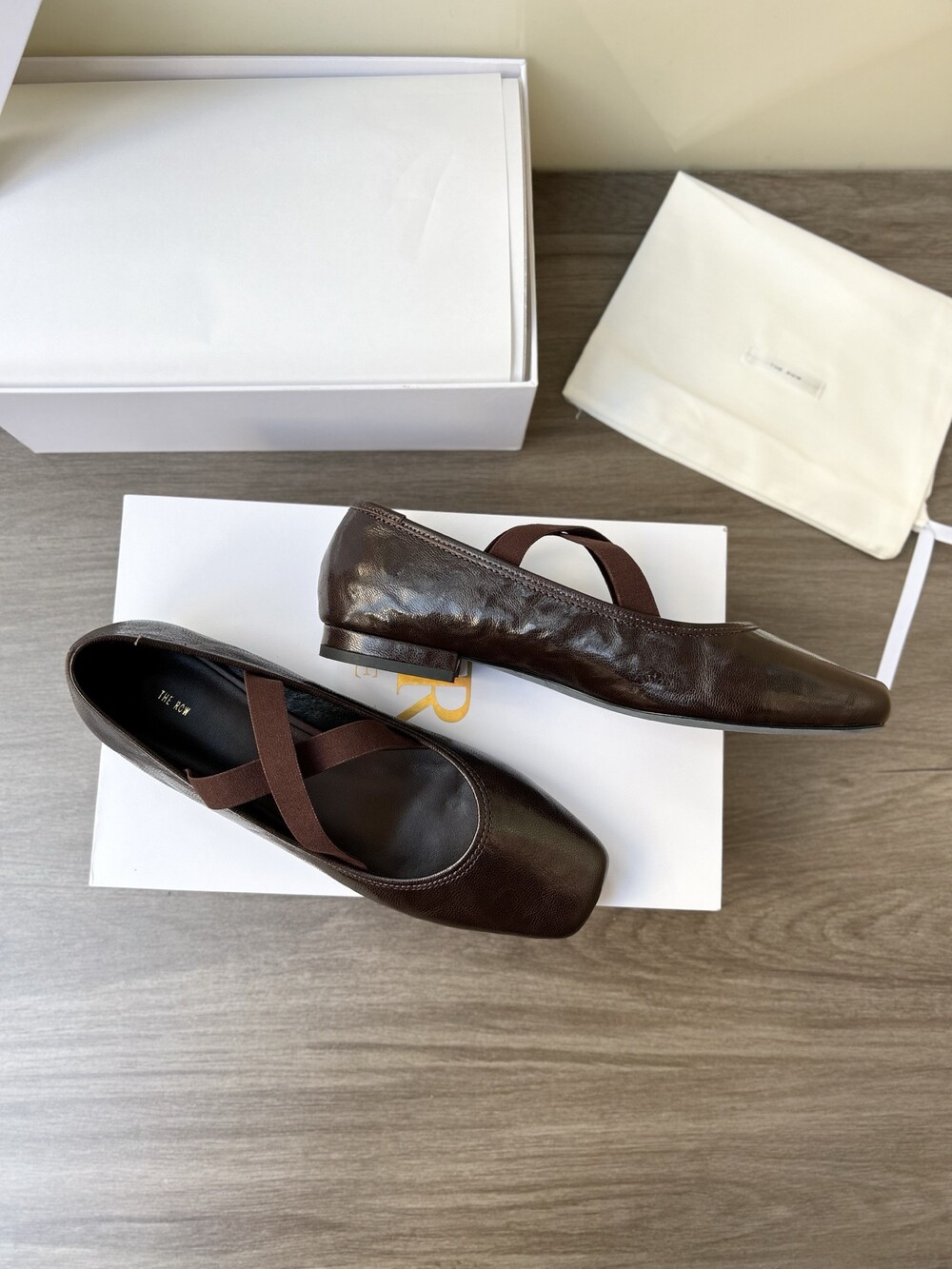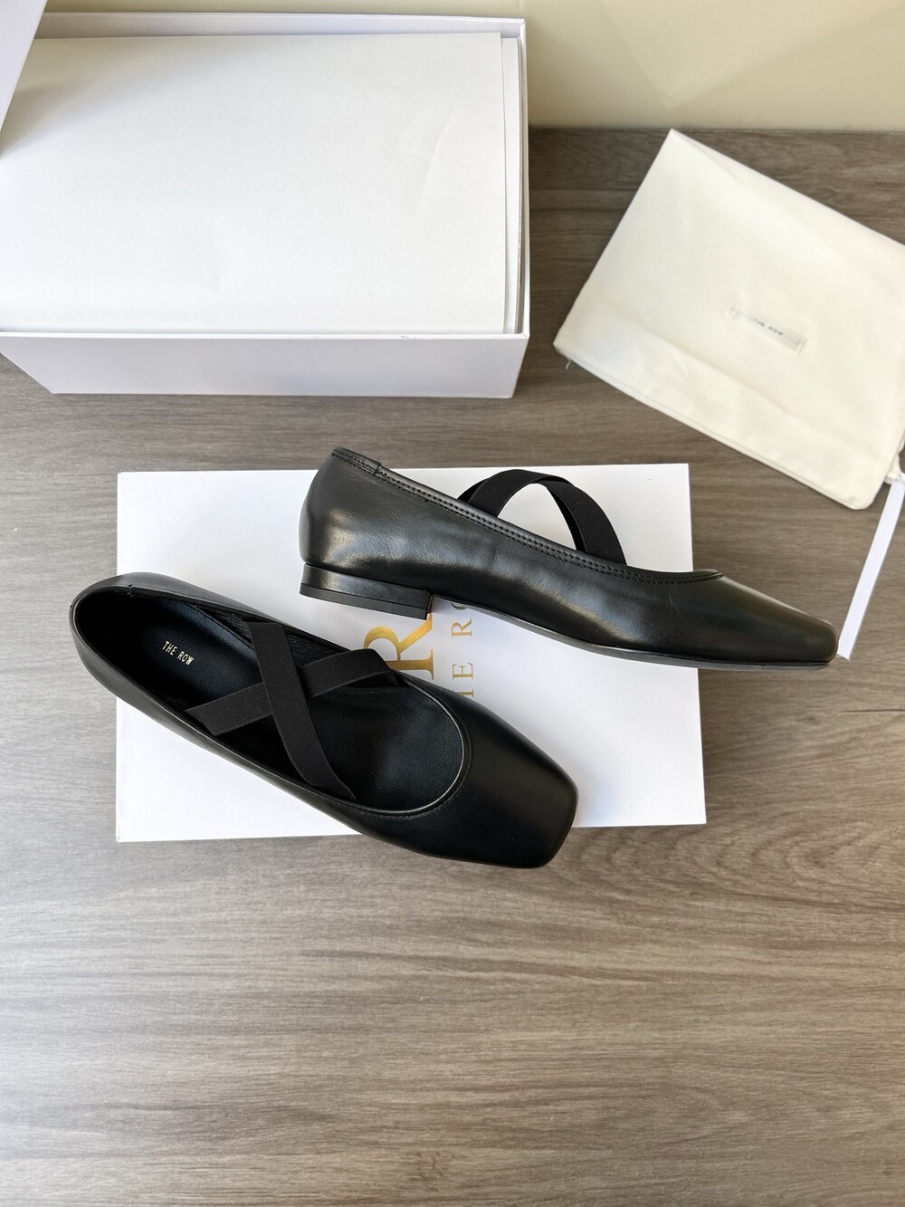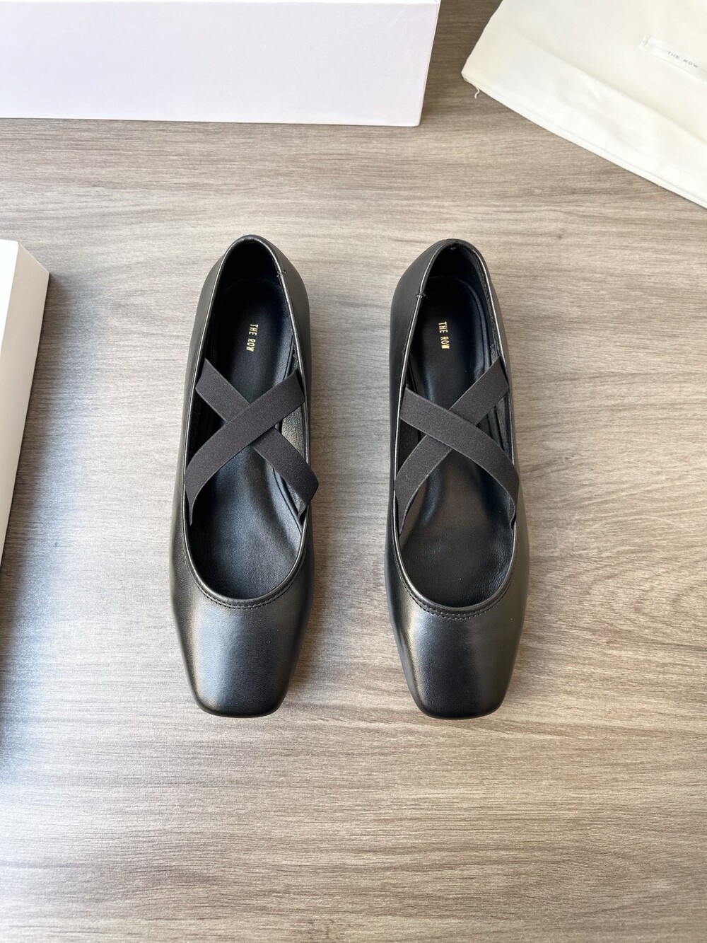 더로우 레더 크로스 스트랩 발레리나 플랫