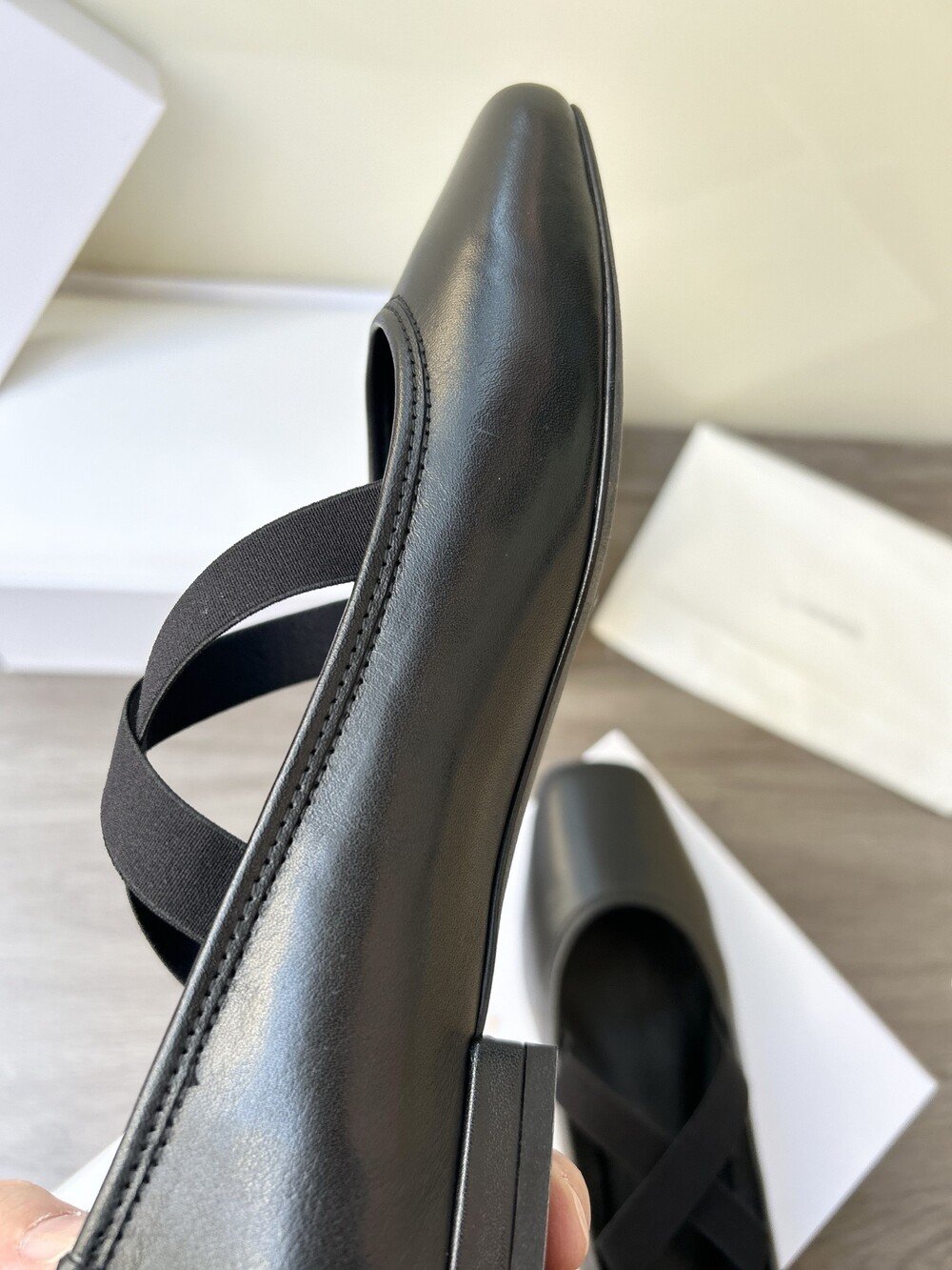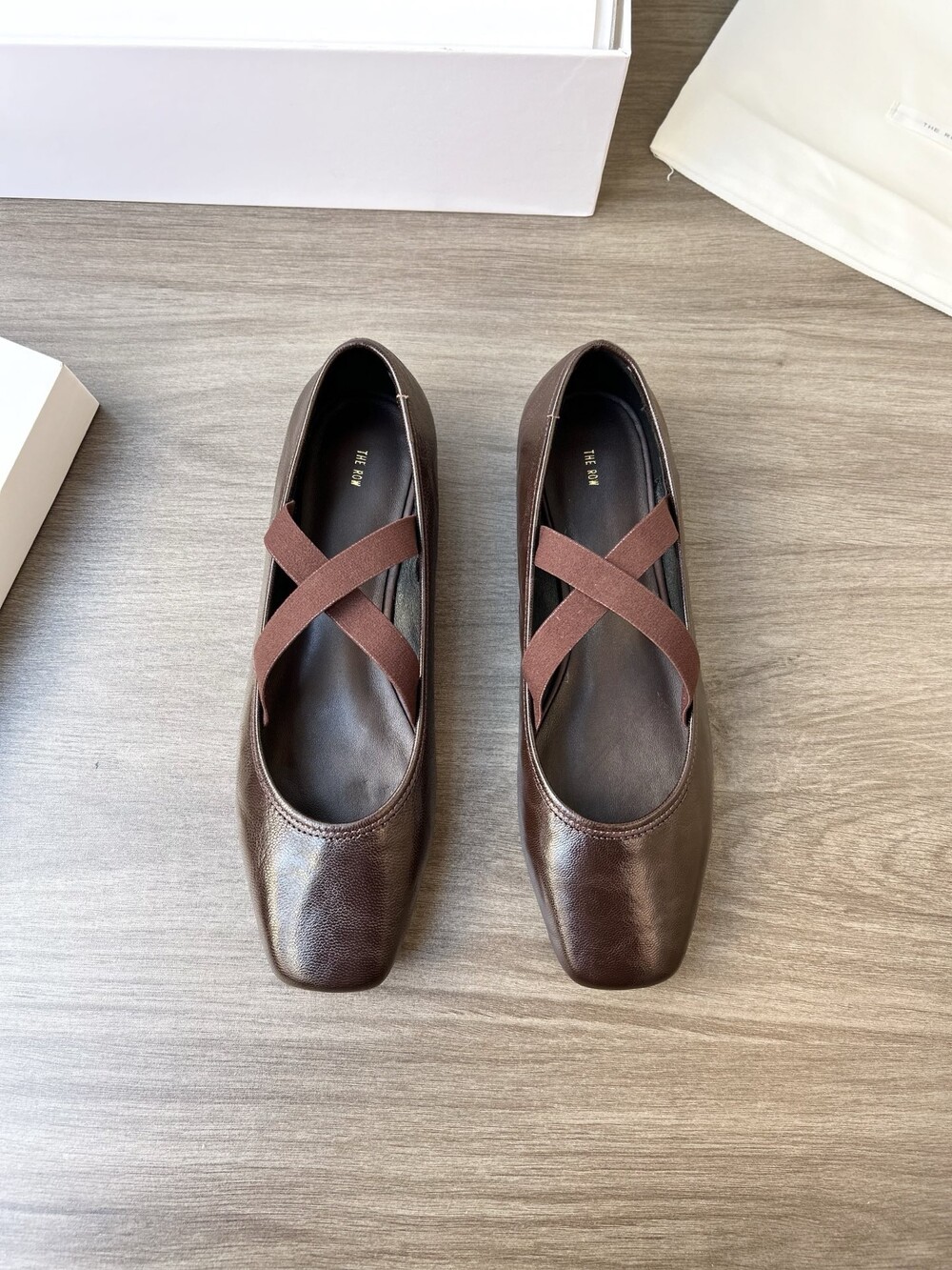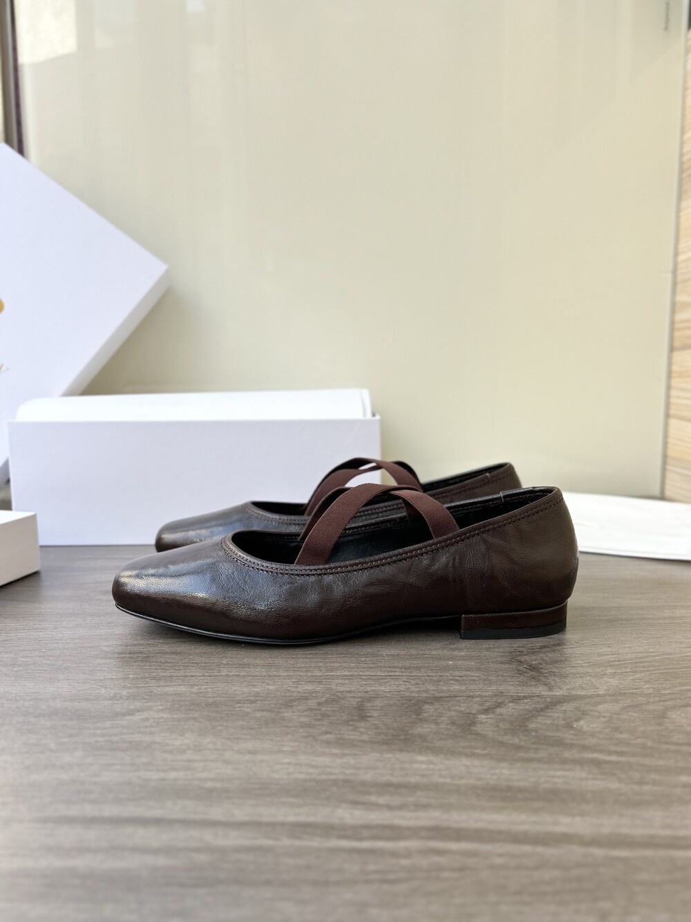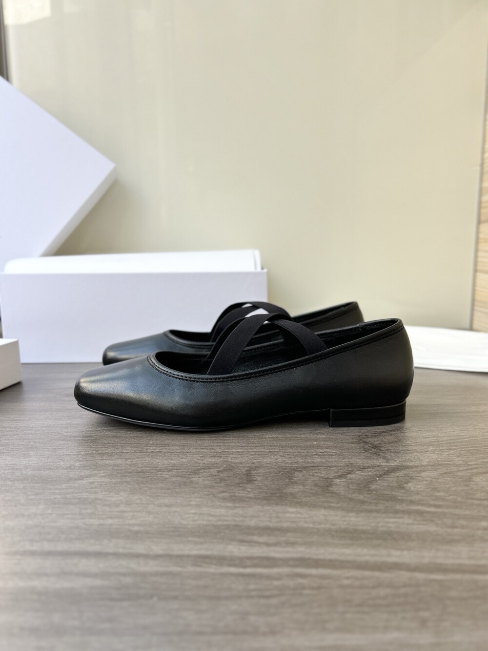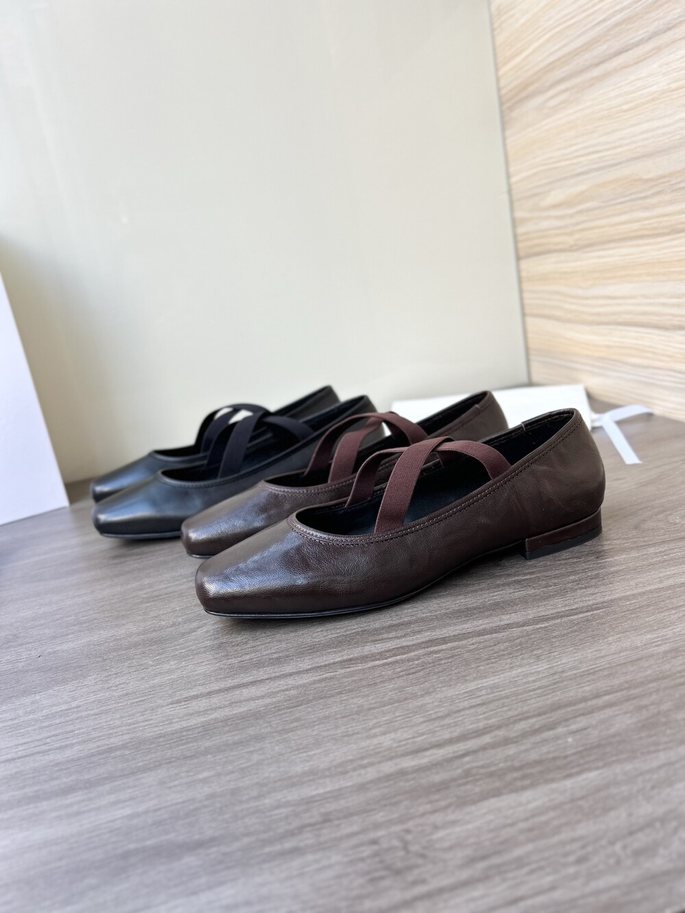 레더 크로스 스트랩 발레리나 플랫
