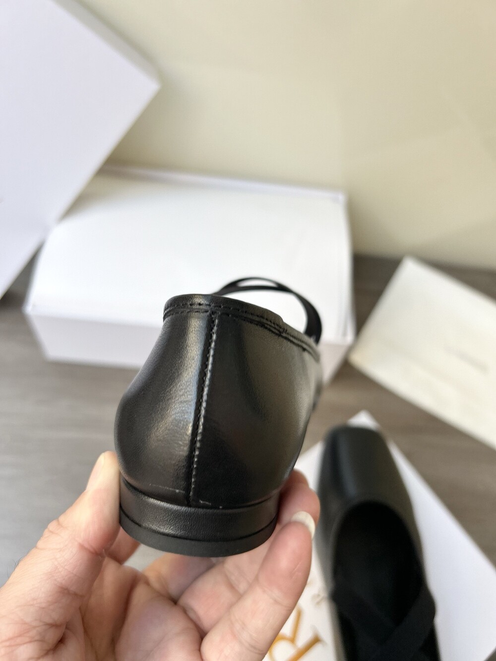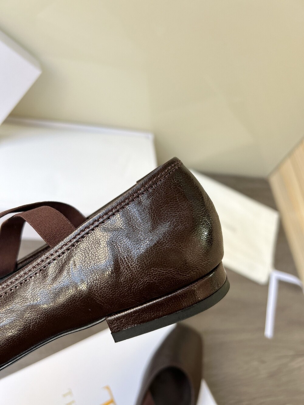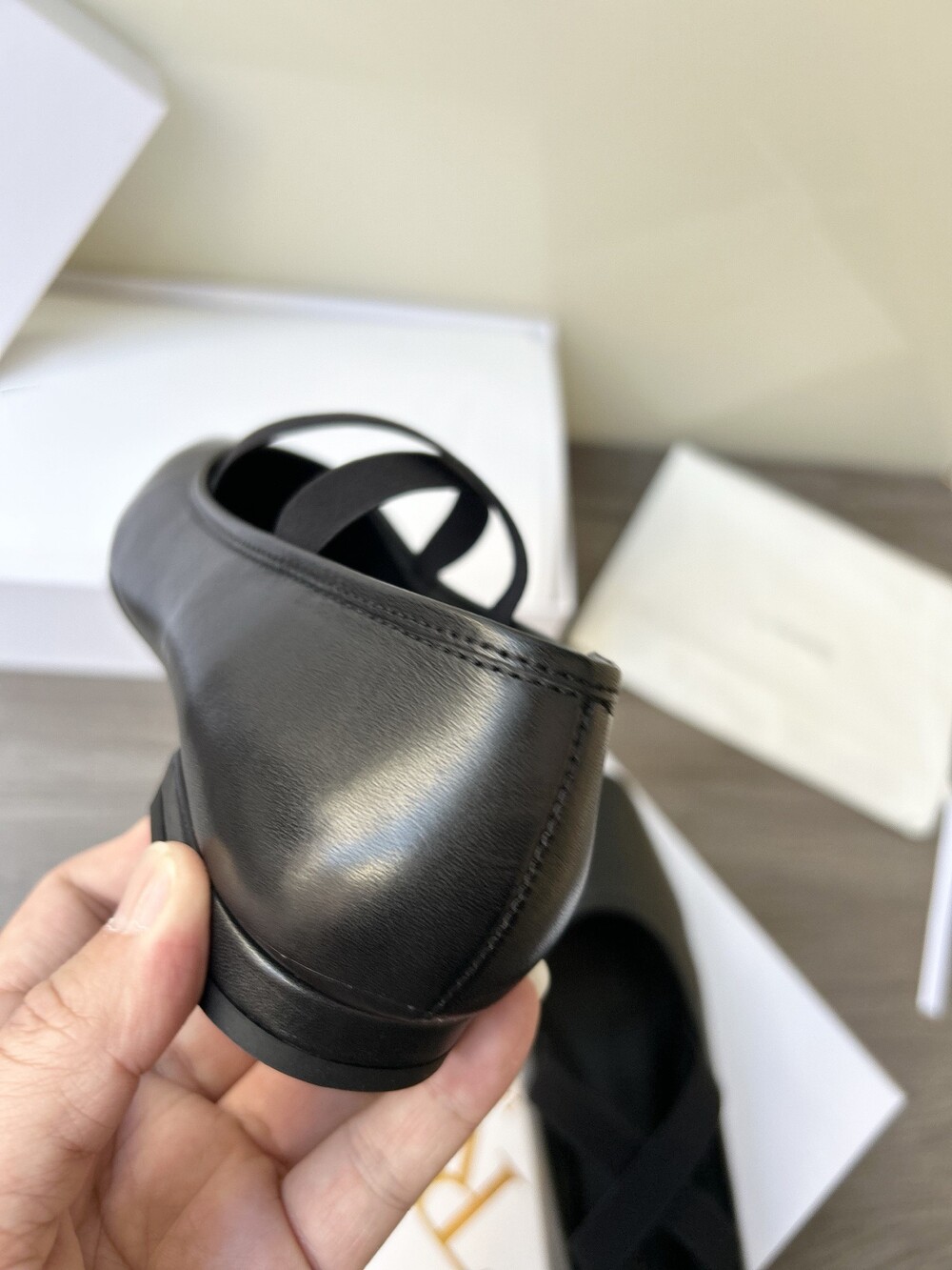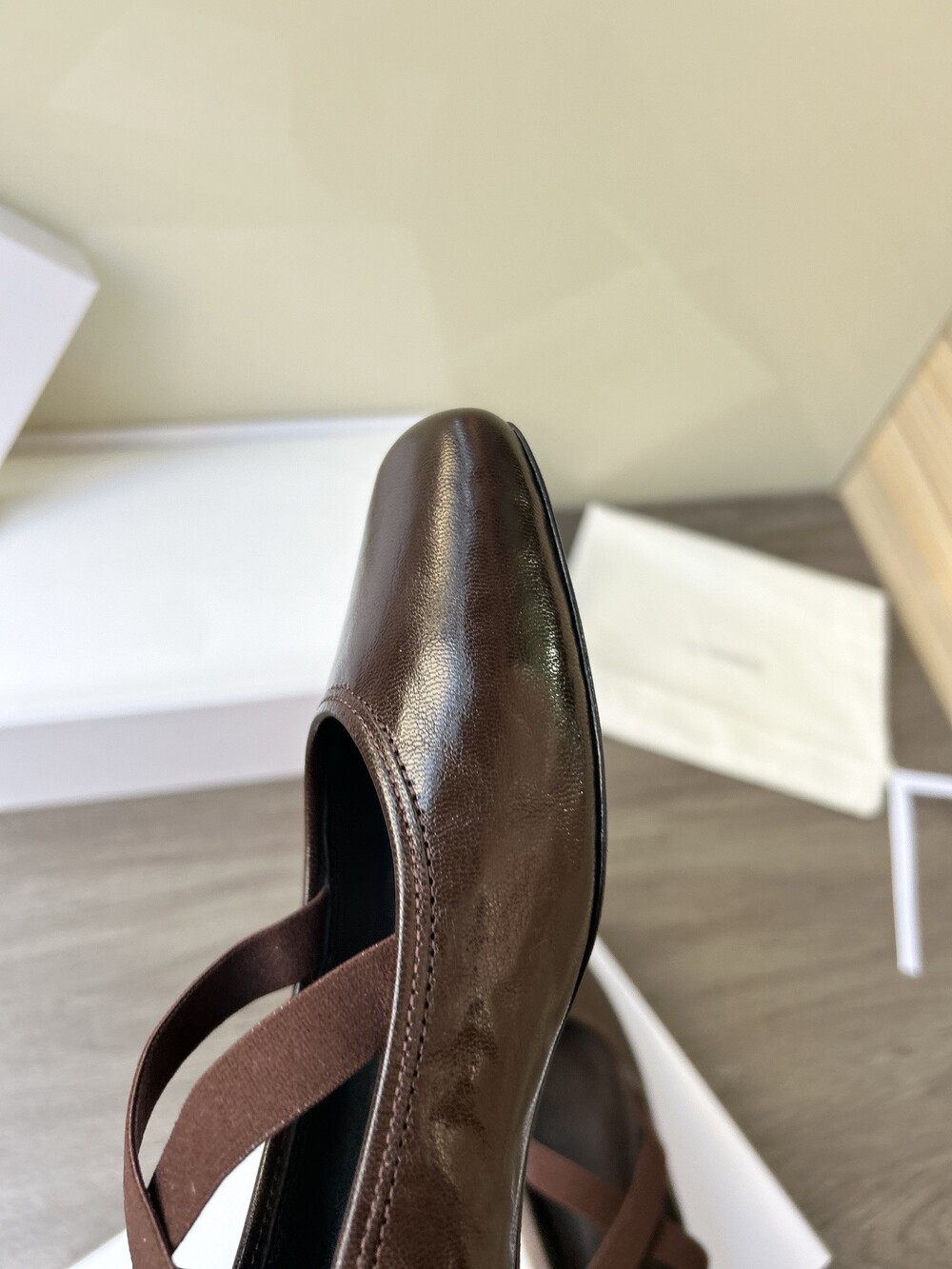 레더 크로스 스트랩 발레리나 플랫