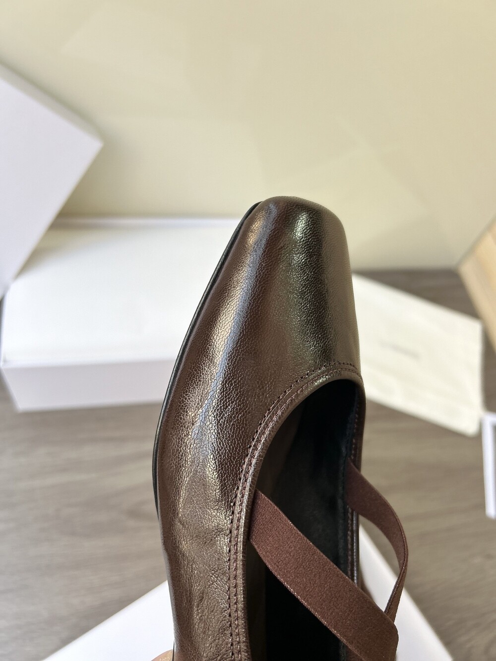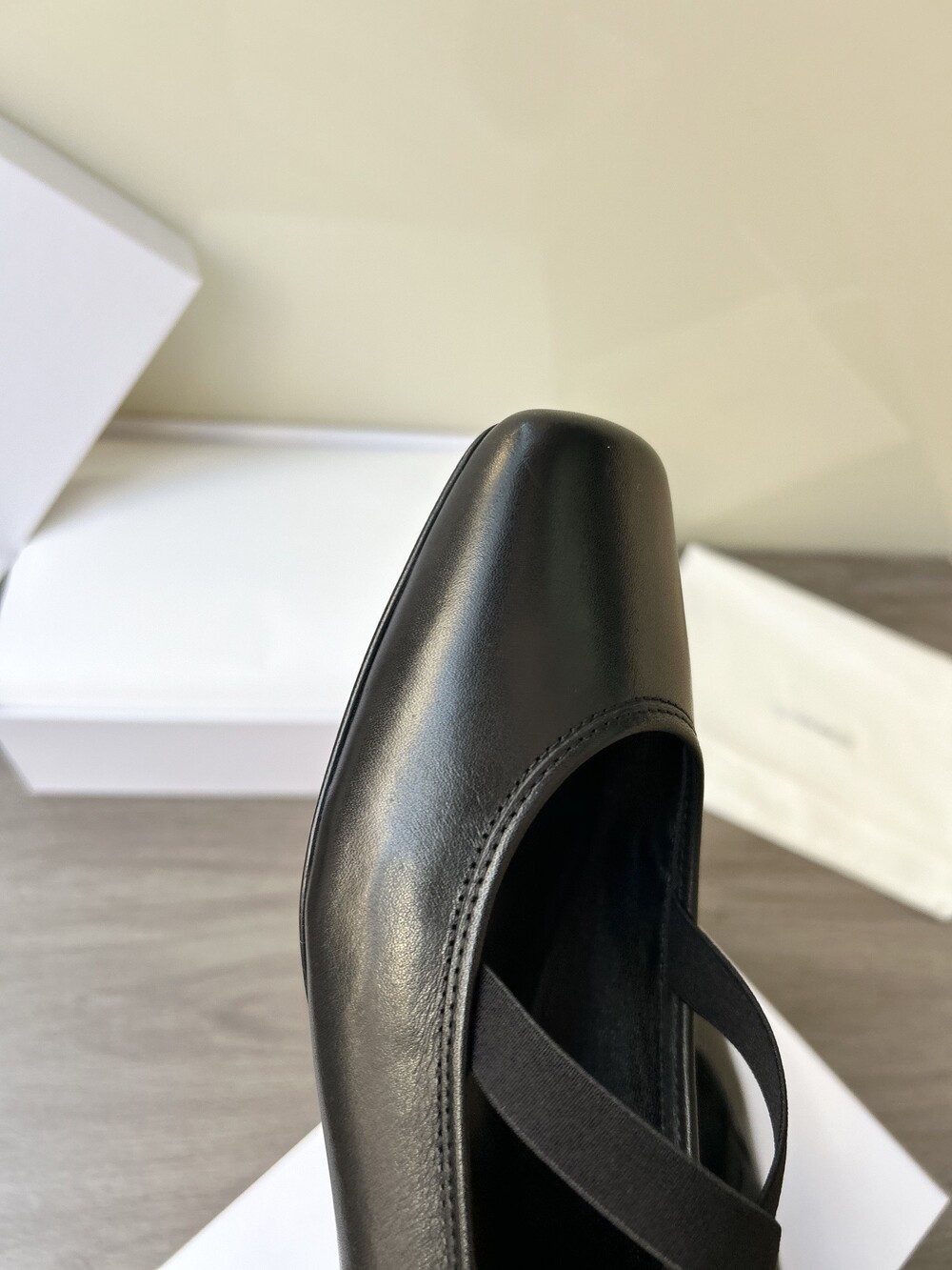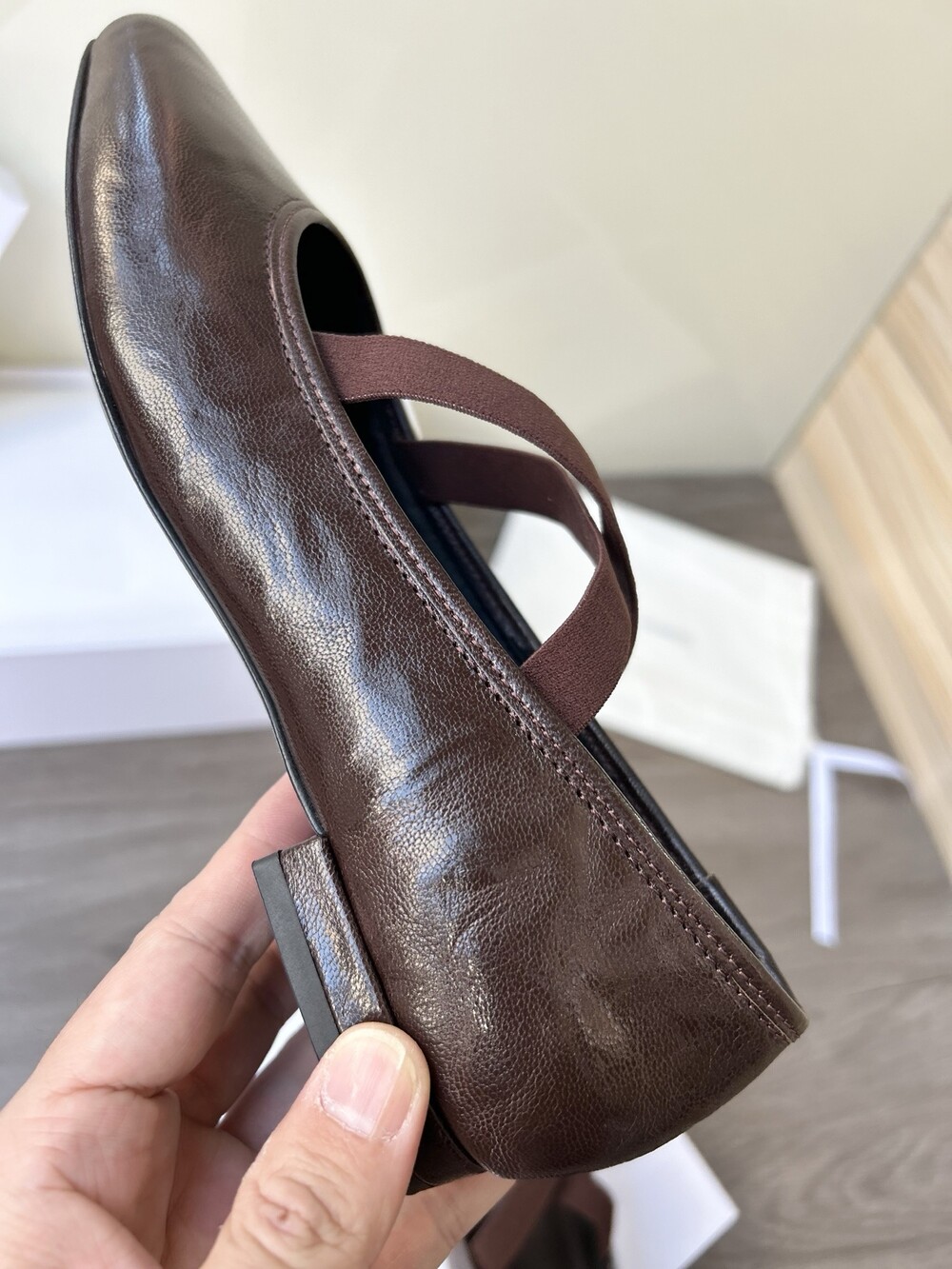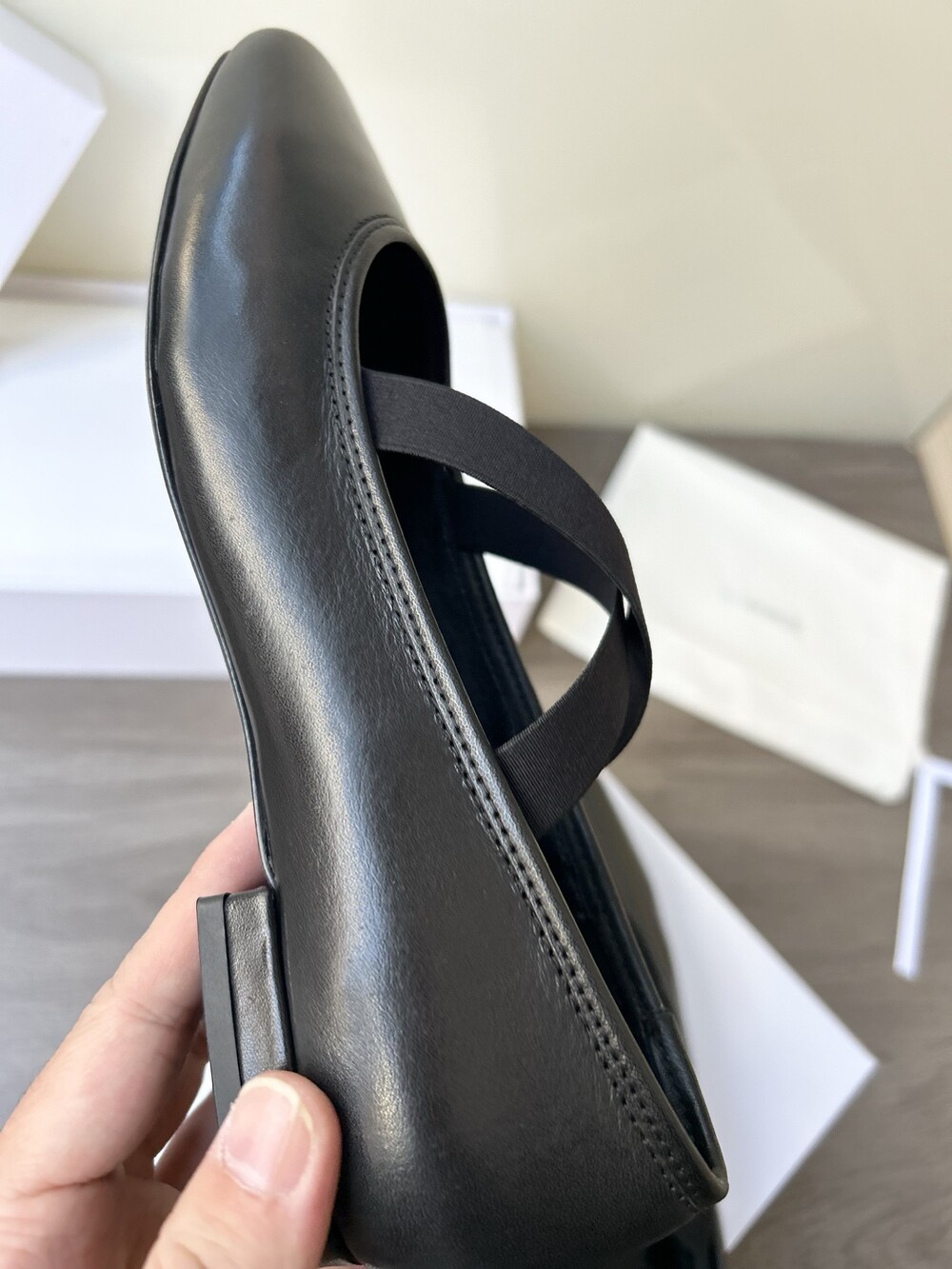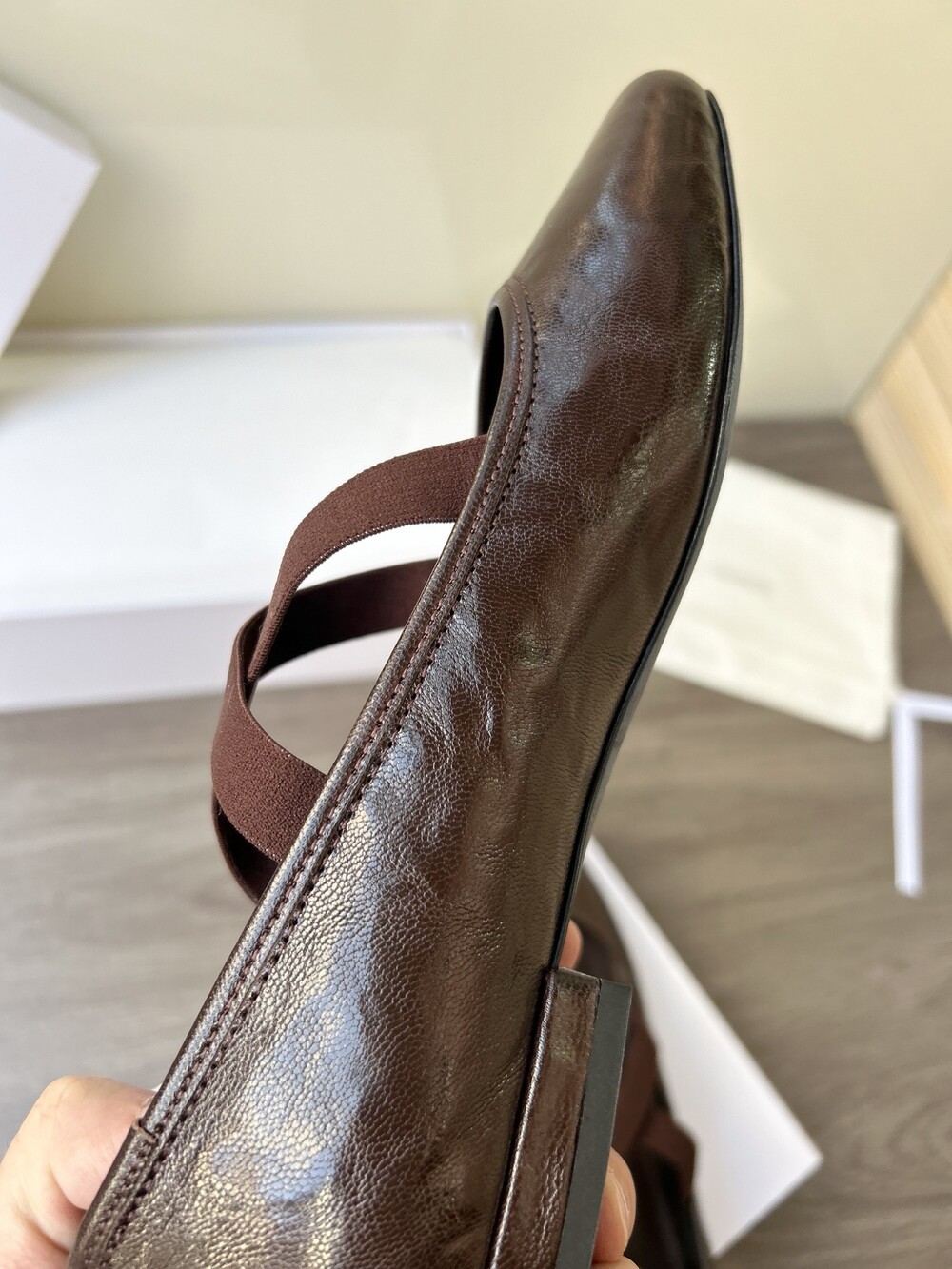 레더 크로스 스트랩 발레리나 플랫