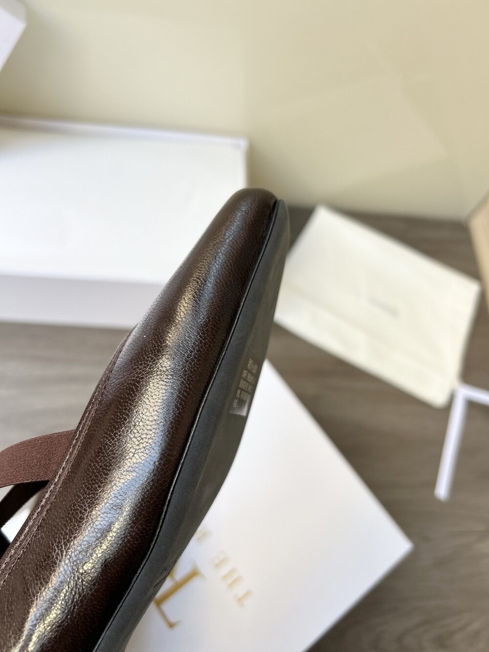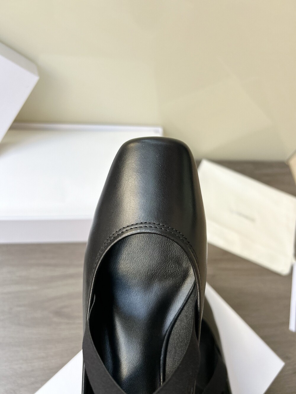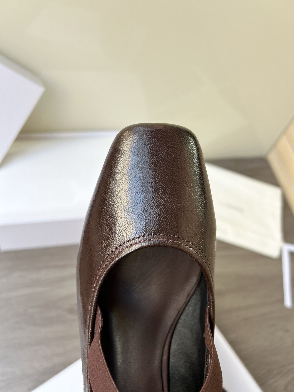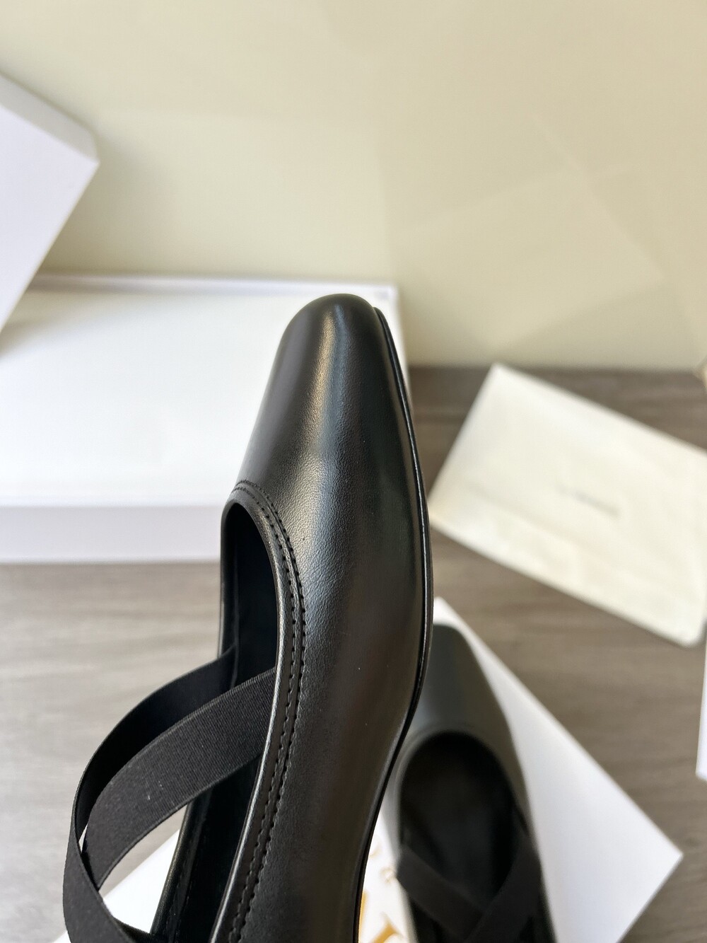 레더 크로스 스트랩 발레리나 플랫