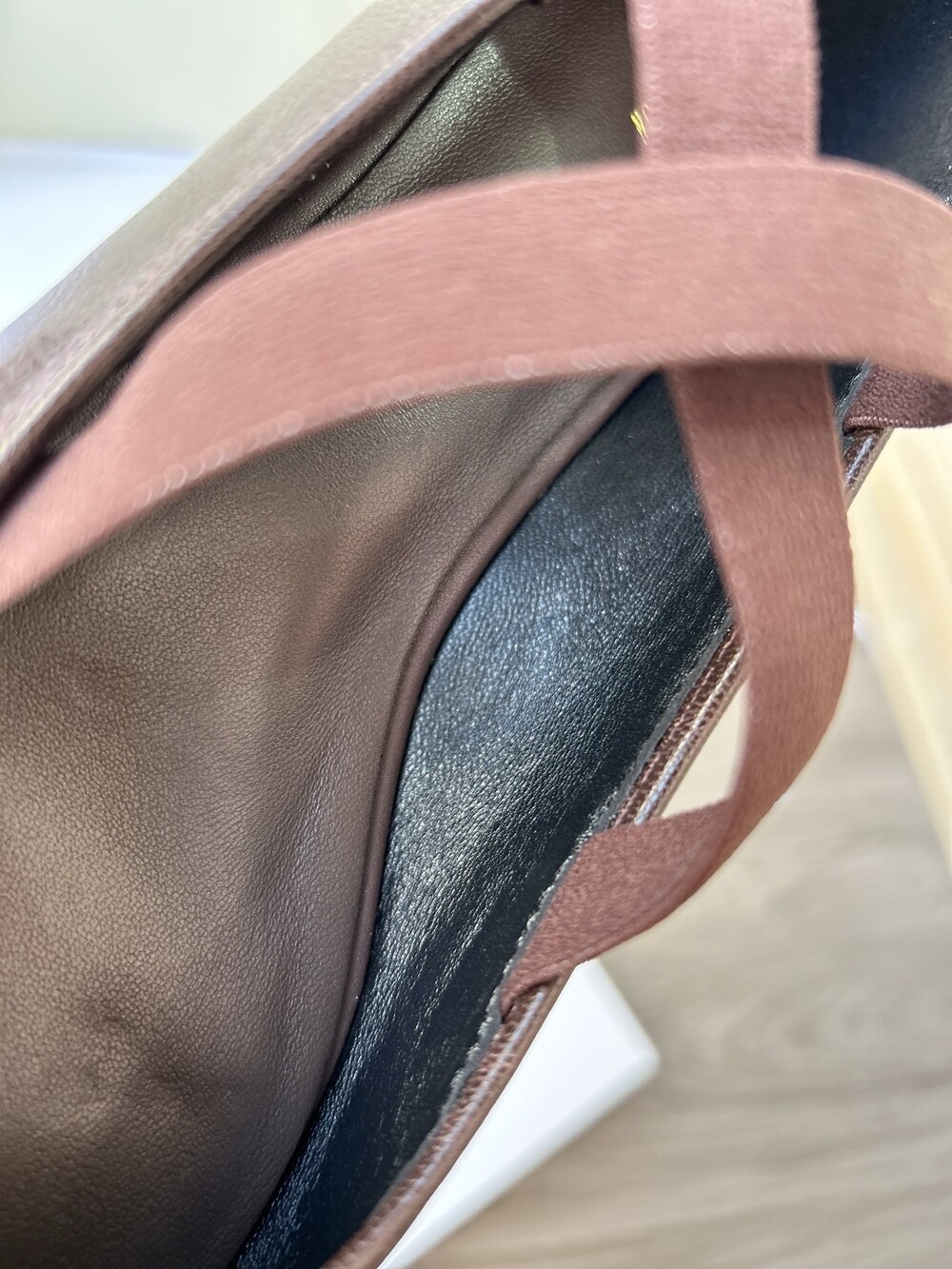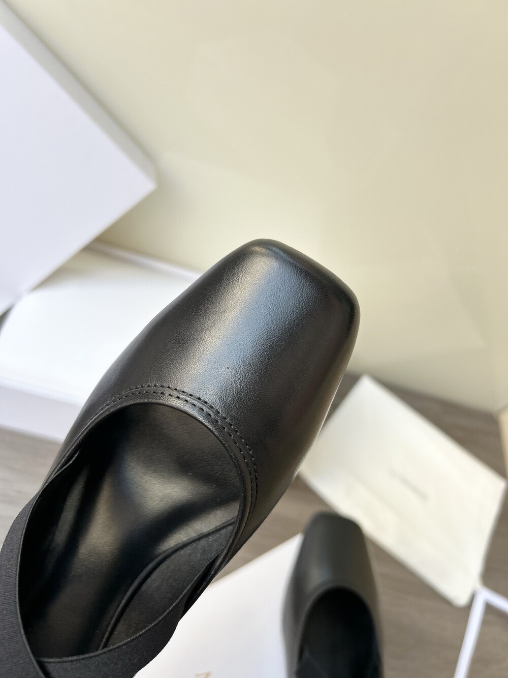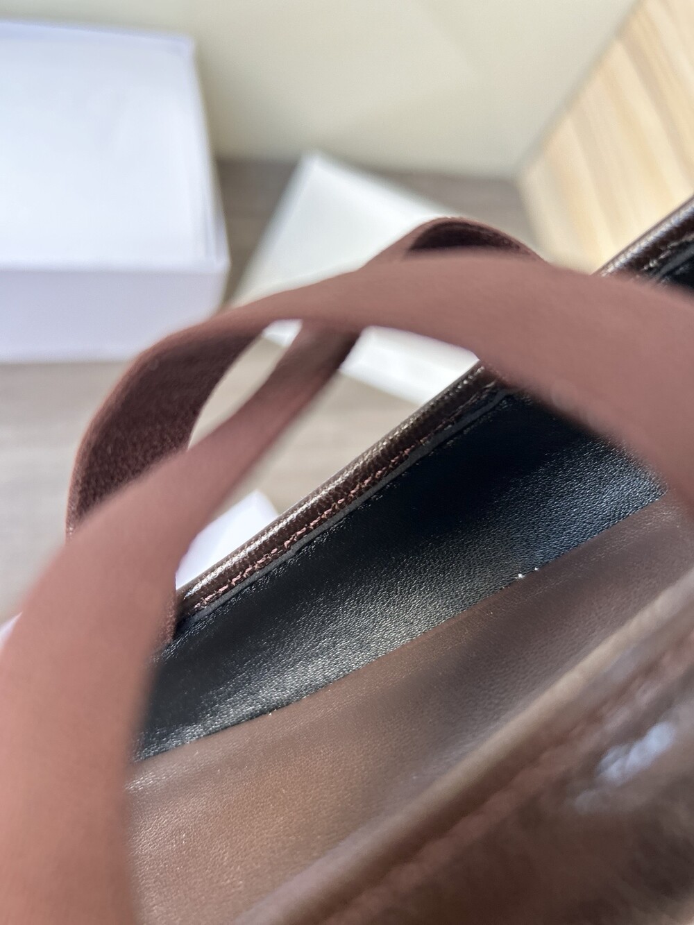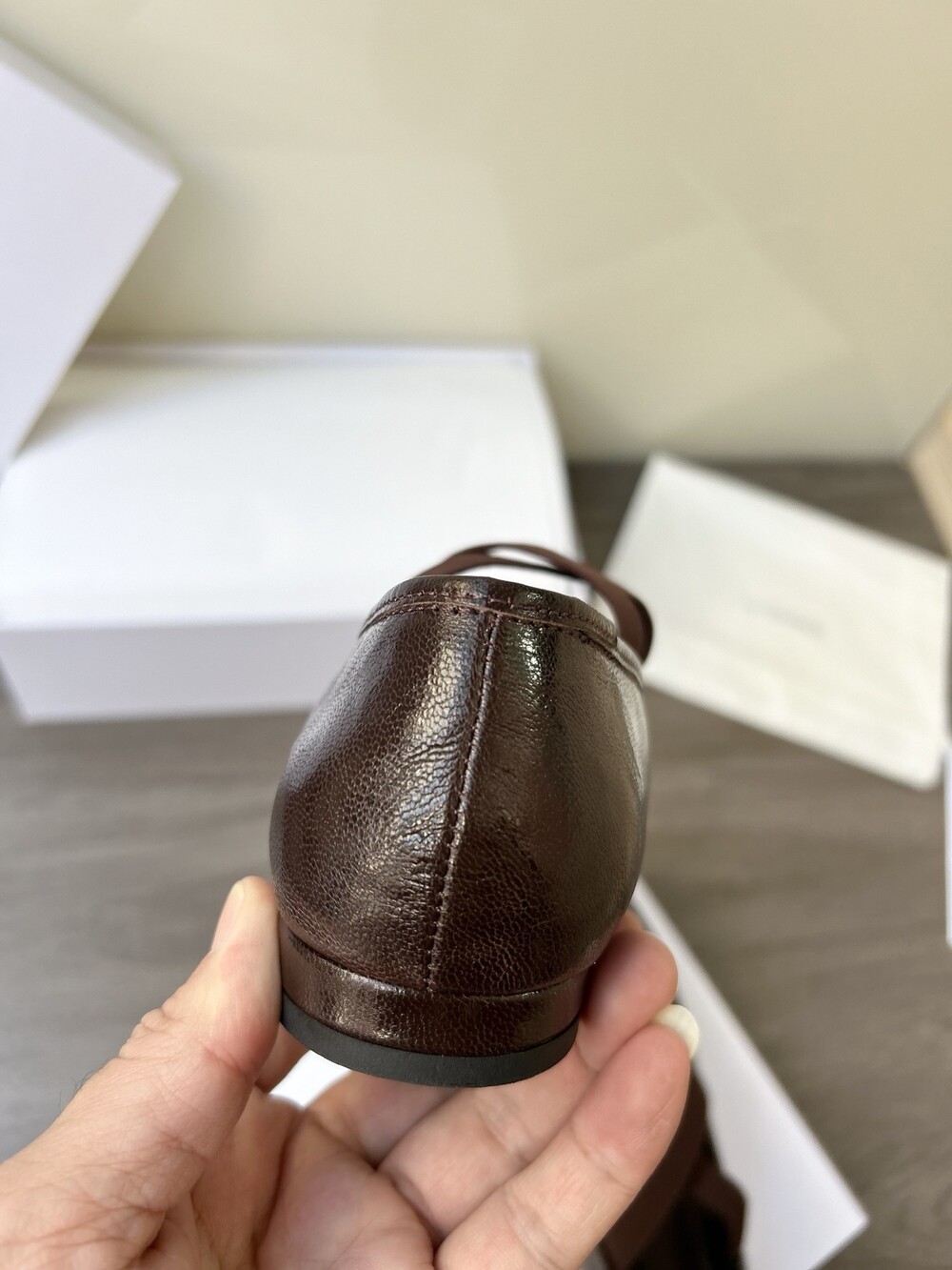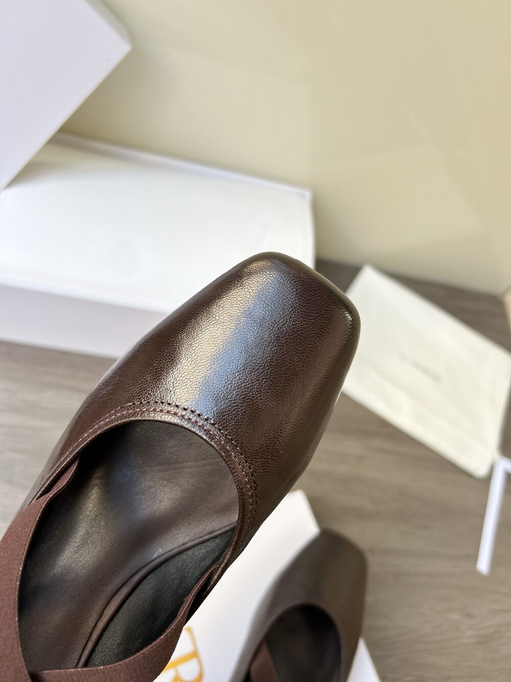 레더 크로스 스트랩 발레리나 플랫