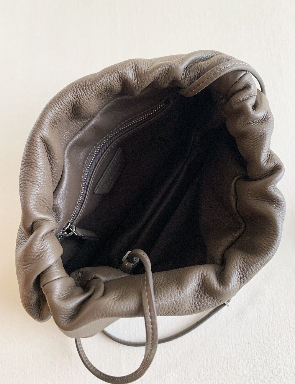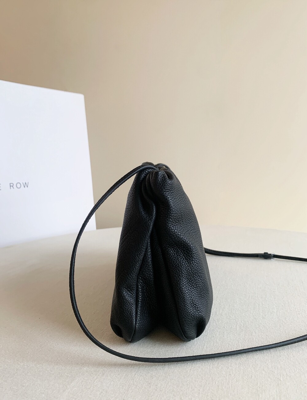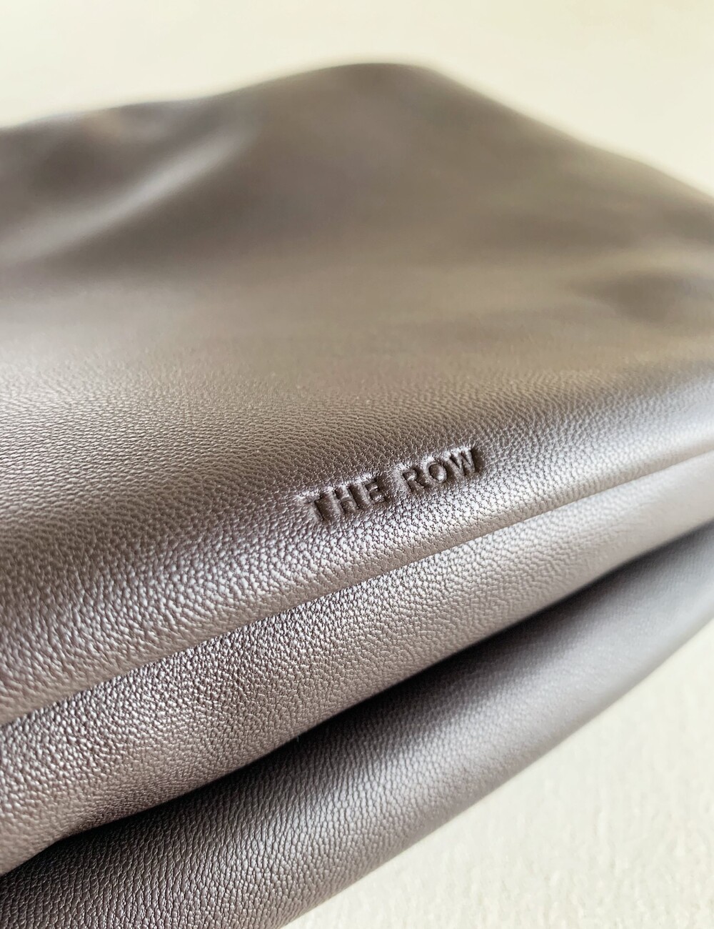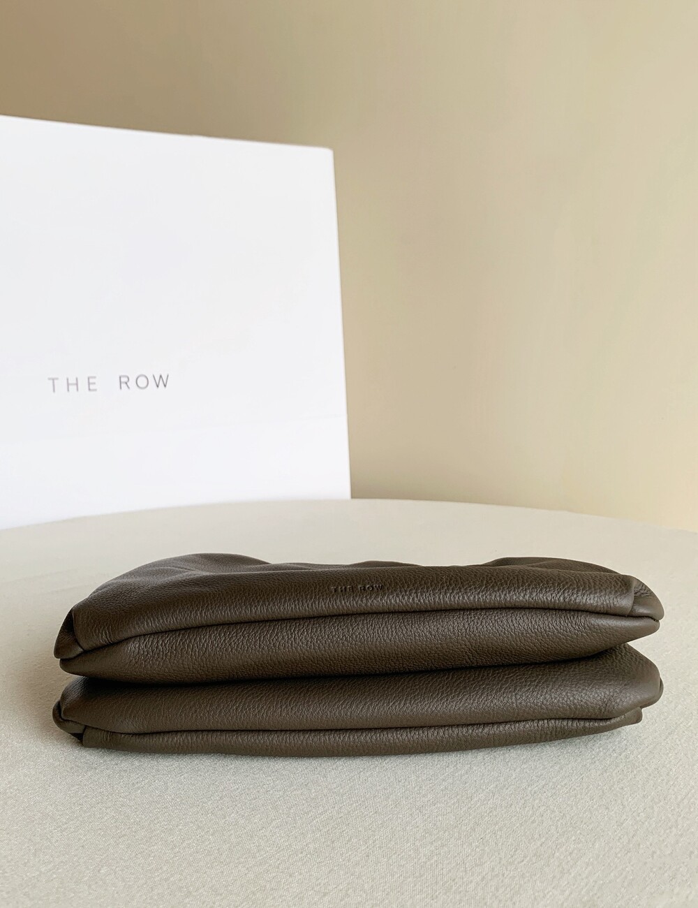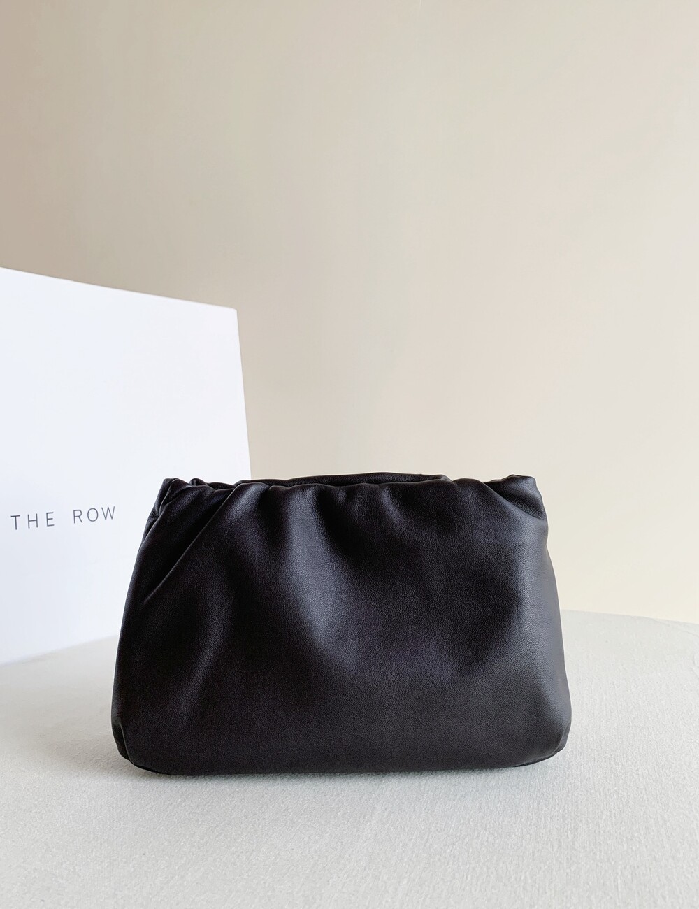 감춰진 조절식 숄더 스트랩과 힌지 프레임 클로저를 갖춘 세련되게 그레인 마감된 송아지 가죽 소재의 주름 마감 클러치. 버터처럼 부드러운 감촉과 은은한 광택이 특징인 이 가죽은 유연한 질감과 세련된 마감을 제공합니다.
