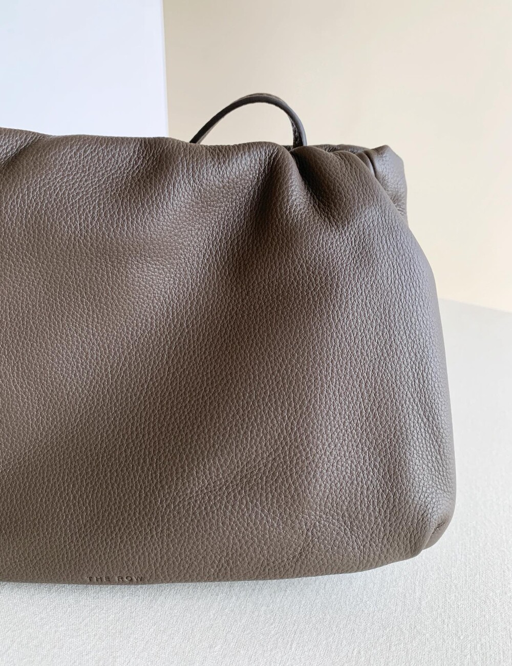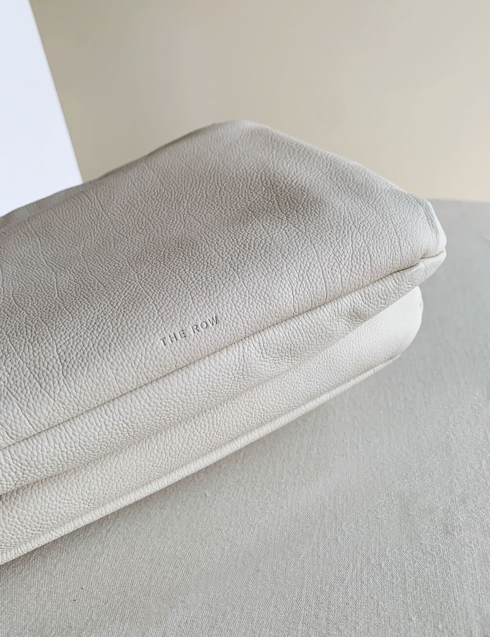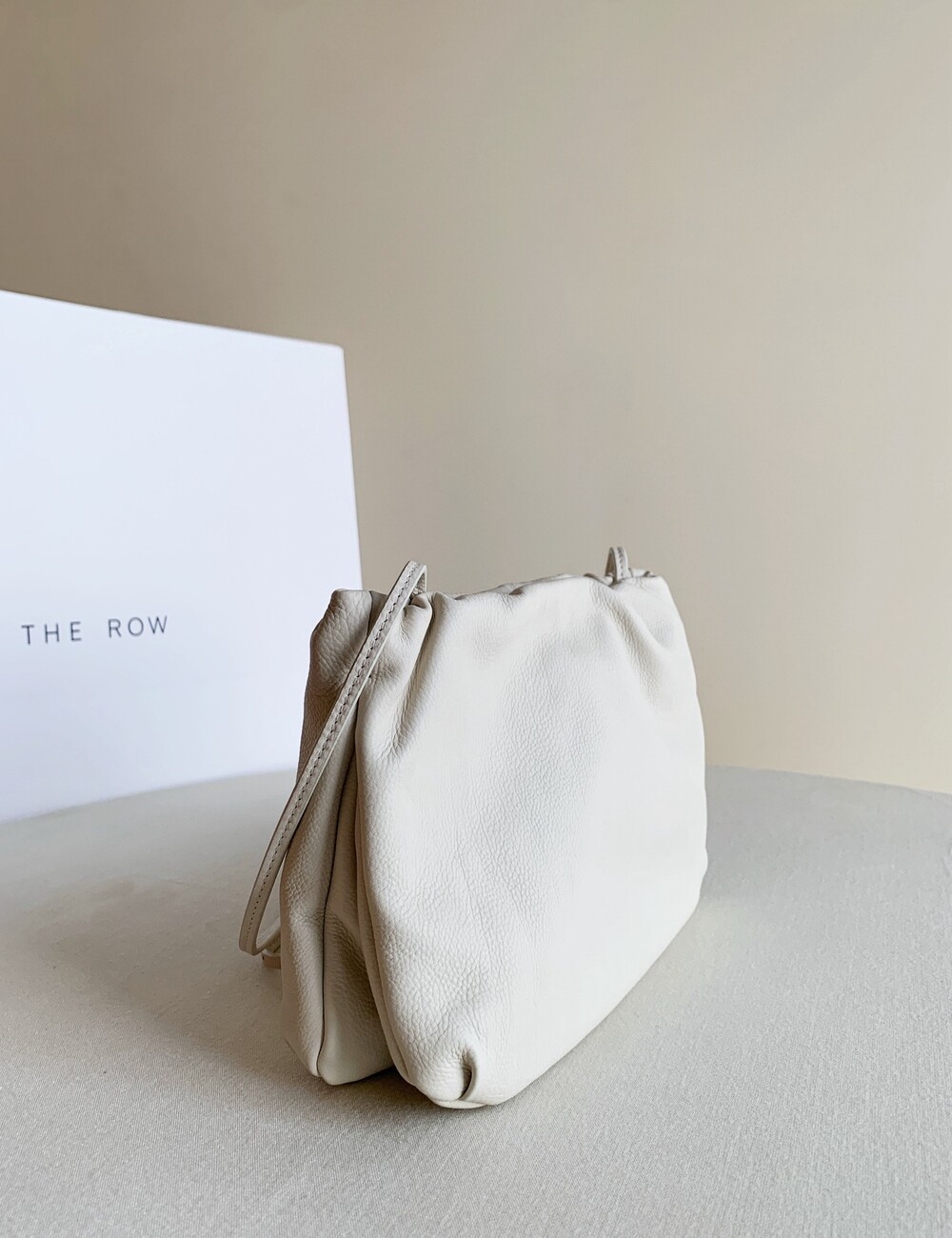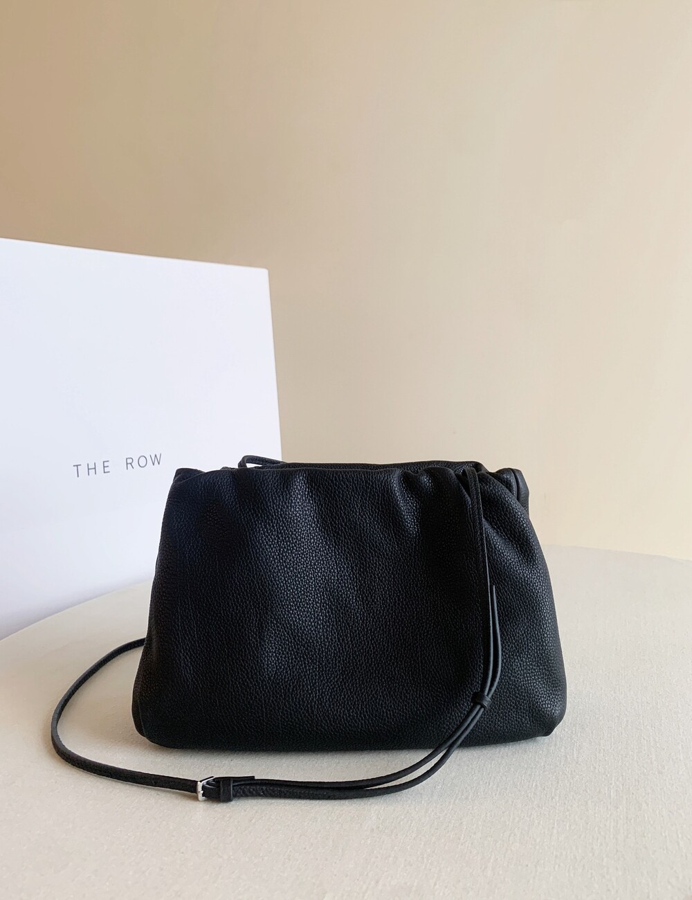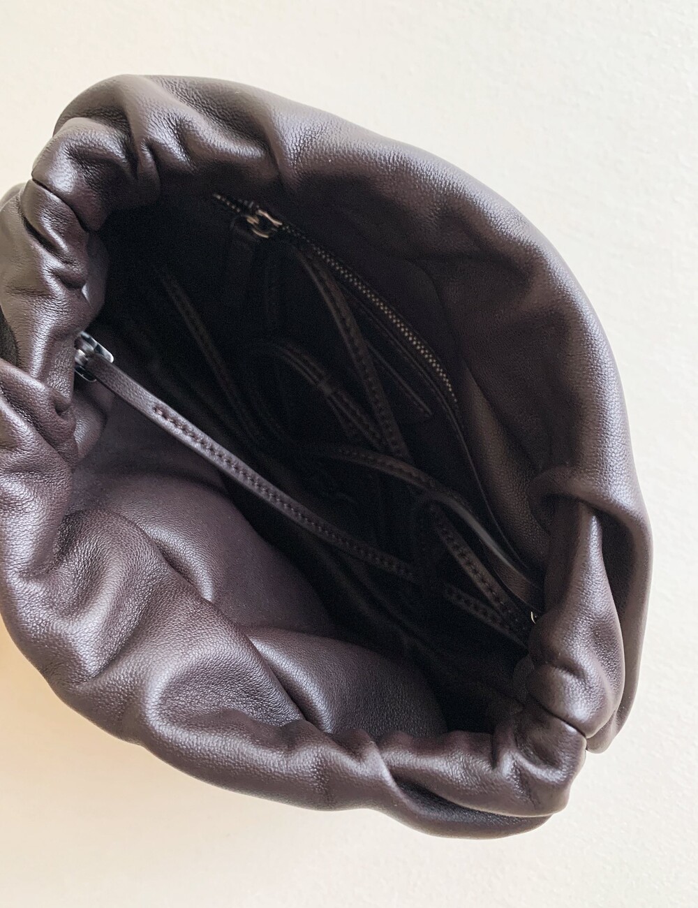 감춰진 조절식 숄더 스트랩과 힌지 프레임 클로저를 갖춘 세련되게 그레인 마감된 송아지 가죽 소재의 주름 마감 클러치. 버터처럼 부드러운 감촉과 은은한 광택이 특징인 이 가죽은 유연한 질감과 세련된 마감을 제공합니다.