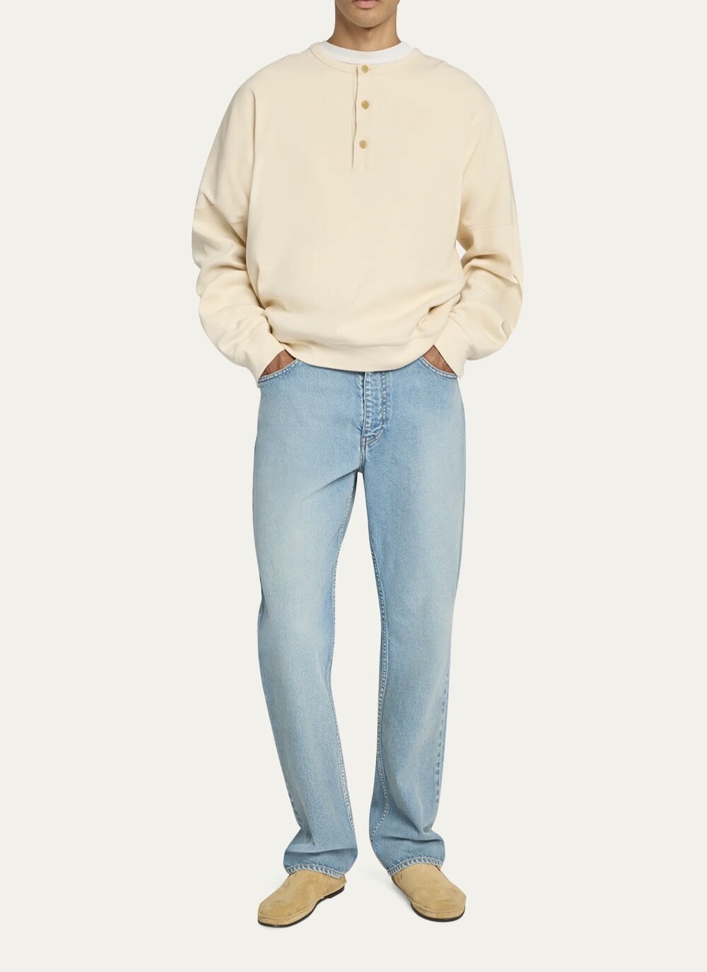 더 로우의 '그레토' 스웨트셔츠는 클래식한 헨리넥 티셔츠에서 영감을 받았습니다. 부드러운 코튼 저지 소재로 이탈리아에서 제작된 이 편안한 핏의 스웨트셔츠는 골지 디테일과 드라마틱한 드롭 숄더가 특징입니다. 버튼 여밈으로 마무리되었습니다.