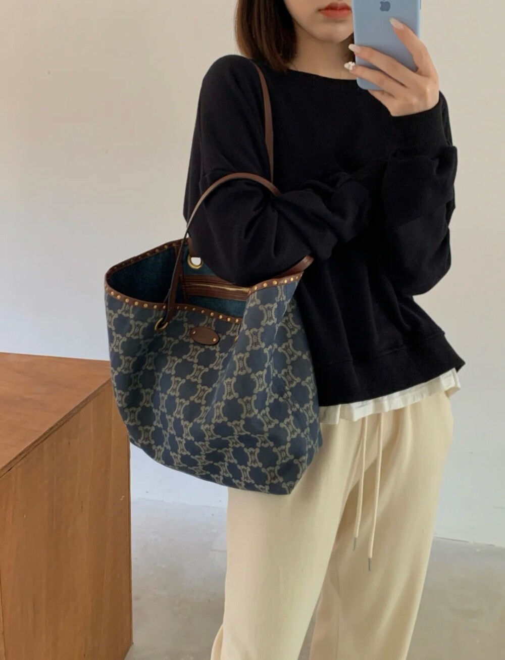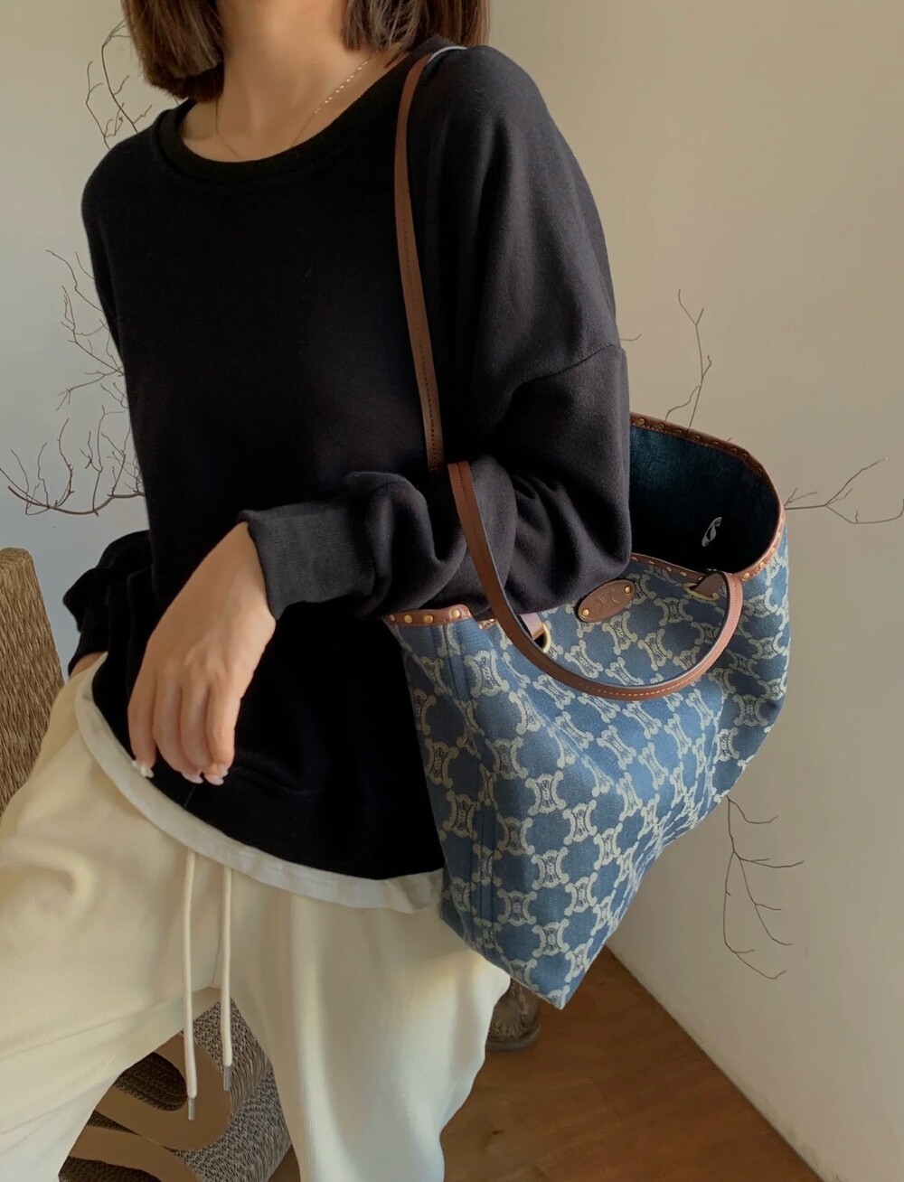 Celine Triomphe denim tote