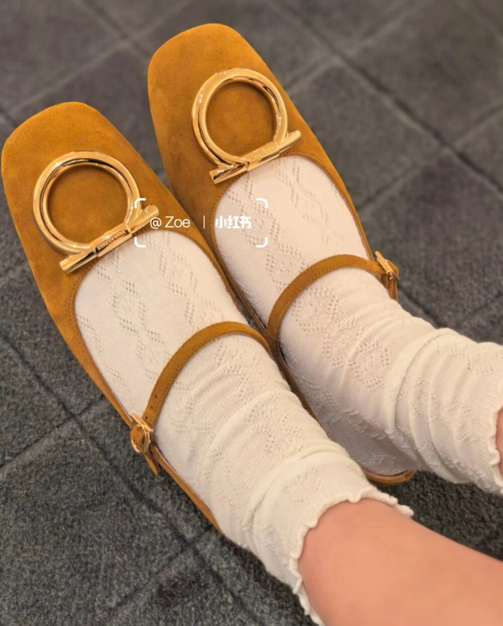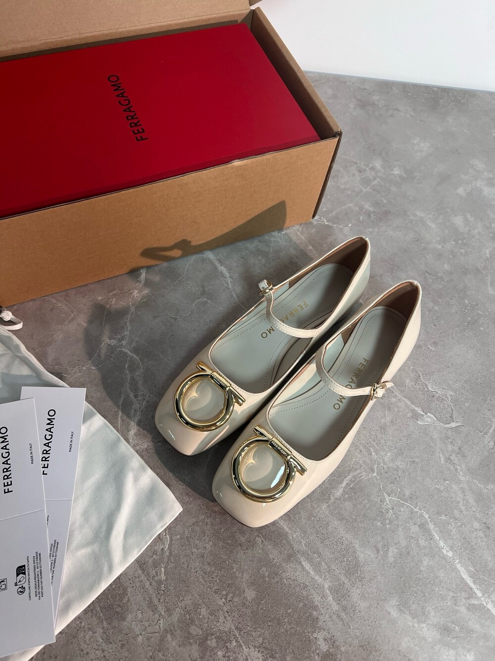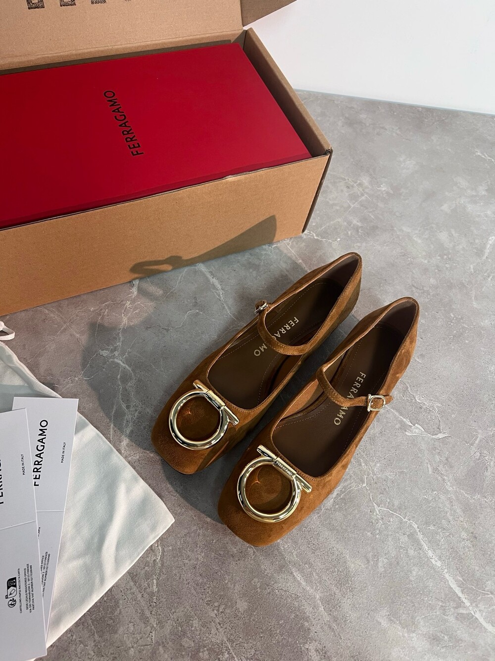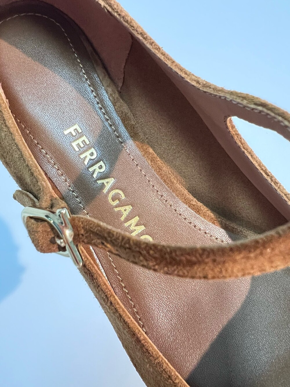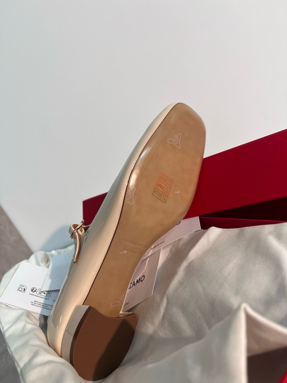 * 앞부분에 골드 톤의 원형 장식이 있어 FERRAGAMO 로고를 은은하게 드러냅니다.