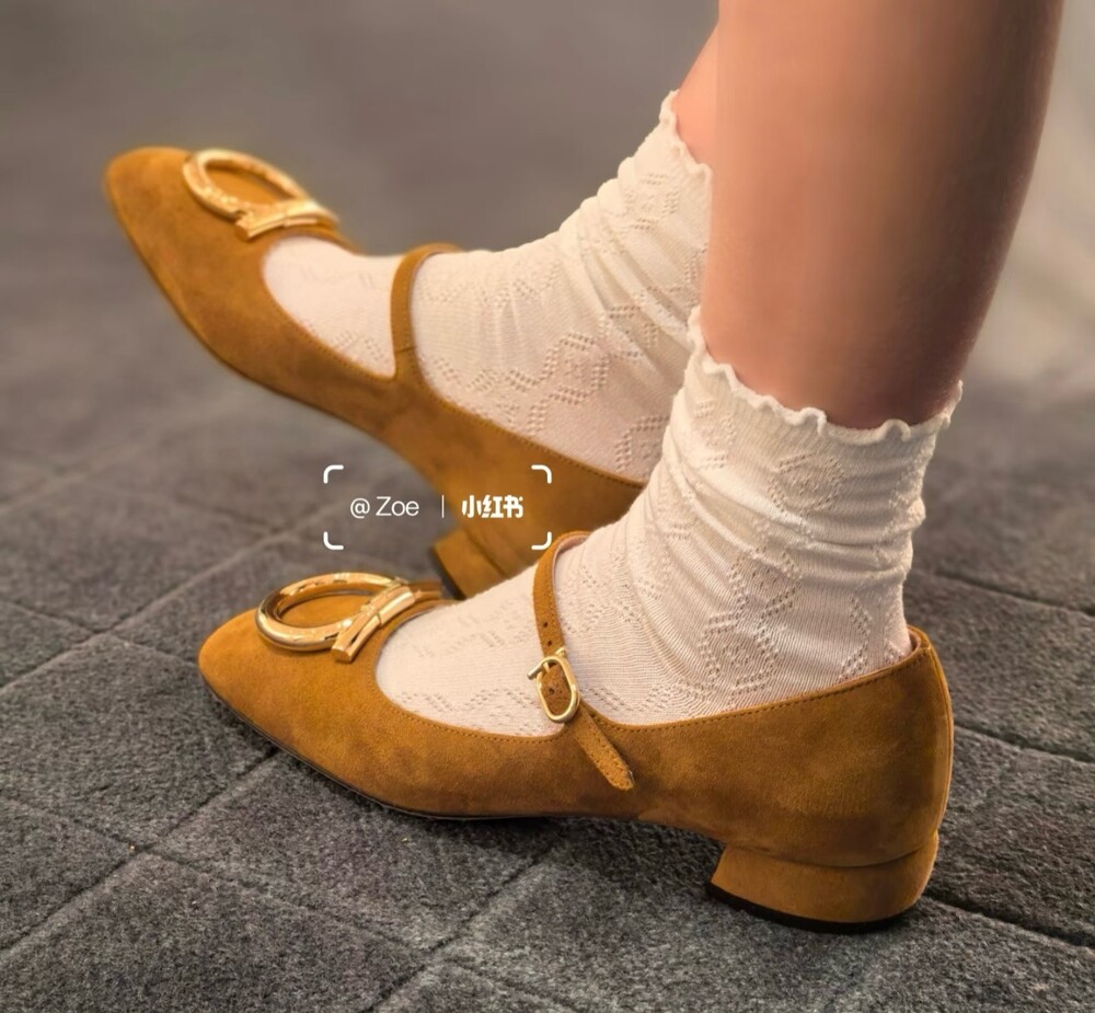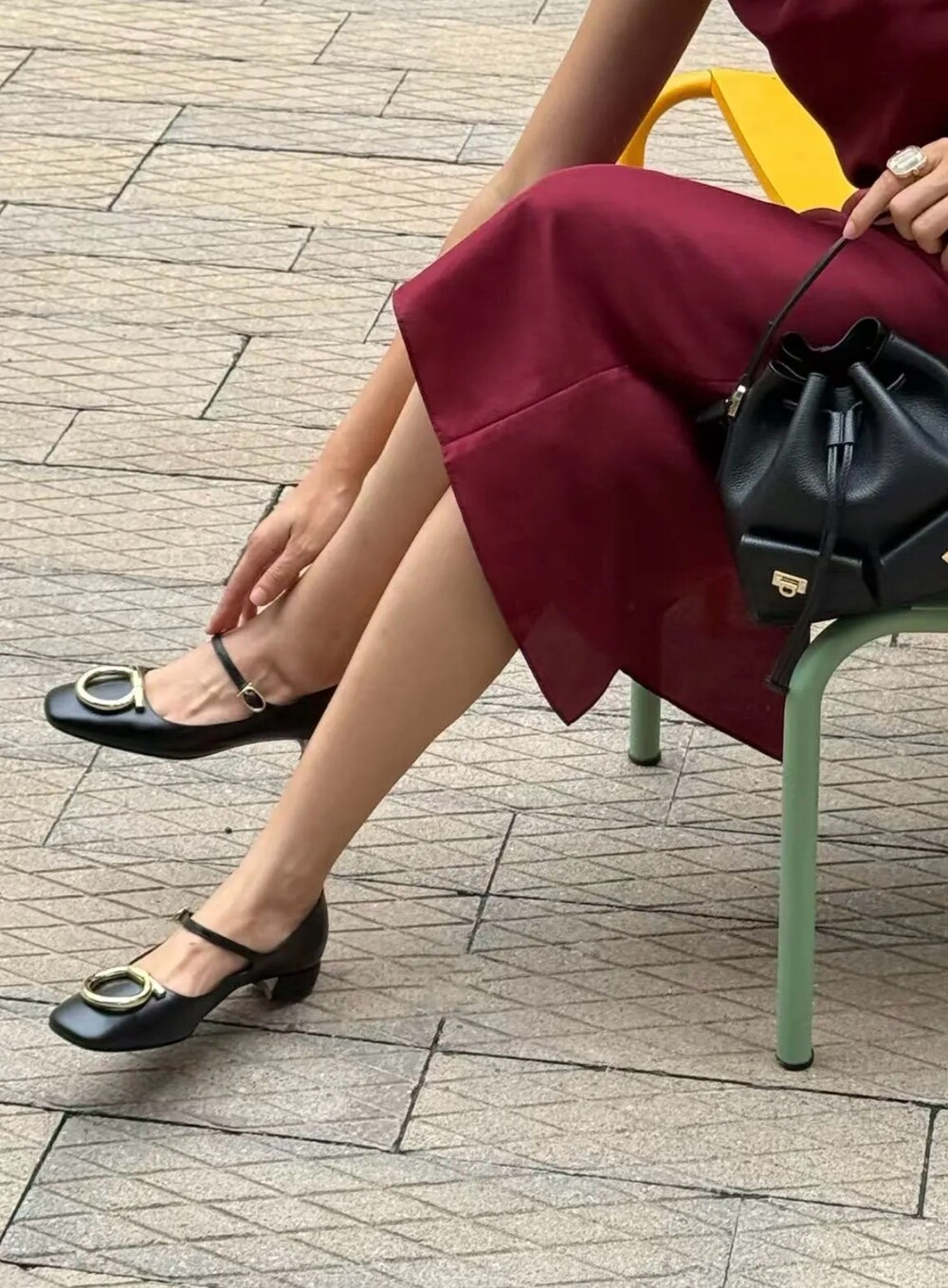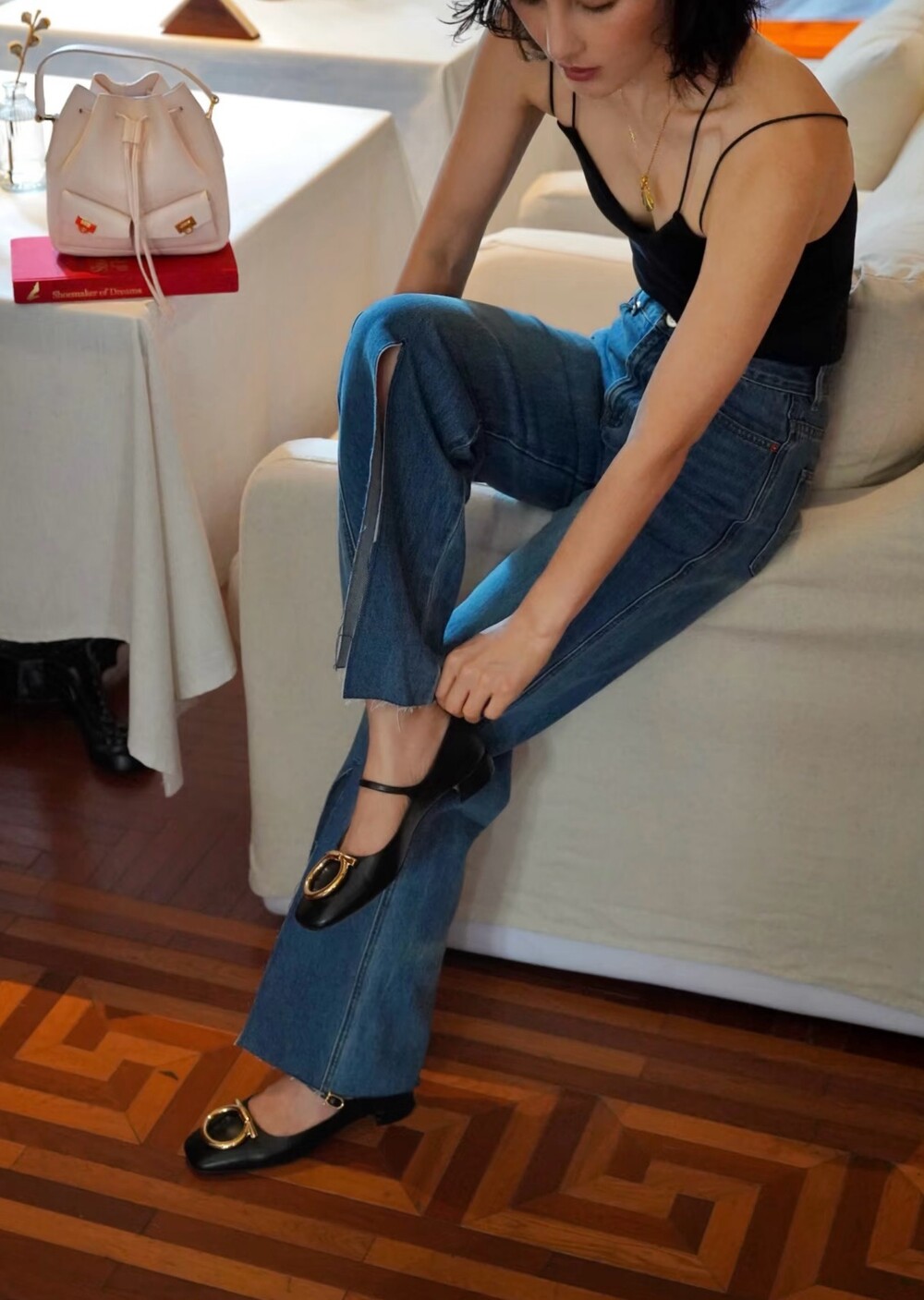 * 클래식한 매리 제인 실루엣에 둥근 버클이 달린 싱글 스트랩이 특징입니다.